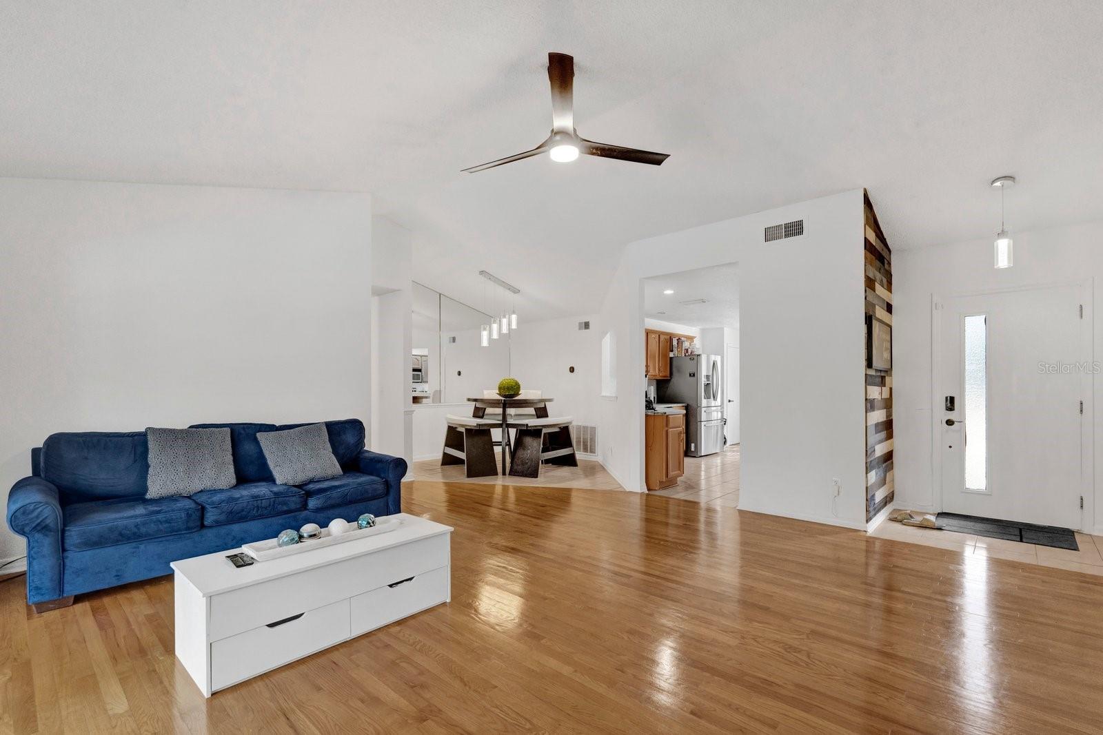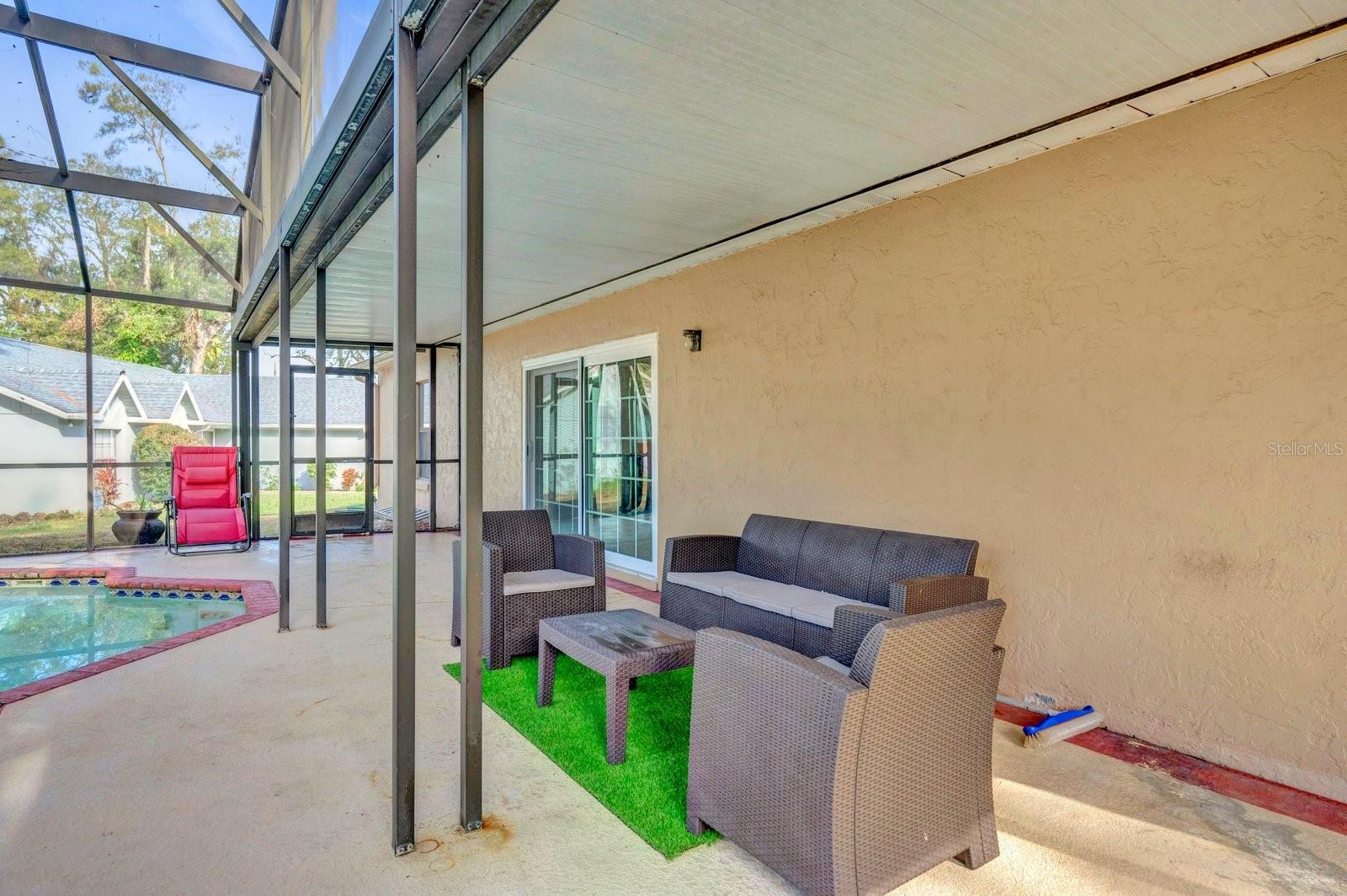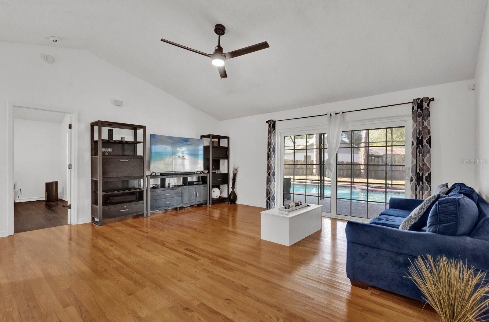 Welcome to this delightful one-story home in the highly sought-after Windsong Estates! Brand New Roof installed in 2025, an open floor plan and a bright, airy living space, this 3-bedroom, 2-bathroom home is the perfect place to create lasting memories. The spacious living room features views of the sparkling swimming pool, offering a relaxing backdrop for everyday life. The cozy kitchen boasts brown cabinets and a charming breakfast nook, ideal for enjoying your morning coffee. Laminate flooring flows seamlessly throughout the home, adding both style and practicality. The bathrooms are thoughtfully designed, including a bathtub with a built-in shower for your convenience. With a 2-car garage and ceiling fans to keep things cool, this home combines comfort and functionality. Located in a friendly neighborhood, you'll have quick access to schools, shopping, parks, and all the amenities you need. This is more than just a house; it's the place where your story begins.