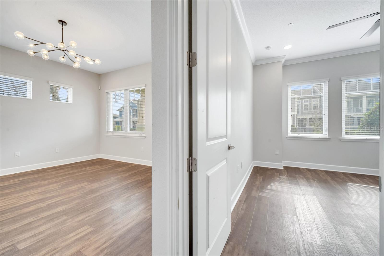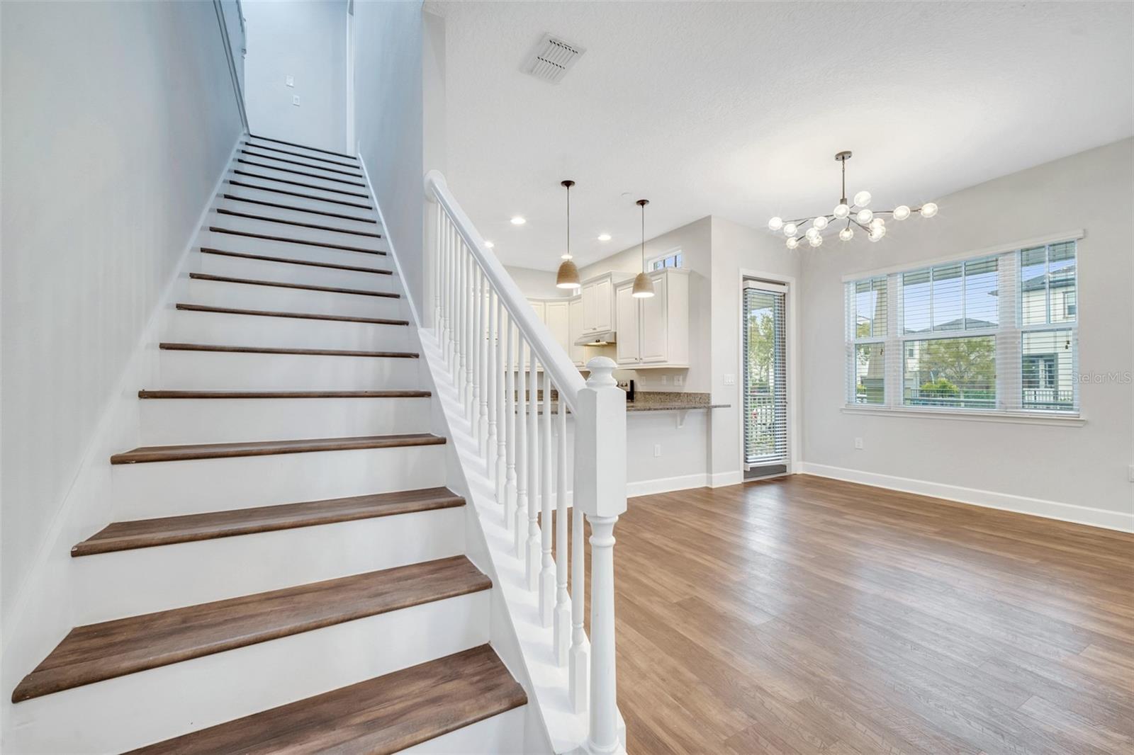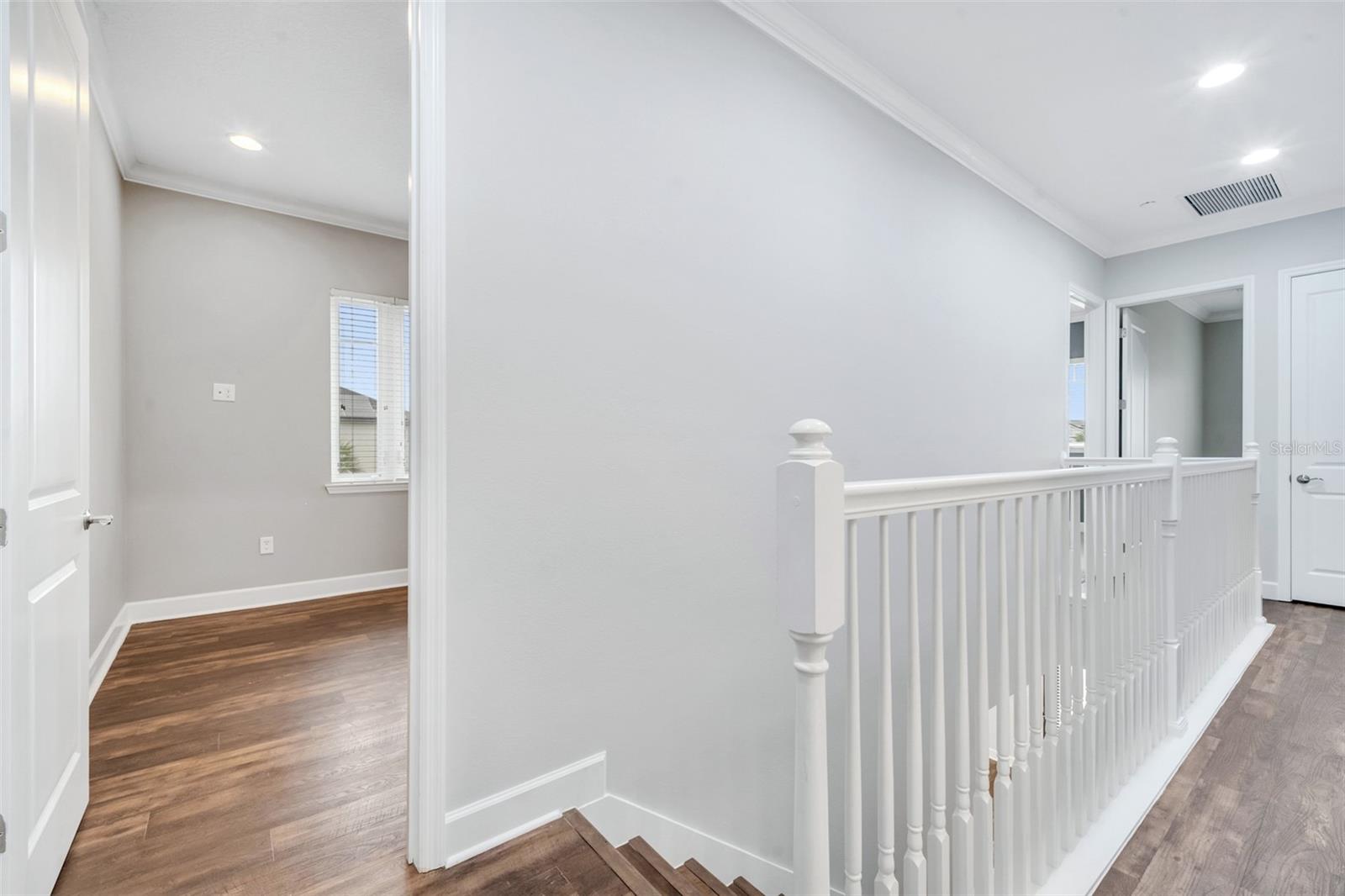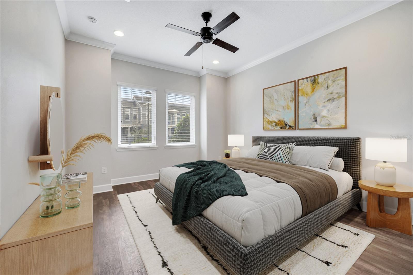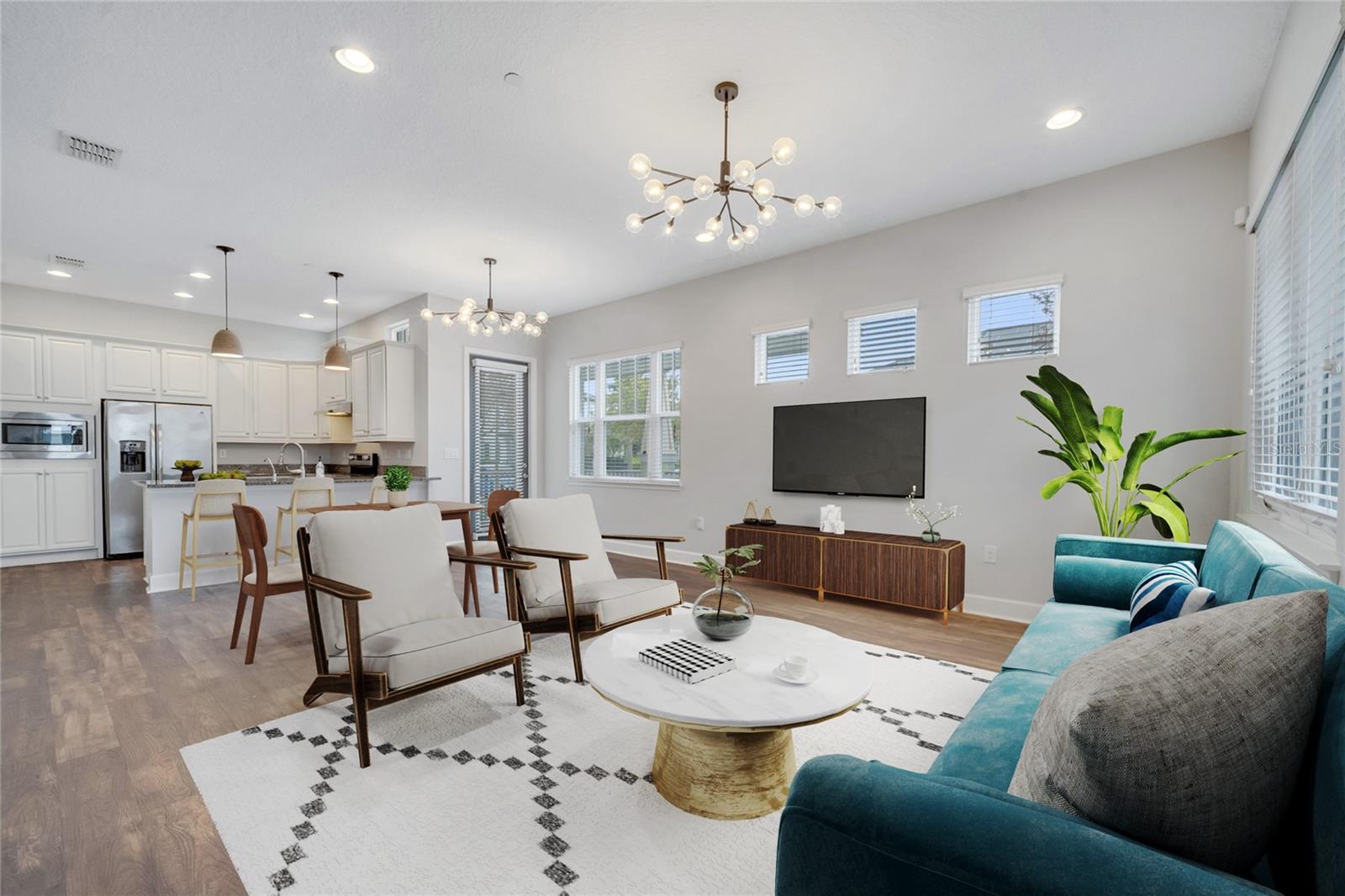 Fully Upgraded, RARE end-unit 4 Bed, 2.5 Bath townhome with patio and side yard. The first floor features a large master suite with a separate walk-in shower, soaking tub, and walk-in closet with built-ins. The main living area offers every upgrade you could want including an open concept kitchen with large island that opens to the dining area and a spacious great room. Design upgrades include: new wood plank floors, modern cabinets, designer lighting, new paint throughout, custom built-in closets, whole house water softener, and more. Just off the great room, you can step outside to enjoy Florida weather with friends and family on your private patio/courtyard with plenty of space for a grill and outdoor living. Past the kitchen is the half bathroom and access to the 2-car garage. Upstairs is a spacious, Converted 4th bedroom, with plenty of room for an additional entertainment area, home office, or a large loft. Down the hall, is another full bathroom, two large guest bedrooms and laundry. This townhome, with an oversized lot, is in the perfect location close to a nearby lake and parks. Laureate Park is Lake Nona's premier community which includes FREE 1GB fiber internet, pools, fitness center, many beautiful parks, lakes, 40% green space and A-rated schools. Nearby are Lake Nona's Medical City, Town Center, USTA, KPMG, and close proximity to expressways and the international airport. This home is a must see!