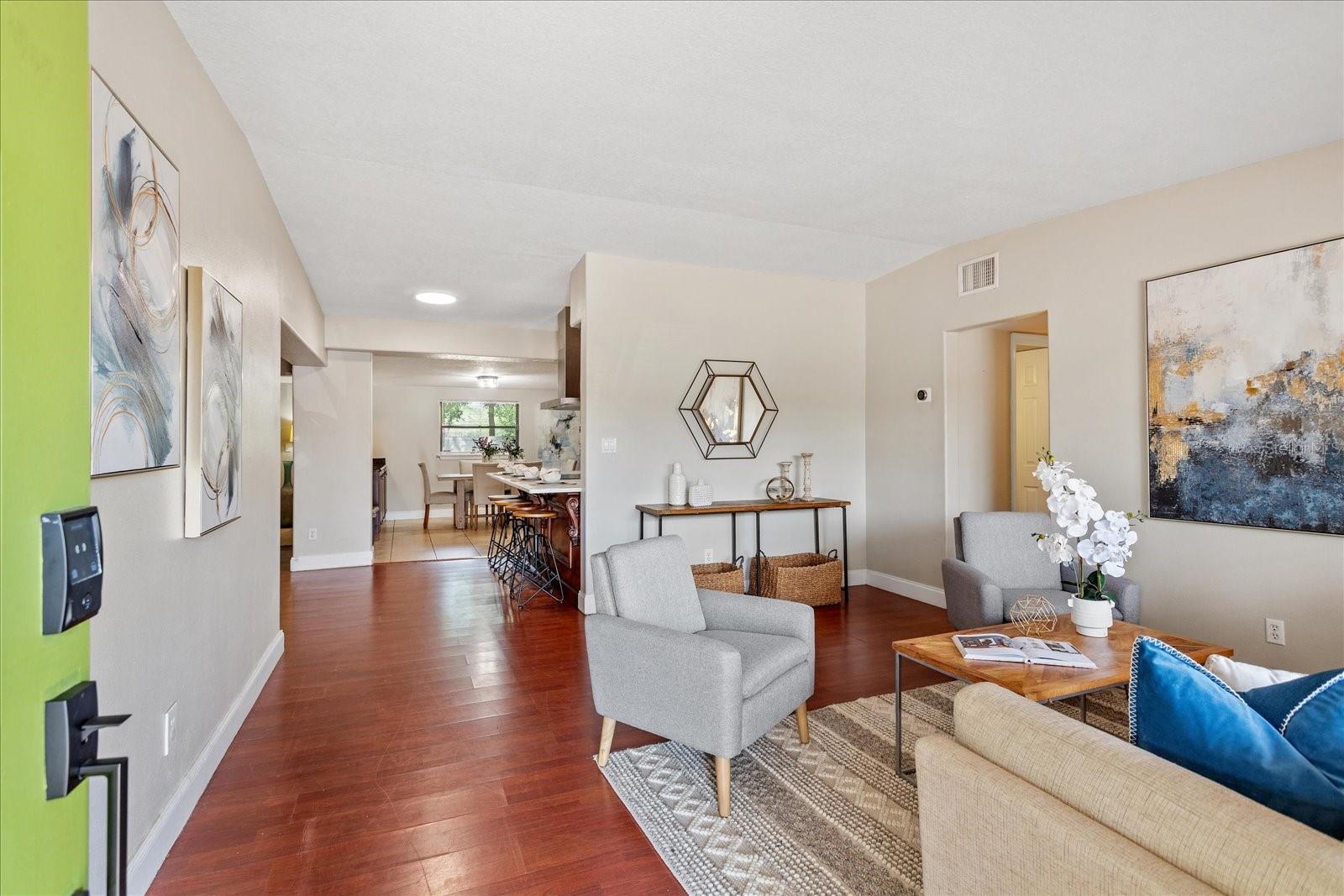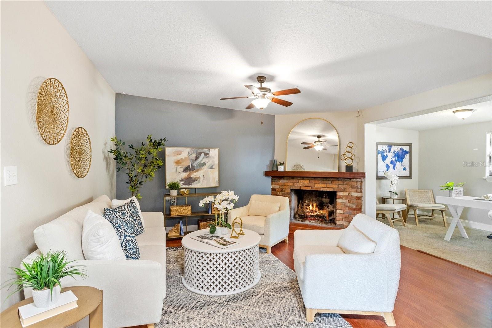 Charming & Move-In Ready College Park Home! Welcome to 3425 N Westmoreland Dr., a beautifully updated 3-bedroom, 2-bathroom home in the heart of sought-after College Park! This home features a terrific open floor plan with flexible living spaces, including an office/bonus room to suit your needs. Recent updates include an updated electrical system, plumbing (2018), a gas water heater, and newer laminate flooring in the living areas. A wood-burning fireplace adds warmth and charm. The spacious primary bedroom boasts a renovated en-suite bathroom with custom tile work in the shower. The chef’s kitchen is a standout, featuring quartz countertops, a large island, a sleek stainless steel Euro vent hood, and top-of-the-line stainless steel appliances—perfect for cooking and entertaining. Just off the kitchen, enjoy the expansive screened-in patio, which opens to a large fenced backyard—ideal for outdoor gatherings, pets, or a future garden oasis. There’s even plenty of space to add a pool! A convenient outdoor shed provides extra storage for lawn equipment, toys, and more. Don’t miss this opportunity to own a turnkey home close to major highways, shopping, and restaurants.