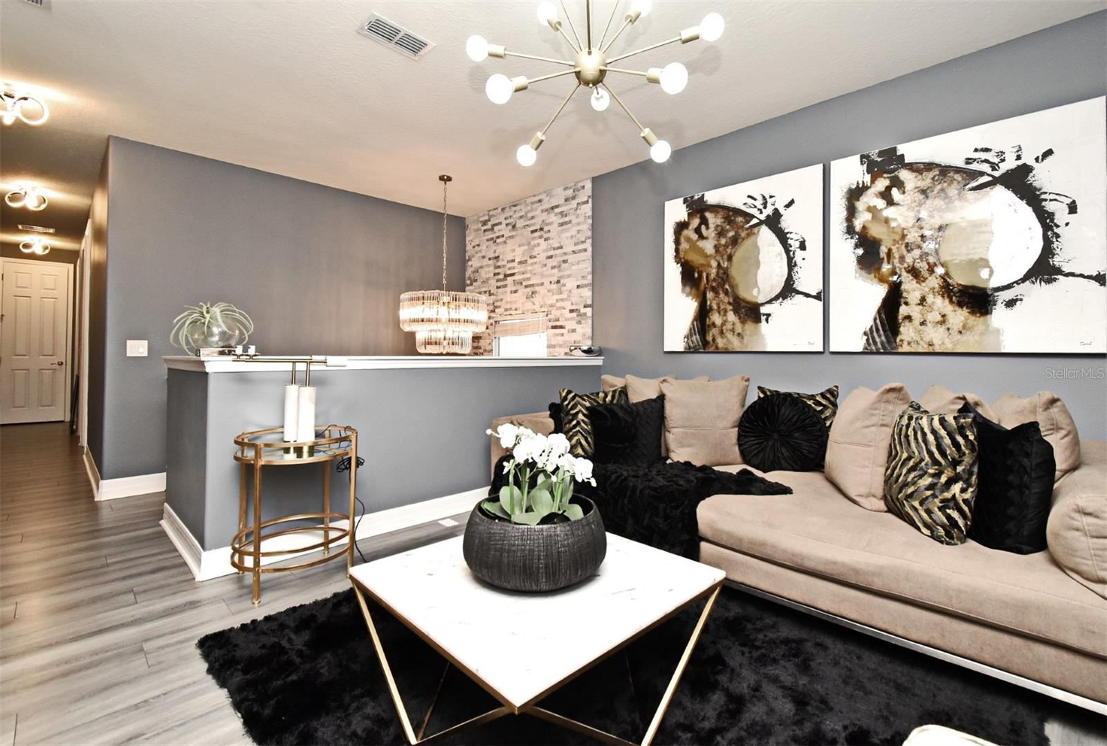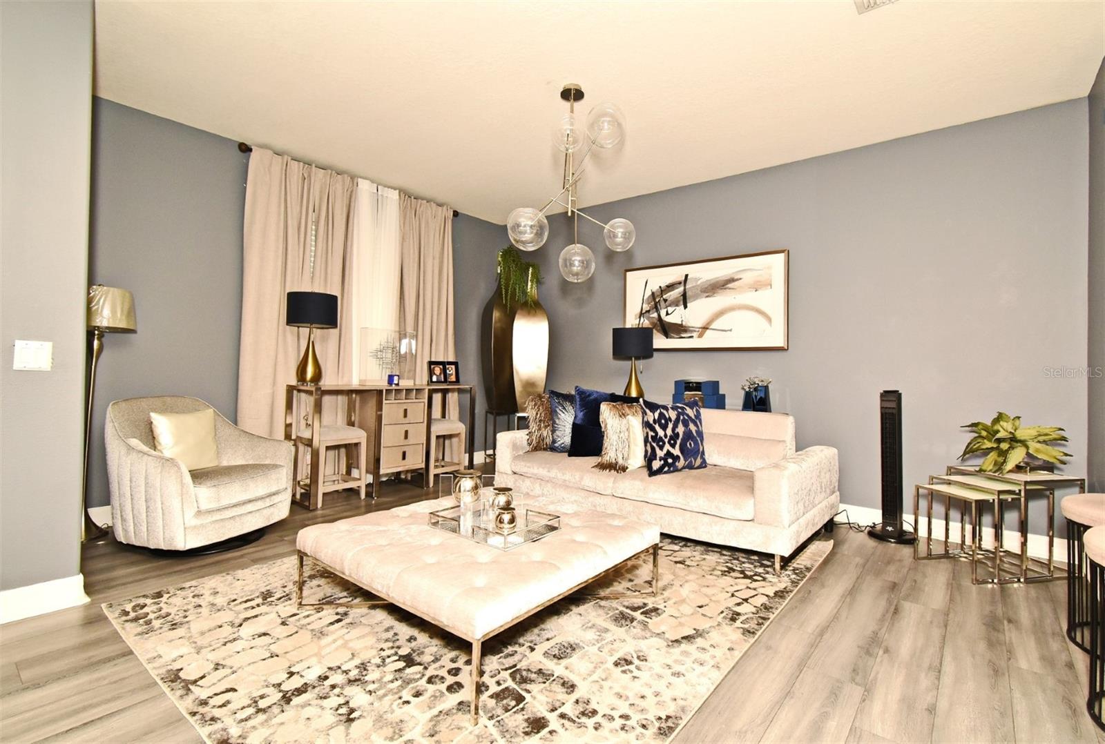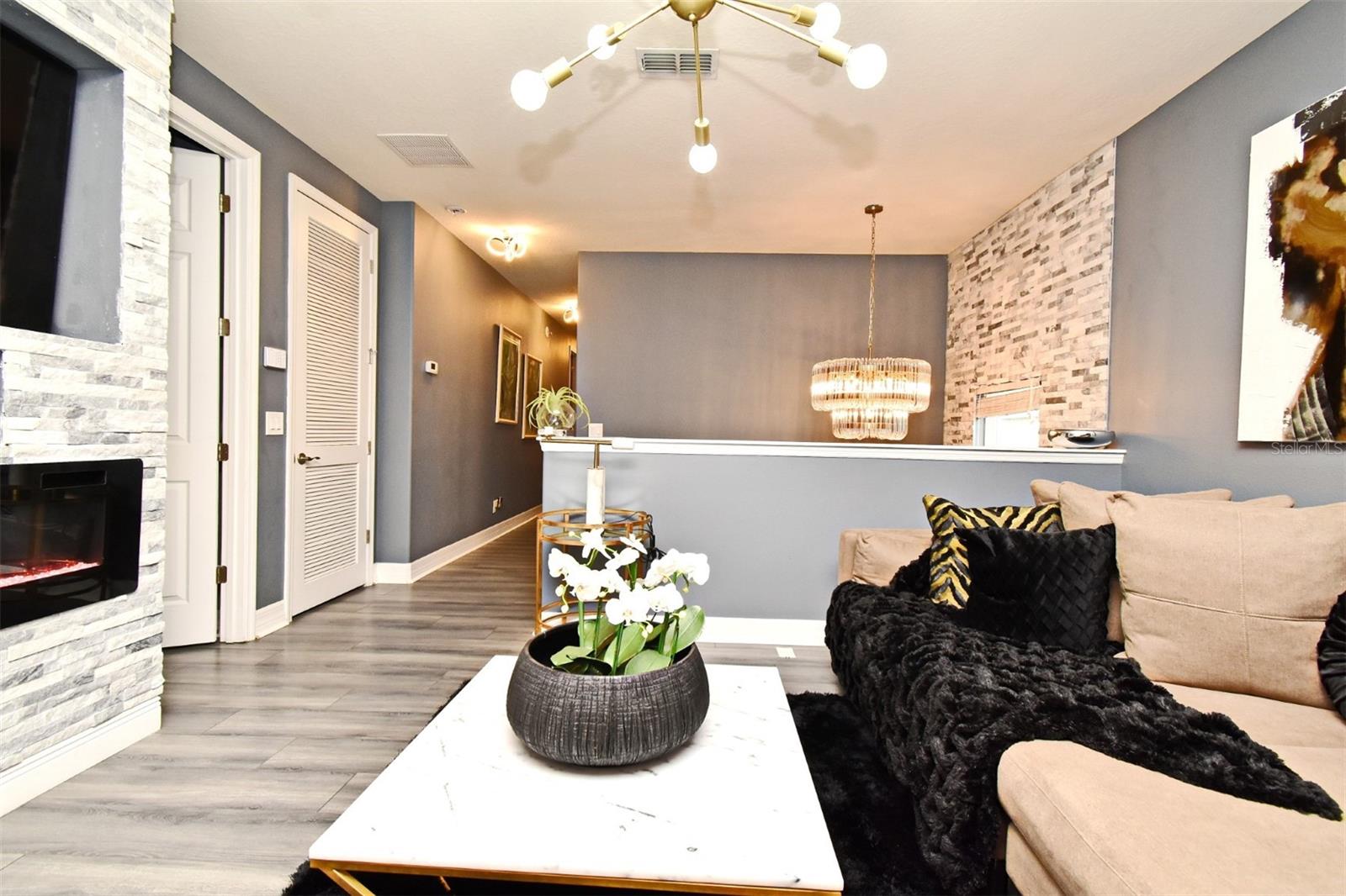 A beautifully maintained 4-bedroom, 2-bathroom home located in the sought-after gated community of Millennia Park in Orlando. Built in 2014 and situated on a corner lot, this 2,380 sq ft residence features an open floor plan with a spacious living and dining area, a modern kitchen with quartz countertops and stainless steel appliances, and generous bedrooms designed for comfort! Including a newly built custom closet. Thoughtful upgrades include two elegant stone accent walls, one of which highlights the fireplace, adding warmth and character to the living space. Step outside to enjoy a private screened lanai, perfect for relaxing or entertaining. Residents enjoy access to resort-style amenities including a pool, clubhouse, playgrounds, and walking trails. Just minutes from the Mall at Millenia, Universal Studios, I-4, and endless shopping and dining options, this home blends stylish living with unbeatable convenience in a secure and vibrant community.