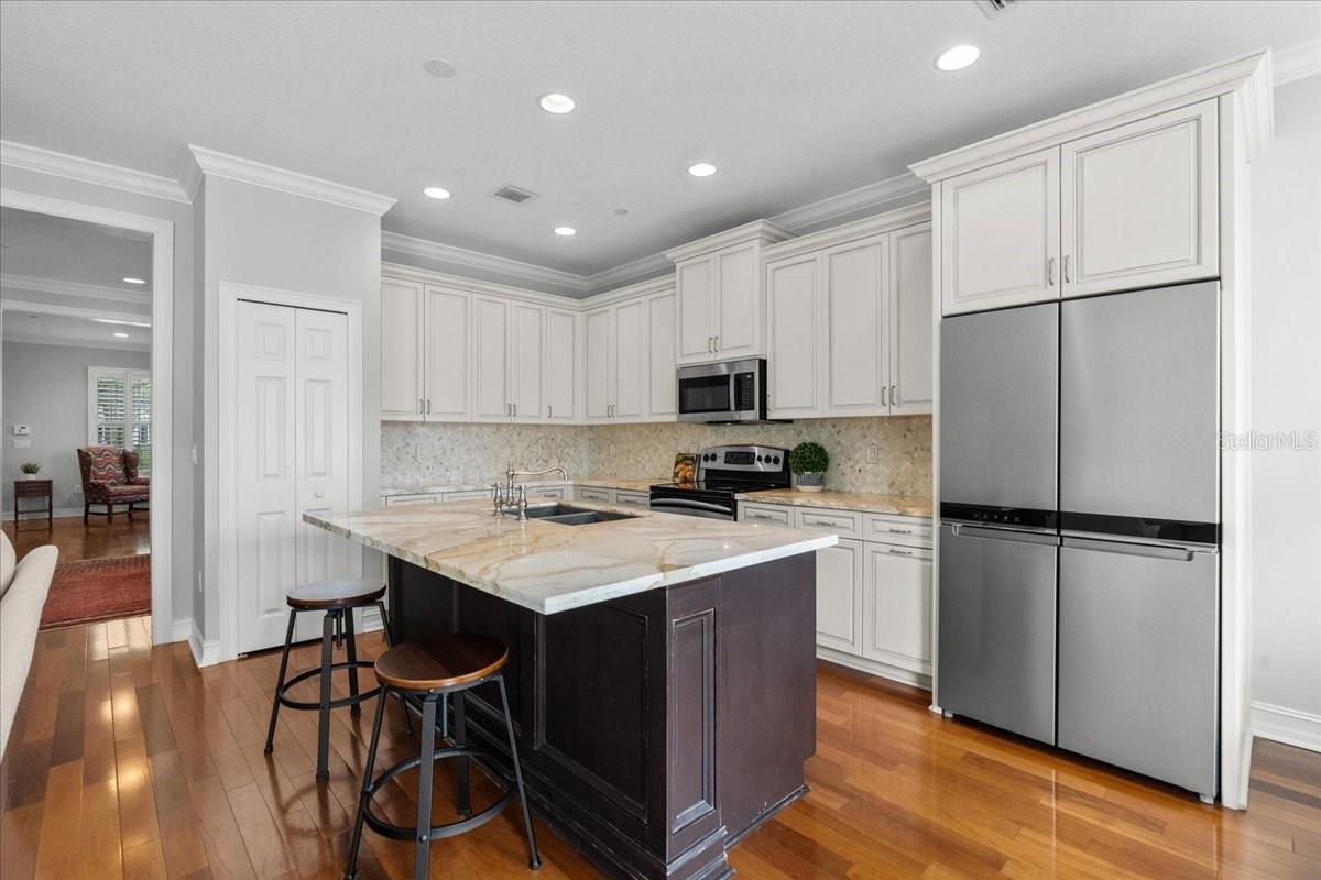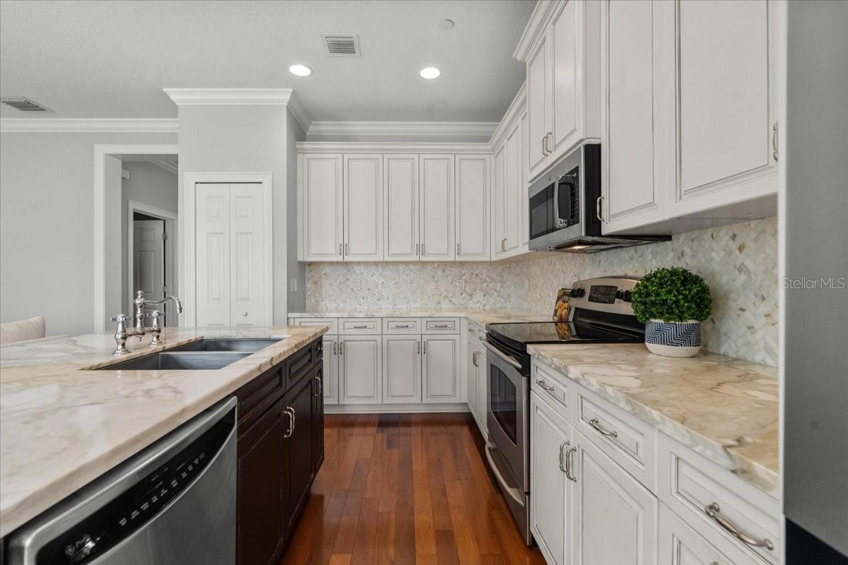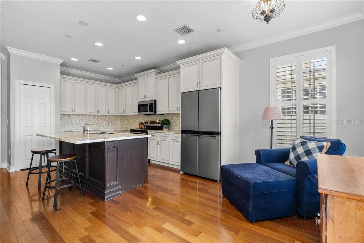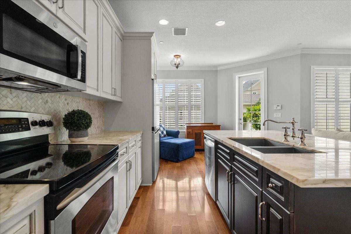Under contract-accepting backup offers. Highly sought after END UNIT features 3 bedrooms and 2.5 bathrooms, built by Issa Homes, and offers beautiful views of Parkland Square Park—a great spot for throwing the ball, pet lovers and anyone who enjoys outdoor space. The park is beautifully landscaped with fragrant jasmine pergola and shady oak trees, providing a peaceful setting. Located on a quiet, one-way street with sidewalks, this home is flooded with natural light, thanks to the windows on three sides. Inside, you’ll find upgrades-plantation shutters throughout, adding to the bright, airy feel. The main floor features wood floors and stairs, plus a real coat closet and a stylish grass cloth powder bath and designer RH mirror. The kitchen is a chef’s dream, featuring double-thick marble countertops, a gorgeous marble backsplash, and elegant 42-inch vanilla cabinets. High-end stainless steel appliances, including a new microwave, 36-inch French door refrigerator with fingerprint-resistant finishes, and a sleek stainless steel sink, make this space as functional as it is beautiful. All three bedrooms are located upstairs, with the spacious primary bedroom offering lovely park views. The master bath is equipped with dual vanities, spa tub and shower. A large walk-in closet provides plenty of rooms for clothes and storage. Freshly painted walls and upgraded carpet upstairs add a sophisticated look. Washer and dryer are included. Outside, the private and fenced yard is beautifully landscaped with sweet viburnum, holly bushes, and Japanese blueberry ornamental trees. Detached and oversized two-car garage. This home is located in a fantastic Baldwin Park neighborhood with top-rated schools, just minutes from Winter Park Pines Golf Course, downtown Baldwin Park, and both middle and elementary schools. It’s also conveniently close to Winter Park, Downtown Orlando, and I-4, with plenty of street parking available. The HOA is replacing the roof in 2025, and Baldwin Park is installing high-speed fiber internet for the entire community, included in the HOA fees. Enjoy walking distance to parks, pools, trails, shops, Tai Kwan Do, Gymnastics, award-winning restaurants, and top-rated schools. The community has everything you need, with 3 community pools, a fitness center, walking/jogging trails, and a nearby Publix. Plus, you’re just a short drive from Orlando International Airport, downtown Orlando, Winter Park, and Park Avenue. Priced to sell and can close quickly. These diamonds do not come around often!