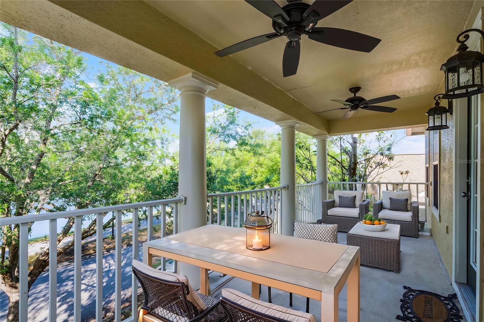 One or more photo(s) has been virtually staged. One or more photo(s) are virtually staged. Beautiful home in sought after Village 2 of Avalon Park! A MUST SEE! This beautifully maintained home features 3 bedrooms plus a Loft /2.5 bath/2 car garage and is situated on a tree lined street with water views. You will love the decorative*Columns*,*Front Porch* and colorful entry door with sidelights. The *Newer Roof* was installed in 2017 and AC units replaced in 2016. As you enter you will appreciate the high ceilings and bright *Natural Light* throughout! The door comes equipped with a peephole camera. The first floor features a formal dining room, living room with *Crown Molding* and the *Open Floorplan* great room/ kitchen combination. The great room features a wall of *Triple Sliders* that lets in natural light and views to the *Extended Covered & Screened Lanai*. The Kitchen features beautiful 40 inch cabinets with *Granite Counters and Backsplash*, all *Stainless Appliances*,*Kitchen Island*, closet pantry, *Breakfast Bar* and *Eat-In* area. The first floor also contains a half bath and separate laundry room with cabinets. Upstairs, enter the owner's bedroom and en-suite bathroom through double doors. The en-suite includes *Walk-In Closets* an exquisite *Jetted Tub*, separate frameless *Oversized Shower* with *Rainfall Shower heads* and an extra long *Dual Sink Vanity with Make-up area*. Also upstairs is a *Loft sitting area* that opens to a spacious covered balcony with ceiling fans that overlook the water. There is also two additional bedrooms and a full bath. Your *Fenced* Backyard boasts a private garden. There is lots of room in the screened & covered lanai perfect for gatherings and entertaining! The rear alleyway entrance 2 car garage with a covered portico to the home. All of this plus basic cable and internet are included in the HOA fees!! It is a short walk across the street to green space and close to Avalon Park Downtown Shopping, Dining, Events, and Highly Rated Avalon Schools! Avalon Park amenities include Community Pools, Community Center with HOA offices, a Splash Pad, Playground w/ Bathrooms, Jogging/Biking Trails, Dog Park, Football/Soccer/Baseball Fields and more. Zoned for Avalon Elementary, Avalon Middle and Timber Creek High School. Avalon Park is a master planned community with downtown Avalon providing Shops, Restaurants & Professional Services, hosting community events, festivals and parades. Avalon is convenient to major employers, local universities, Waterford Lakes Town Center, and Orlando International Airport. Also, it is an easy commute to downtown Orlando and Lake Nona and is only a short drive to Florida’s beautiful beaches.