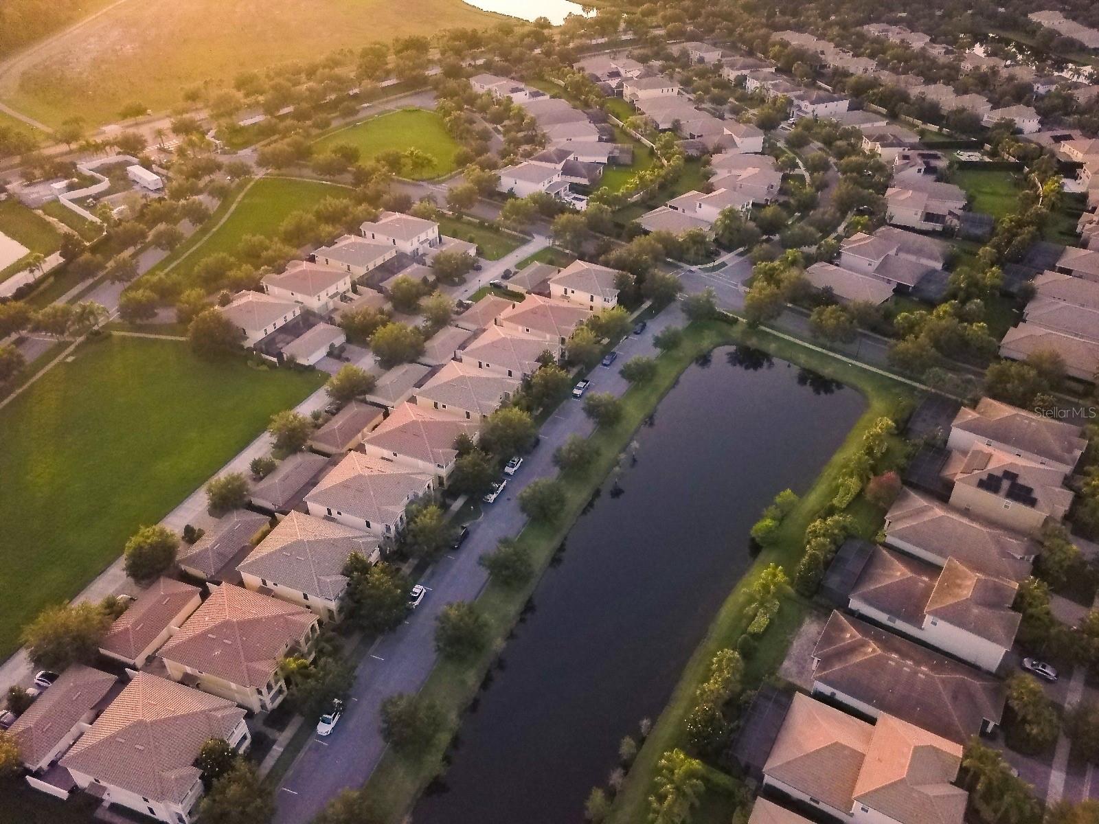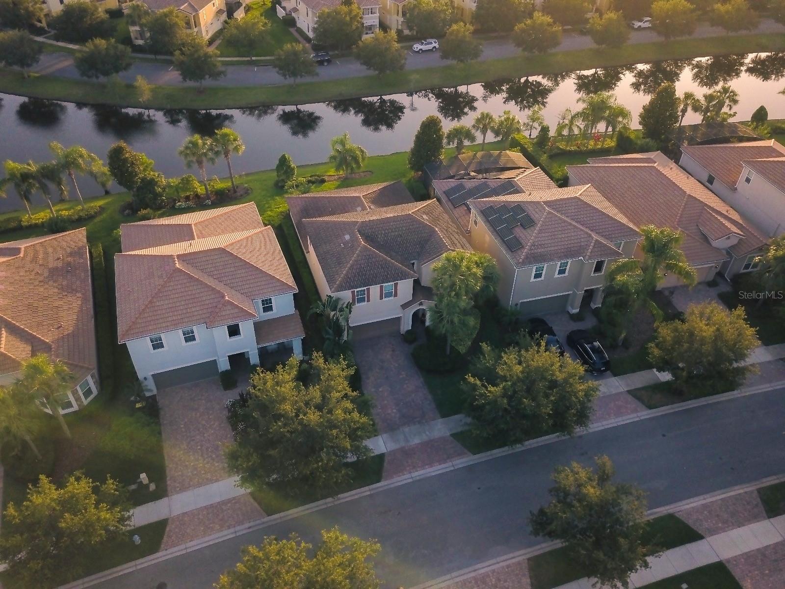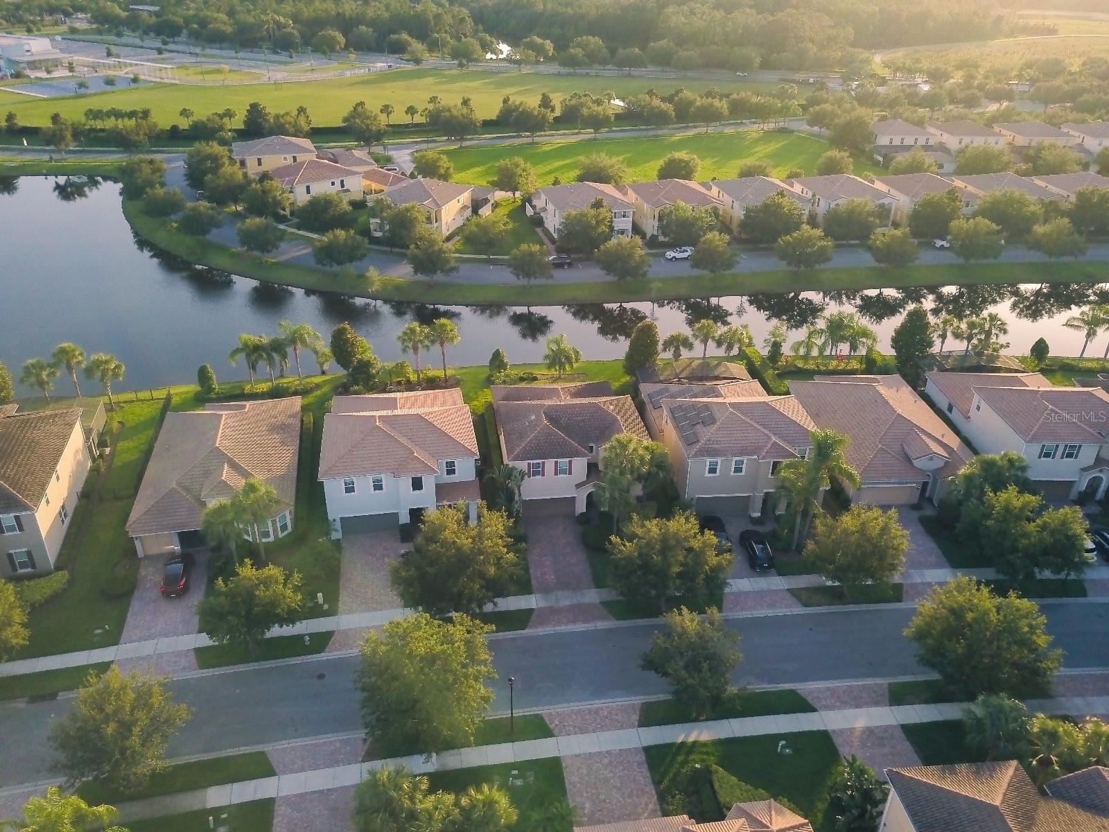 Spacious and beautiful water-view 4 beds /3.5 baths single-family home located in VillageWalk, a 24-hour man-guarded/gated community. It is the Cypus model with Elevation-A. Brand new AC machines! Master suite and one office/study room downstairs, 4 bedrooms upstairs. Drop Zone on first floor provides convenience to the whole family. Upgraded crown molding. Enlarged Master bathroom Shower. Exterior vented Microwave. Screen Enclosure/ Covered Lanai at back porch. HOA Fee includes yard maintenance, internet, cable, phone, security alarm system. Community features a State-of-Art Town Center with Beauty Salon, Deli, Gas Station, Community Lap pool and seperated Swimming Pools, Basketball Court, Six Tennis Courts, Playground. Close to Lake Nona's Medical City. Easy access to Highway 417, Orlando International Airport and some of the finest medical facilities, schools, restaurants, entertainments and shoppings.