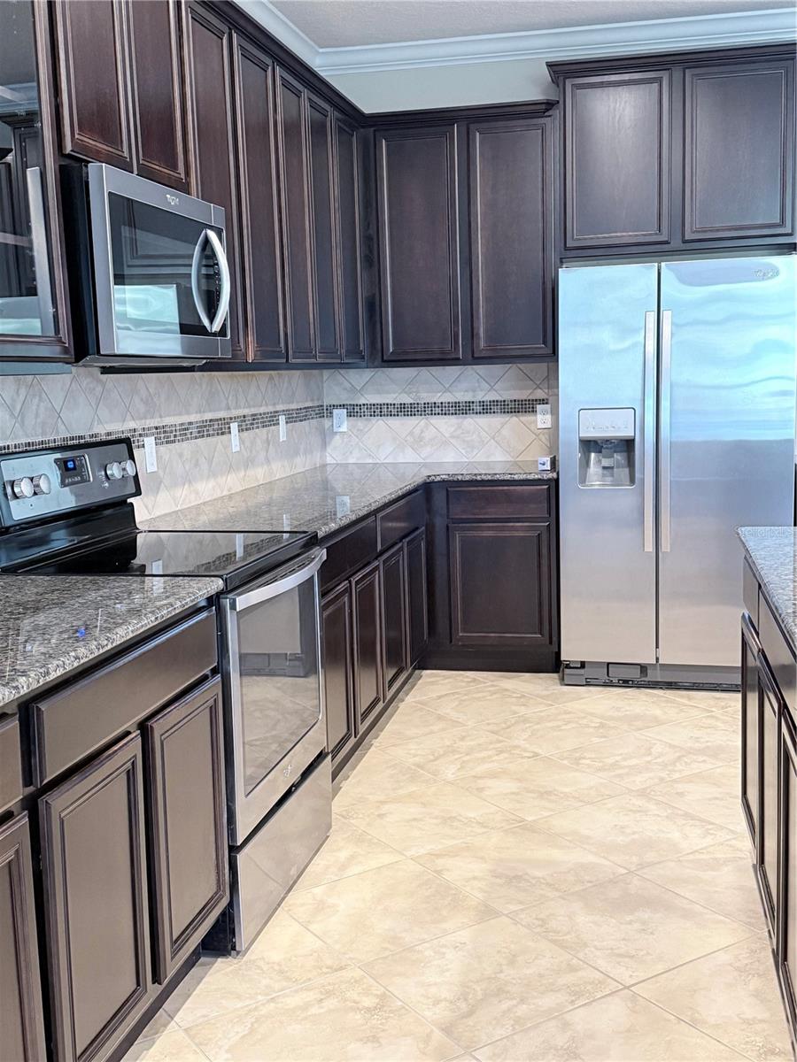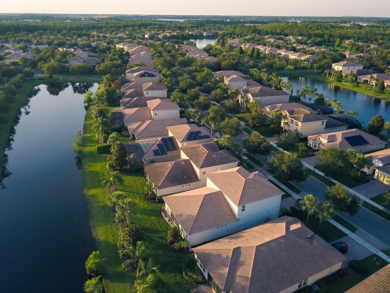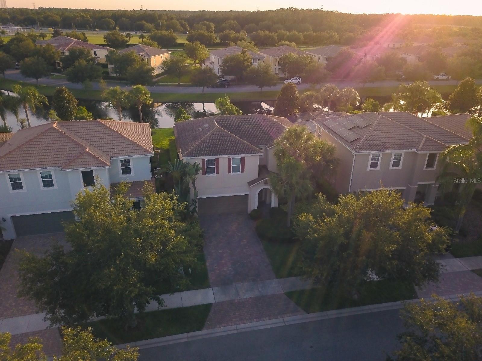 Spacious and beautiful water-view 4 beds /3.5 baths single-family home located in VillageWalk, a 24-hour man-guarded/gated community. It is the Cypus model with Elevation-A. Brand new AC machines! Master suite and one office/study room downstairs, 4 bedrooms upstairs. Drop Zone on first floor provides convenience to the whole family. Upgraded crown molding. Enlarged Master bathroom Shower. Exterior vented Microwave. Screen Enclosure/ Covered Lanai at back porch. HOA Fee includes yard maintenance, internet, cable, phone, security alarm system. Community features a State-of-Art Town Center with Beauty Salon, Deli, Gas Station, Community Lap pool and seperated Swimming Pools, Basketball Court, Six Tennis Courts, Playground. Close to Lake Nona's Medical City. Easy access to Highway 417, Orlando International Airport and some of the finest medical facilities, schools, restaurants, entertainments and shoppings.