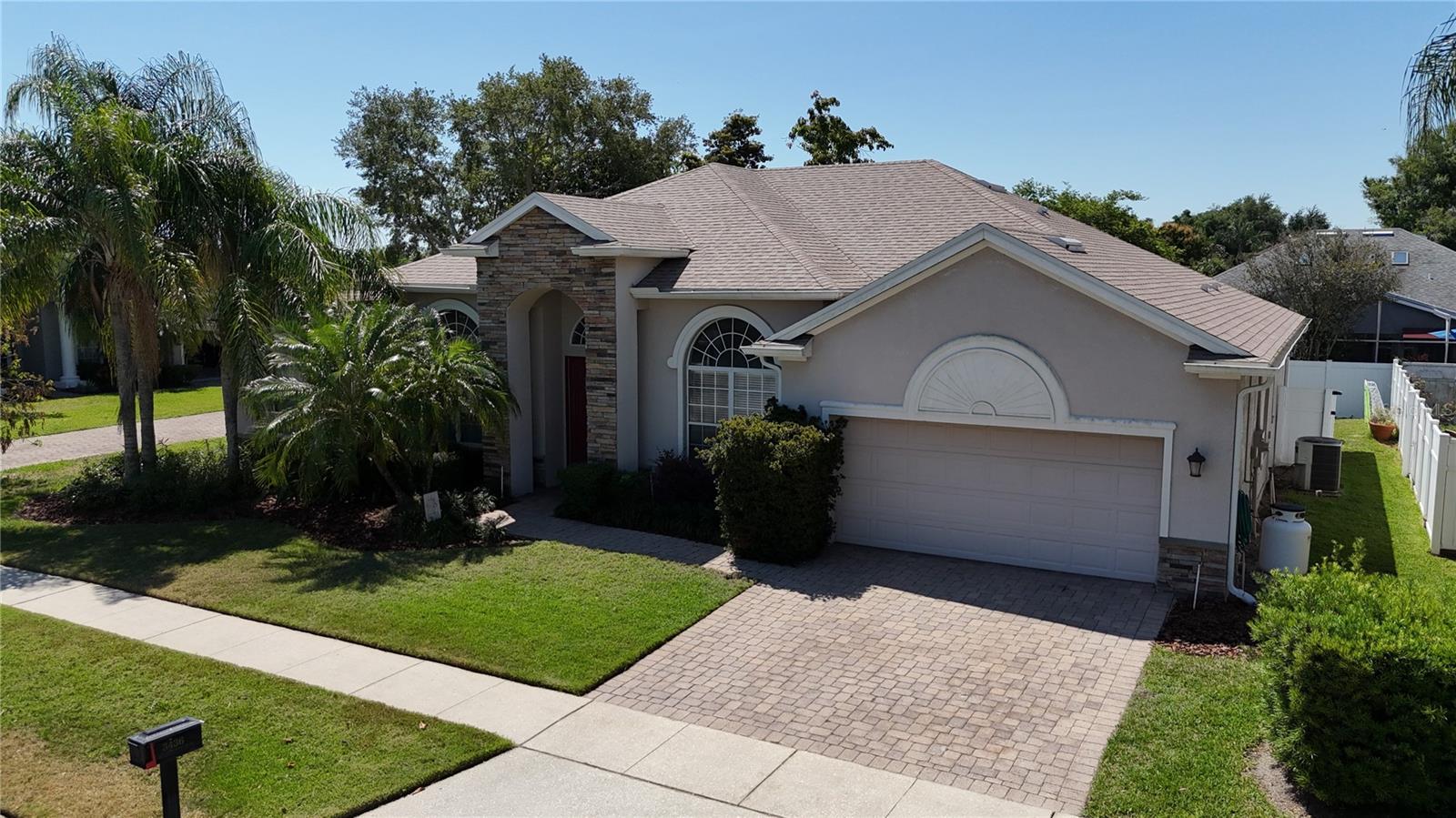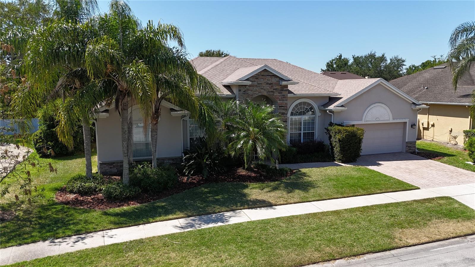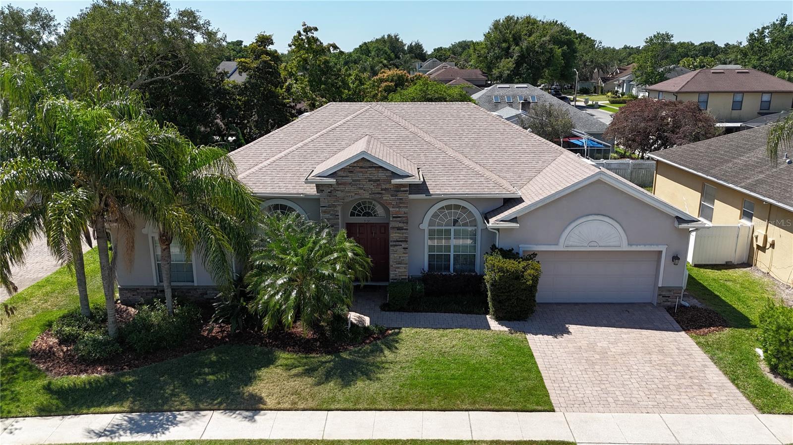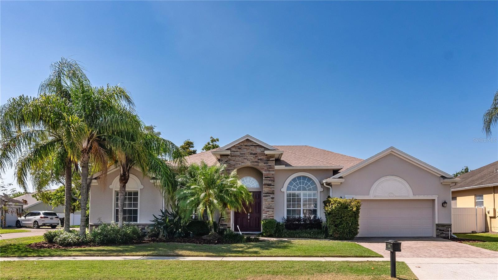 Expect to be impressed with this beautifully appointed home in the desirable Landings at Lake George, a secure, gated community. It starts with great curb appeal – meticulously manicured lawn, lush landscaping, paver driveway and new roof (2024!). Water Heater is new and replaced in 2025. Room for everyone and everything – abundant common living space with 4 bedrooms (3 way split layout) and 3 full baths. Step inside to open spaces designed as living/dining rooms but are versatile to arrange to suit your needs. In the heart of the home, you’ll find a contemporary kitchen which is open to a spacious family room – each making a great gathering space. Kitchen boasts granite counters, island, breakfast bar, abundant raised panel cabinetry, closet pantry and an eat-in nook that can seat a crowd. Primary suite is on one side of home (by the kitchen) – ideal for privacy. The bedroom is large enough for a sitting area or private desk and features a walk-in closet and ensuite bath w/soaker tub, separate shower and split vanity arrangement. Two generous sized bedrooms have access to a full bath, and a third bedroom/full bath are off the family room in the back, making an ideal guest suite. Other notable features: tray ceilings in living room, dining room, & primary suite, recessed niche shelving w/decorative lighting in family room, mitered glass window in kitchen and overhead storage racks in garage. Out back you’ll enjoy a screened lanai – great spot for relaxing or entertaining. Overall ideal location – Within 10 minutes you can be at essential shopping spots (Publix, Lowes, Walmart), and SR 408. You’re only about 15 minutes to the airport and practically around the corner from the wonderful Barber Park where there are ball courts, a fitness path, splash park, picnic spots and more! This home SHINES, both inside and out. Come see all that makes living here so special.
