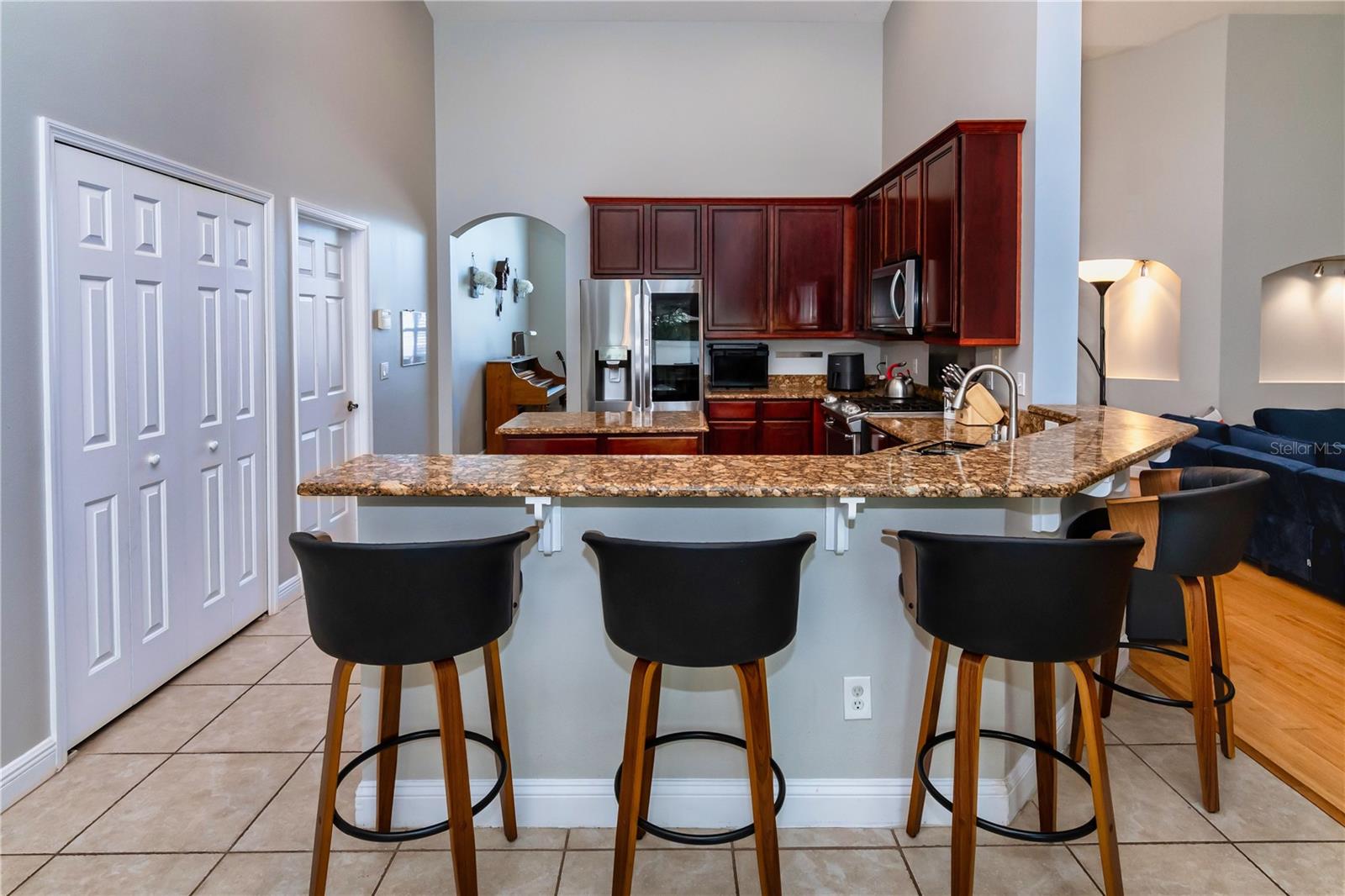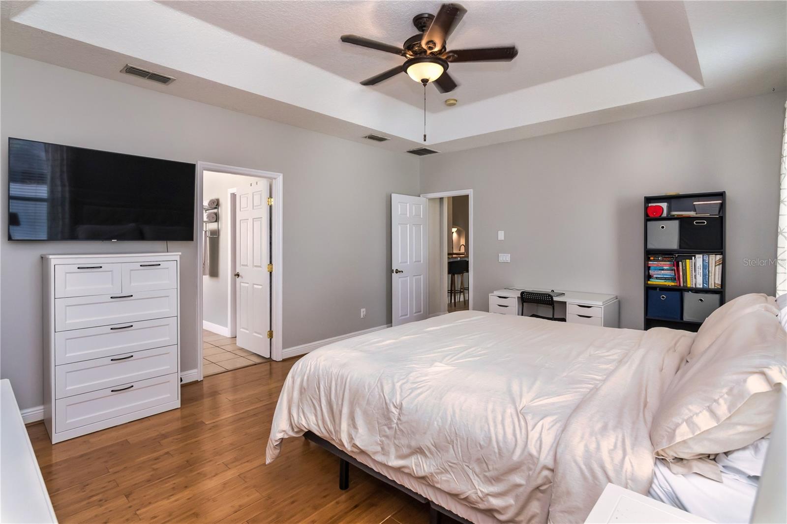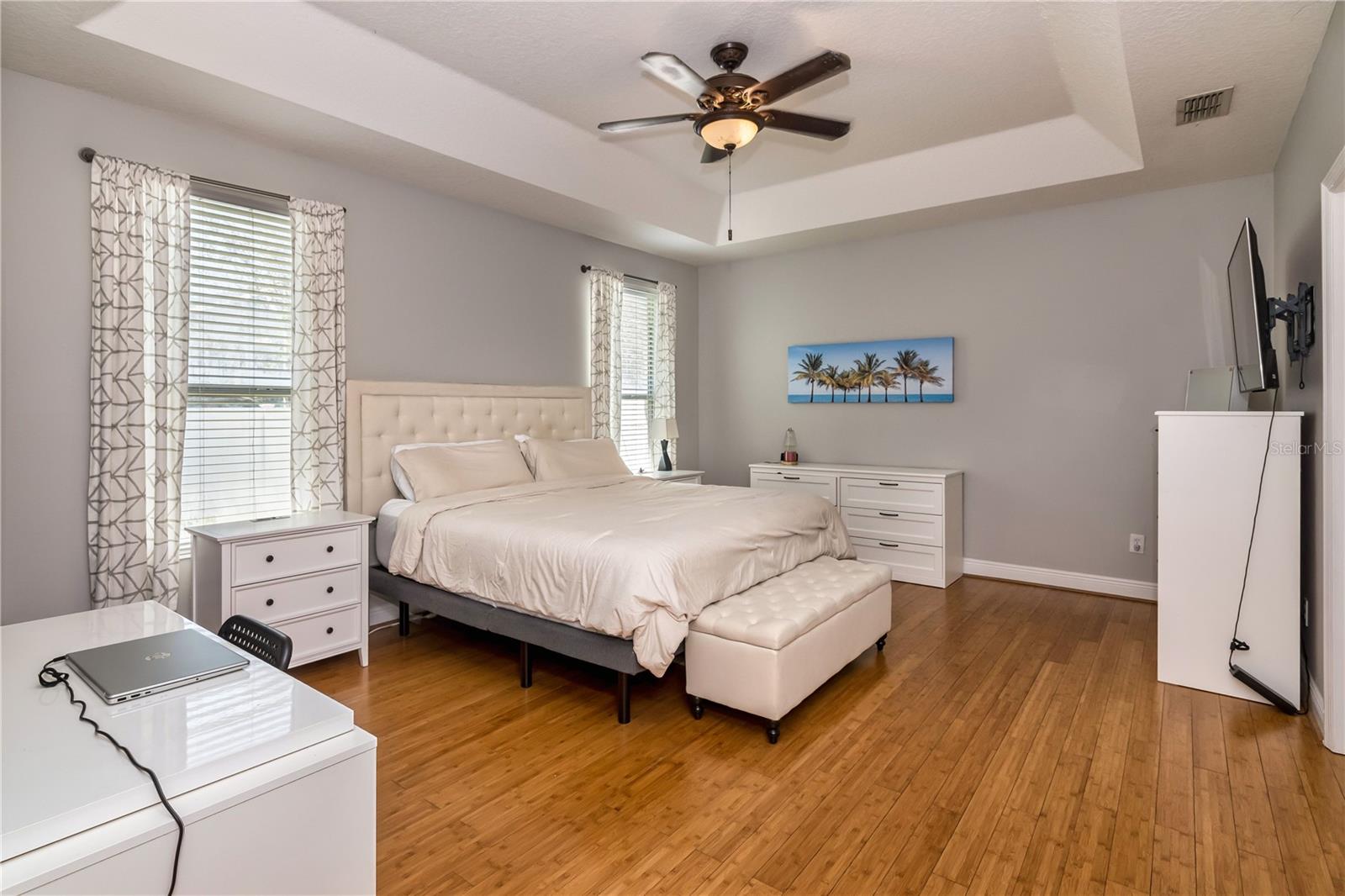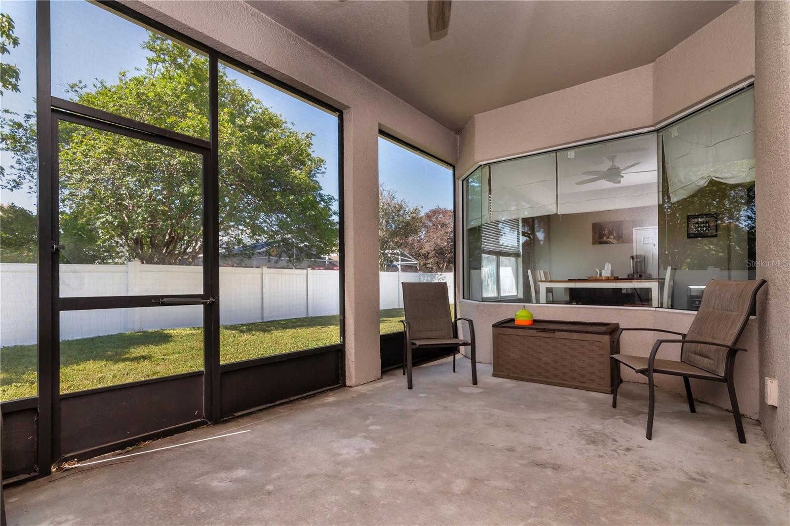 Expect to be impressed with this beautifully appointed home in the desirable Landings at Lake George, a secure, gated community. It starts with great curb appeal – meticulously manicured lawn, lush landscaping, paver driveway and new roof (2024!). Water Heater is new and replaced in 2025. Room for everyone and everything – abundant common living space with 4 bedrooms (3 way split layout) and 3 full baths. Step inside to open spaces designed as living/dining rooms but are versatile to arrange to suit your needs. In the heart of the home, you’ll find a contemporary kitchen which is open to a spacious family room – each making a great gathering space. Kitchen boasts granite counters, island, breakfast bar, abundant raised panel cabinetry, closet pantry and an eat-in nook that can seat a crowd. Primary suite is on one side of home (by the kitchen) – ideal for privacy. The bedroom is large enough for a sitting area or private desk and features a walk-in closet and ensuite bath w/soaker tub, separate shower and split vanity arrangement. Two generous sized bedrooms have access to a full bath, and a third bedroom/full bath are off the family room in the back, making an ideal guest suite. Other notable features: tray ceilings in living room, dining room, & primary suite, recessed niche shelving w/decorative lighting in family room, mitered glass window in kitchen and overhead storage racks in garage. Out back you’ll enjoy a screened lanai – great spot for relaxing or entertaining. Overall ideal location – Within 10 minutes you can be at essential shopping spots (Publix, Lowes, Walmart), and SR 408. You’re only about 15 minutes to the airport and practically around the corner from the wonderful Barber Park where there are ball courts, a fitness path, splash park, picnic spots and more! This home SHINES, both inside and out. Come see all that makes living here so special.