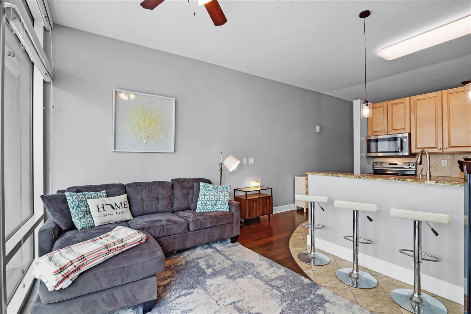 Location is everything, and 101 Eola is THE prime location in the heart of Downtown Orlando within the Thornton Park District. This highly sought after studio unit has many recent upgrades which includes a BRAND NEW AC, chiller lines, water heater, refrigerator, AND microwave,and built-in CUSTOM closet. Also features laminate floors in the living room, bedroom, hallway, and walk-in closet with tile in the kitchen, bathroom and entryway. The kitchen features stainless steel appliances, tile backsplash and granite countertops. You have the perfect spot to watch fireworks from all the many different downtown festivals and celebrations with stellar views of Lake Eola! Come live the Thornton Park lifestyle in this ideally located, mid-rise building with 24-hour front desk staff/concierge and security. Building amenities include a gorgeous, FULLY RENOVATED resort-style salt water pool that has just been redone on the 5th floor, heated spa, and clubroom, along with a community gym. Living in 101 Eola gives you easy access to Lake Eola, it’s amazing farmers market, Starbucks and countless fantastic restaurants, right outside your front door!