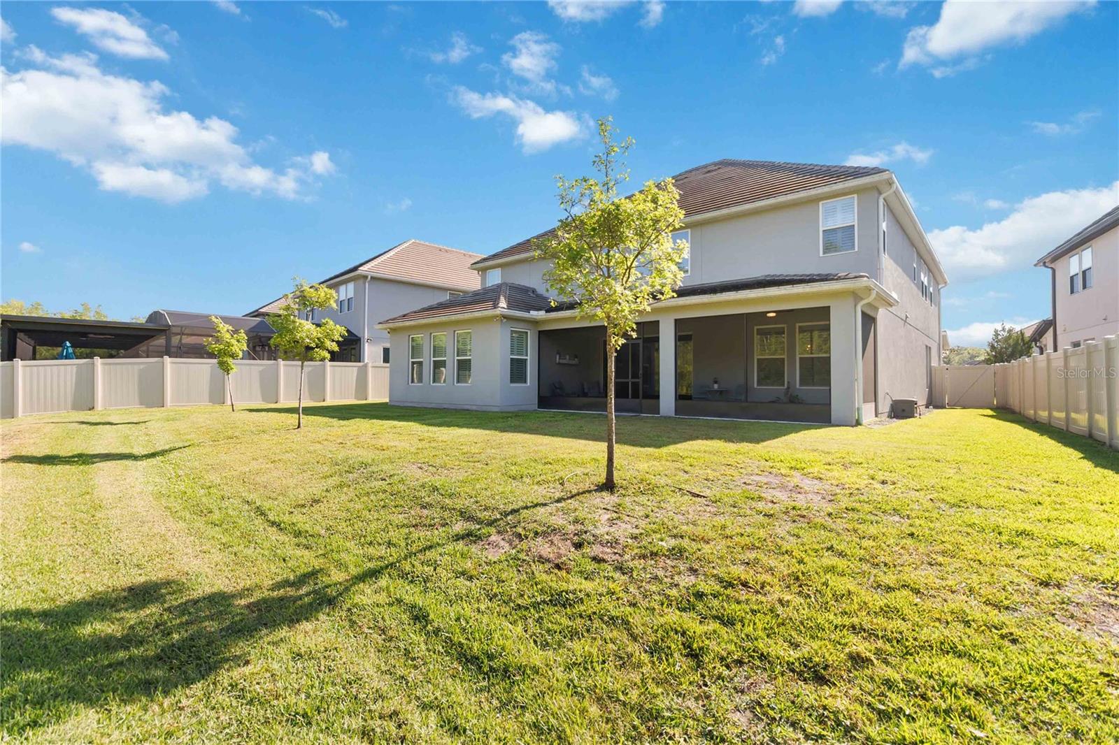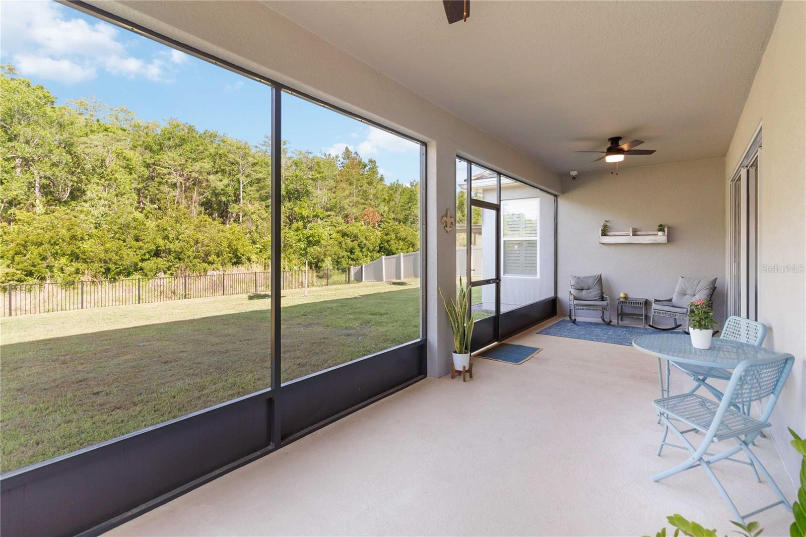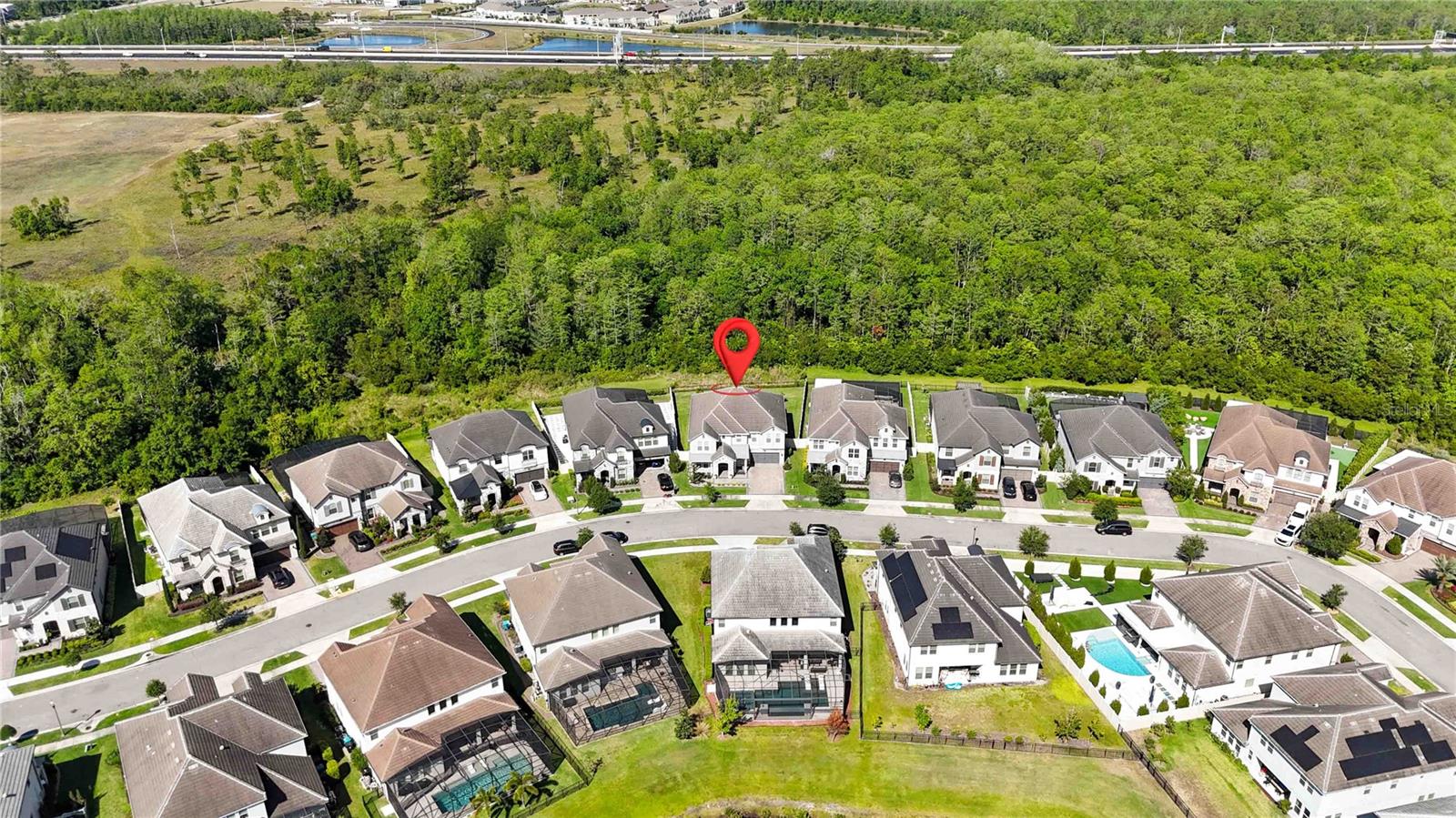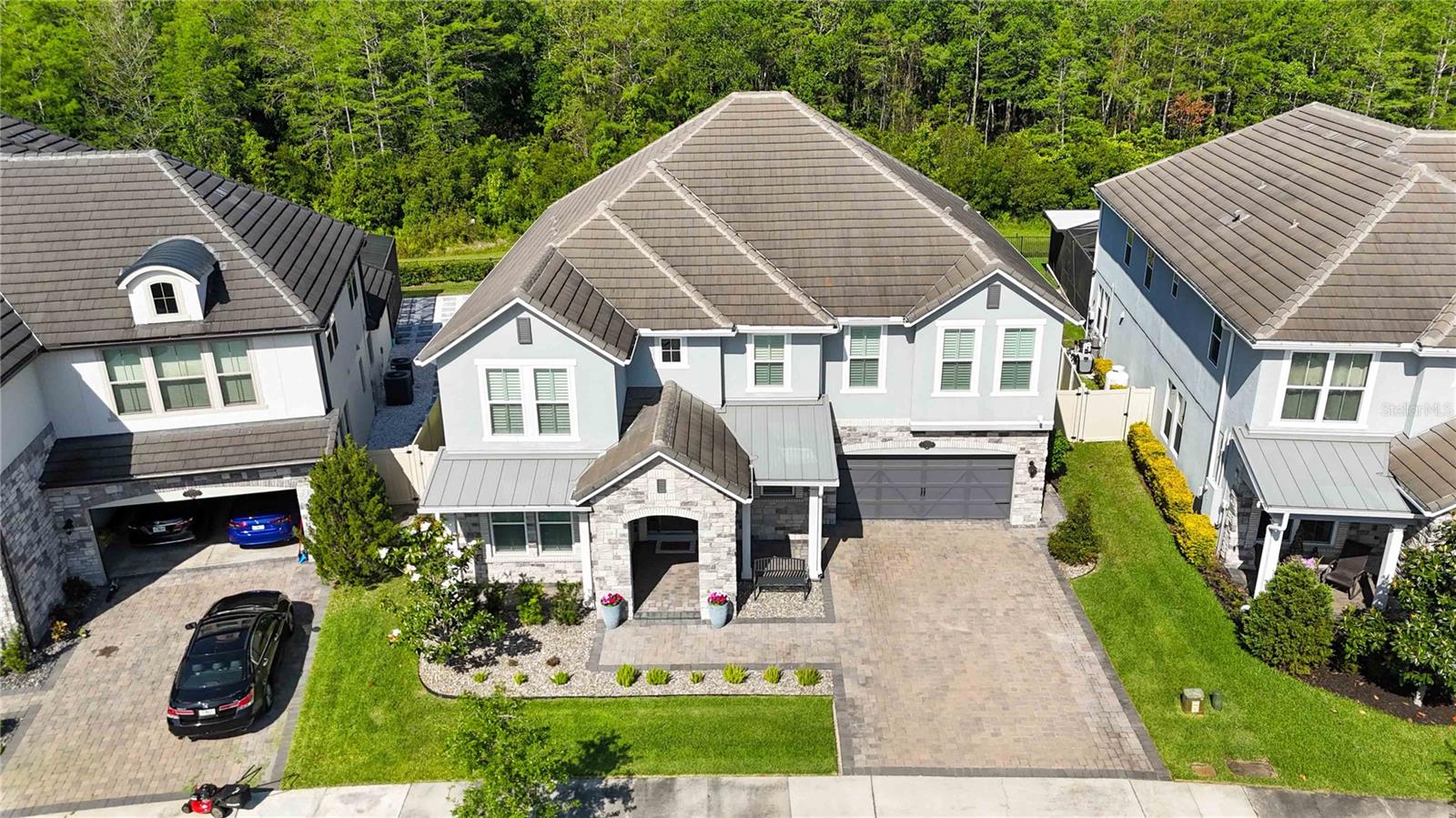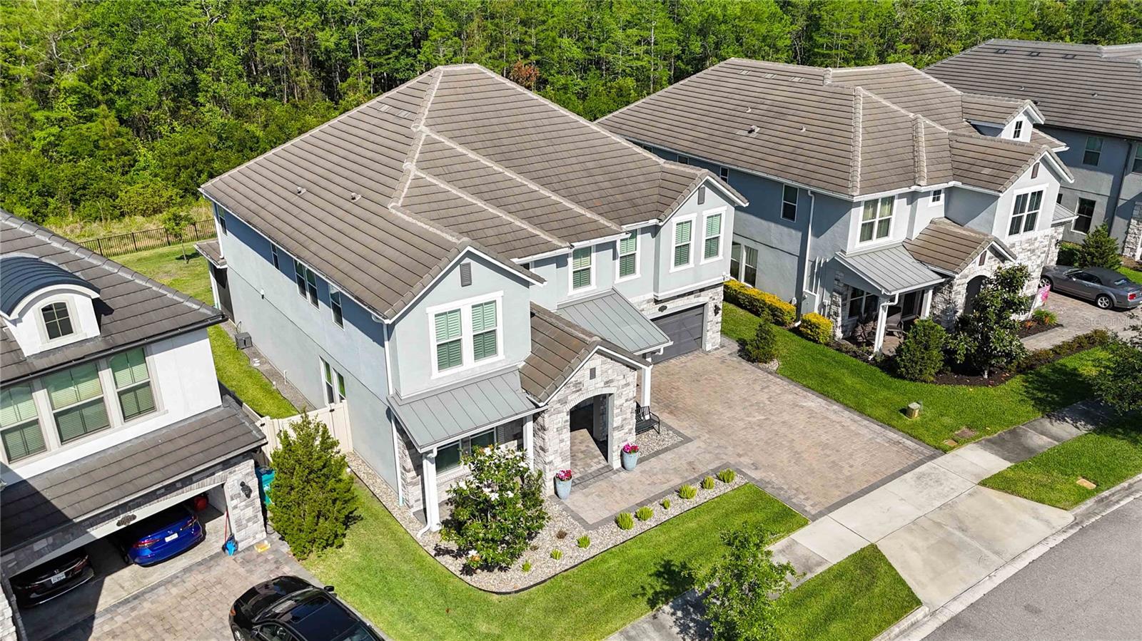 Assumable VA Loan at 2.75% interest! Step into luxury in this impeccably designed home, filled with high-end upgrades and smart home features. From the moment you arrive, the extended paver driveway, stone façade, and manicured landscaping set the stage for quality craftsmanship and stunning curb appeal. A welcoming front porch invites you in with charm and warmth. Located in the gated community of Belle Vie in Lake Nona, this home sits on just under a quarter-acre conservation lot, offering both privacy and peaceful natural views. Enjoy peace of mind with wired exterior cameras, a fenced backyard, a hurricane-rated garage door, Lorex smart doorbell, and a Rain Bird irrigation system keeping your home secure, private, and lush. Inside, the gourmet kitchen is a chef’s dream. Outfitted with KitchenAid appliances, a farmhouse sink, quartz countertops, convection wall oven and microwave, vented range hood, custom tile backsplash, under-cabinet lighting, and a butler’s pantry with a beverage fridge, it blends beauty with function. The home’s interior shines with engineered hardwood floors, plantation shutters, and crown molding in the office, dining room, and owner’s suite. A glass-enclosed office offers a bright, modern workspace with quiet seclusion—perfect for working from home. The main-level owner’s suite is a tranquil retreat featuring custom wood doors, built-in closet shelving, and luxurious comfort. Upstairs, a private en-suite bedroom is perfect for guests or multigenerational living. Entertainment is elevated in the dedicated theater room, complete with a surround sound system and elevated seating riser for a true cinematic experience. Efficiency and connectivity shine with two Carrier A/C units, Nest thermostats, a hybrid water heater, water softener, and a built-in On-Q® Smart Home Hub. Additional highlights include a coated garage floor, keypad garage entry, a laundry room with utility sink and upper cabinets, and thoughtfully placed power outlets in the pantry, closets, and linen storage areas for added convenience. Washer and dryer, bench, and tall planters in the front yard convey with the sale. Please note: Interior cameras and floor-mounted garage shelving do not convey. This home offers the perfect blend of luxury, comfort, smart living, and thoughtful detail—truly a one-of-a-kind property in a prime location. Don’t miss the opportunity to make it yours. Schedule your private showing today!