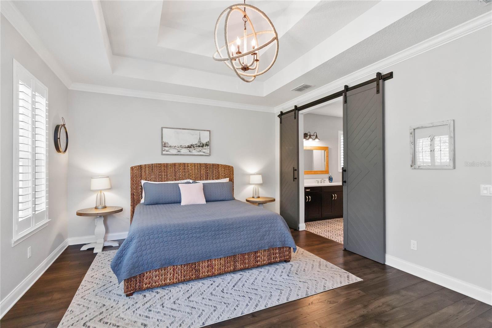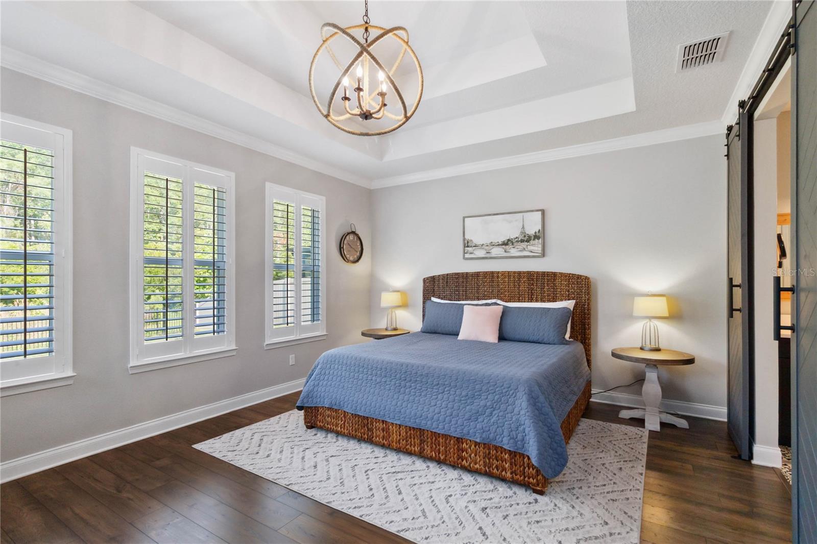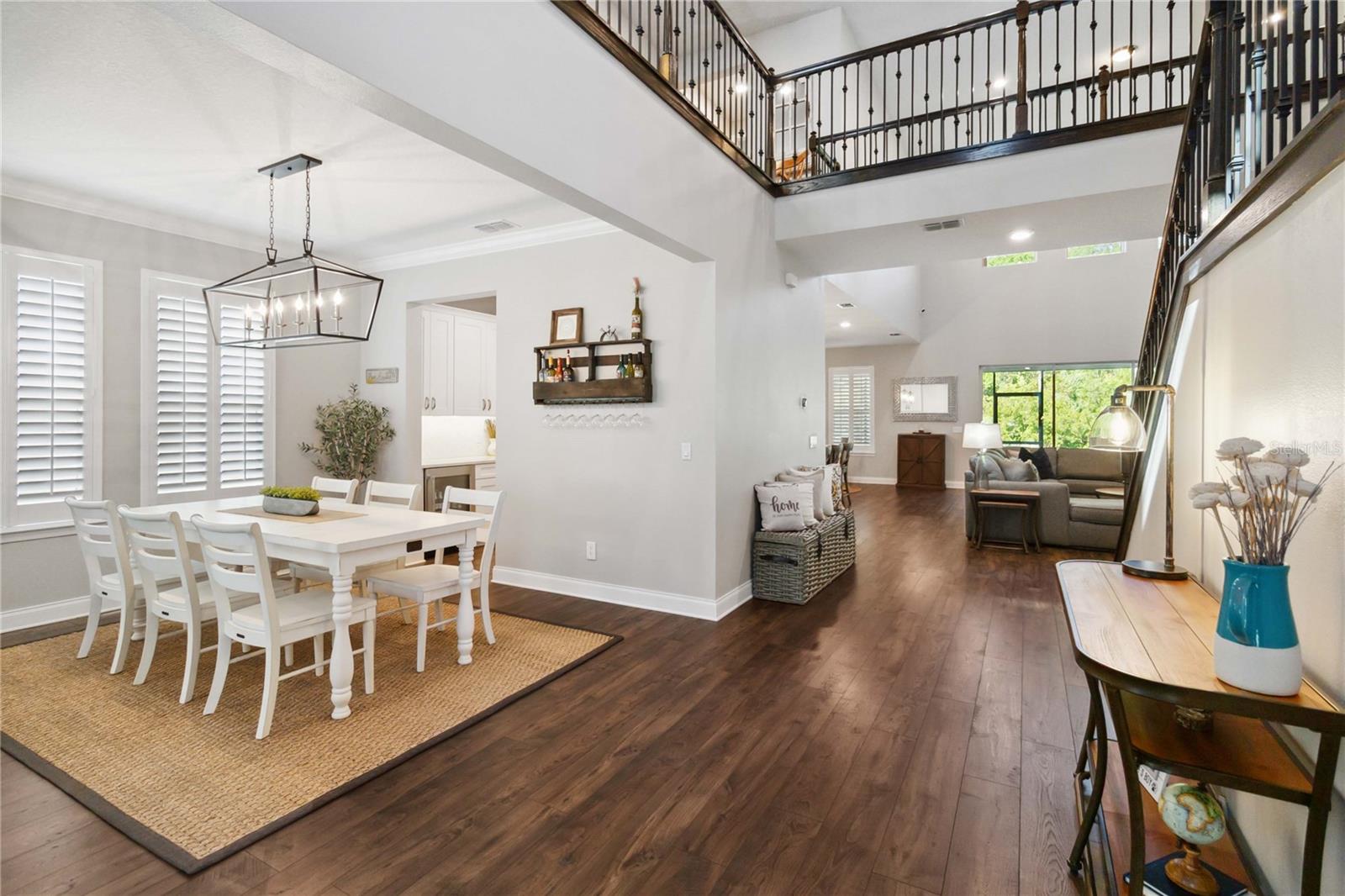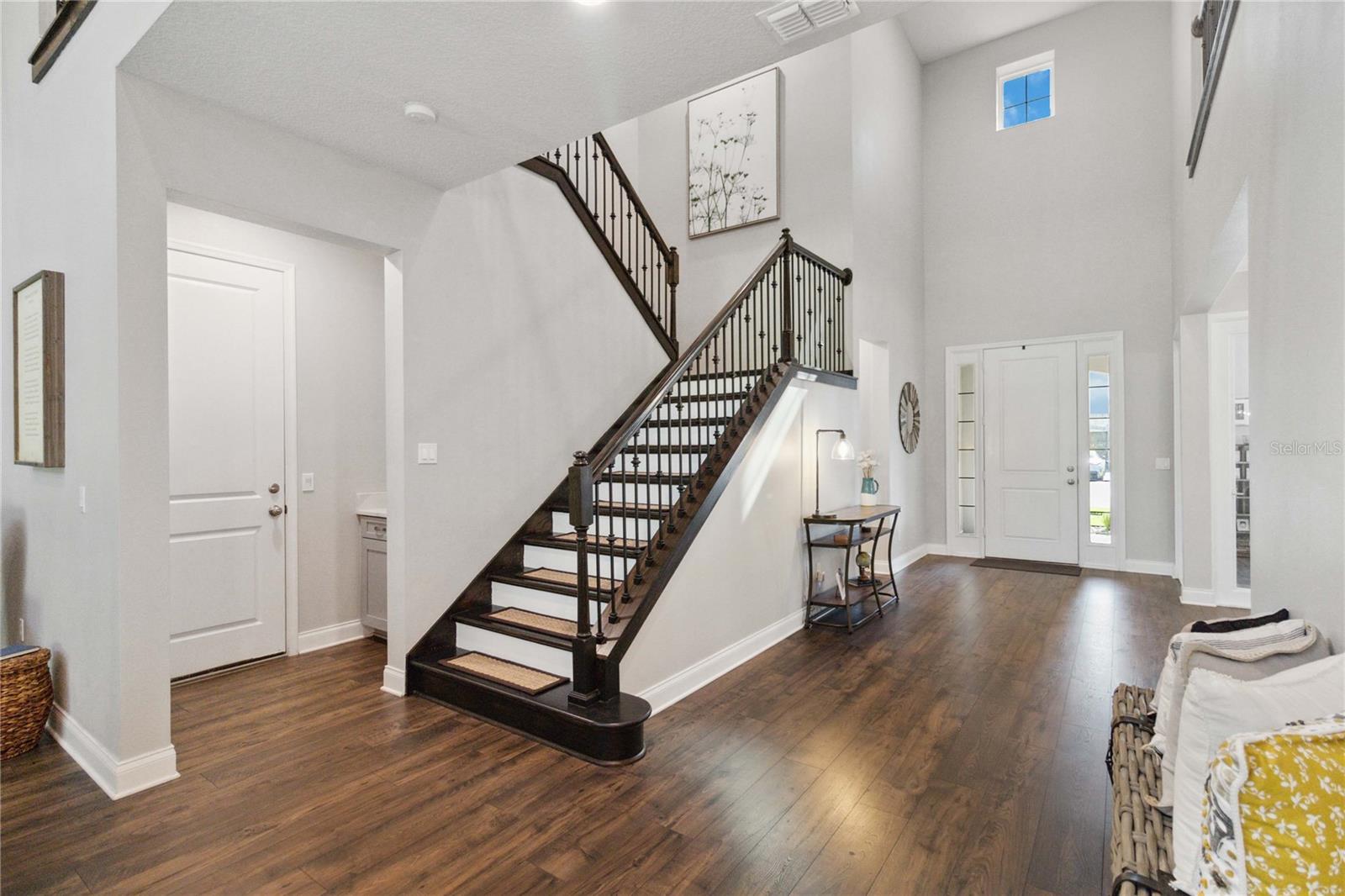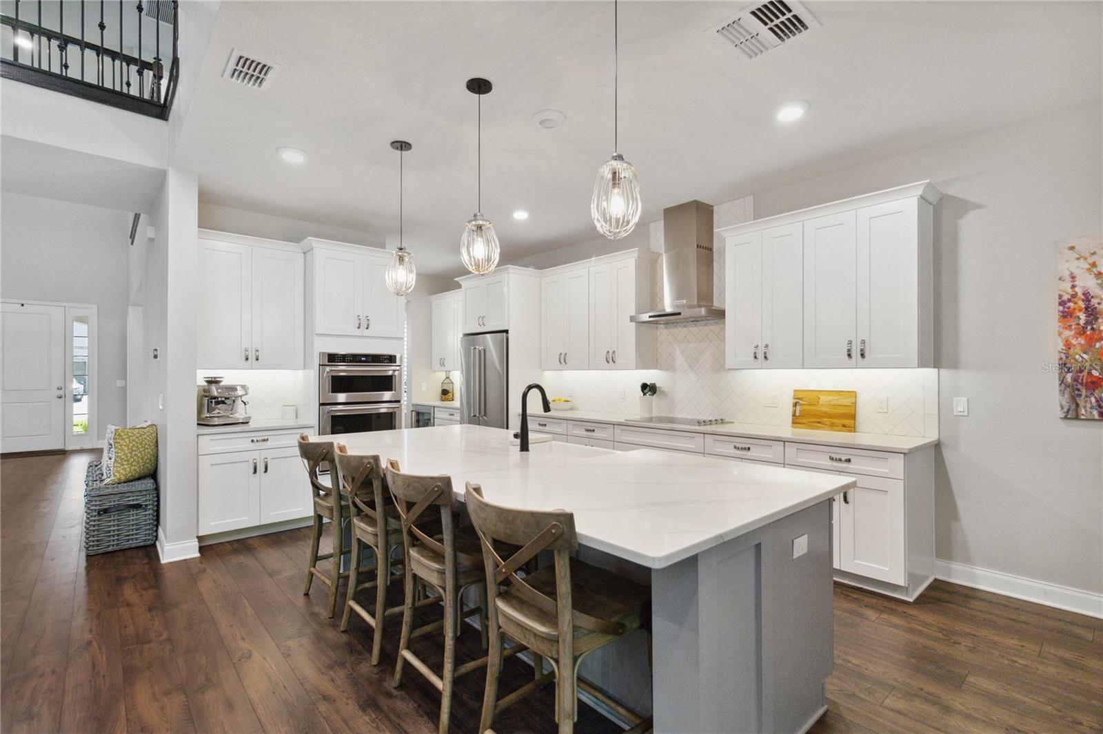 Assumable VA Loan at 2.75% interest! Step into luxury in this impeccably designed home, filled with high-end upgrades and smart home features. From the moment you arrive, the extended paver driveway, stone façade, and manicured landscaping set the stage for quality craftsmanship and stunning curb appeal. A welcoming front porch invites you in with charm and warmth. Located in the gated community of Belle Vie in Lake Nona, this home sits on just under a quarter-acre conservation lot, offering both privacy and peaceful natural views. Enjoy peace of mind with wired exterior cameras, a fenced backyard, a hurricane-rated garage door, Lorex smart doorbell, and a Rain Bird irrigation system keeping your home secure, private, and lush. Inside, the gourmet kitchen is a chef’s dream. Outfitted with KitchenAid appliances, a farmhouse sink, quartz countertops, convection wall oven and microwave, vented range hood, custom tile backsplash, under-cabinet lighting, and a butler’s pantry with a beverage fridge, it blends beauty with function. The home’s interior shines with engineered hardwood floors, plantation shutters, and crown molding in the office, dining room, and owner’s suite. A glass-enclosed office offers a bright, modern workspace with quiet seclusion—perfect for working from home. The main-level owner’s suite is a tranquil retreat featuring custom wood doors, built-in closet shelving, and luxurious comfort. Upstairs, a private en-suite bedroom is perfect for guests or multigenerational living. Entertainment is elevated in the dedicated theater room, complete with a surround sound system and elevated seating riser for a true cinematic experience. Efficiency and connectivity shine with two Carrier A/C units, Nest thermostats, a hybrid water heater, water softener, and a built-in On-Q® Smart Home Hub. Additional highlights include a coated garage floor, keypad garage entry, a laundry room with utility sink and upper cabinets, and thoughtfully placed power outlets in the pantry, closets, and linen storage areas for added convenience. Washer and dryer, bench, and tall planters in the front yard convey with the sale. Please note: Interior cameras and floor-mounted garage shelving do not convey. This home offers the perfect blend of luxury, comfort, smart living, and thoughtful detail—truly a one-of-a-kind property in a prime location. Don’t miss the opportunity to make it yours. Schedule your private showing today!