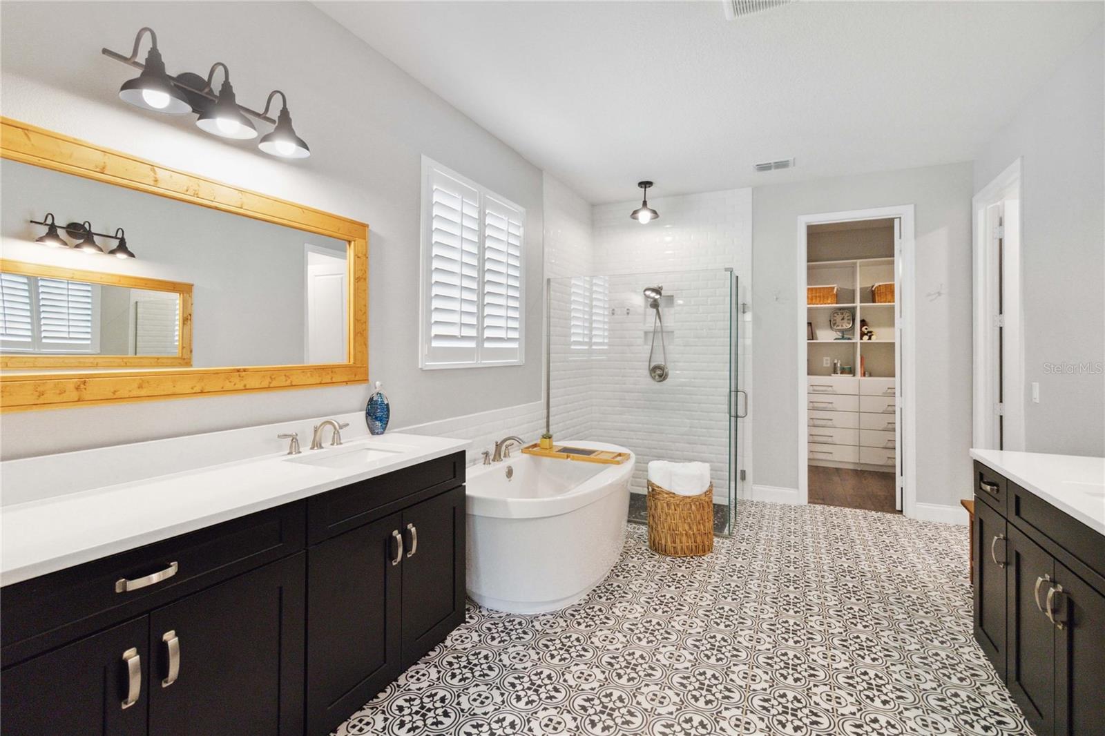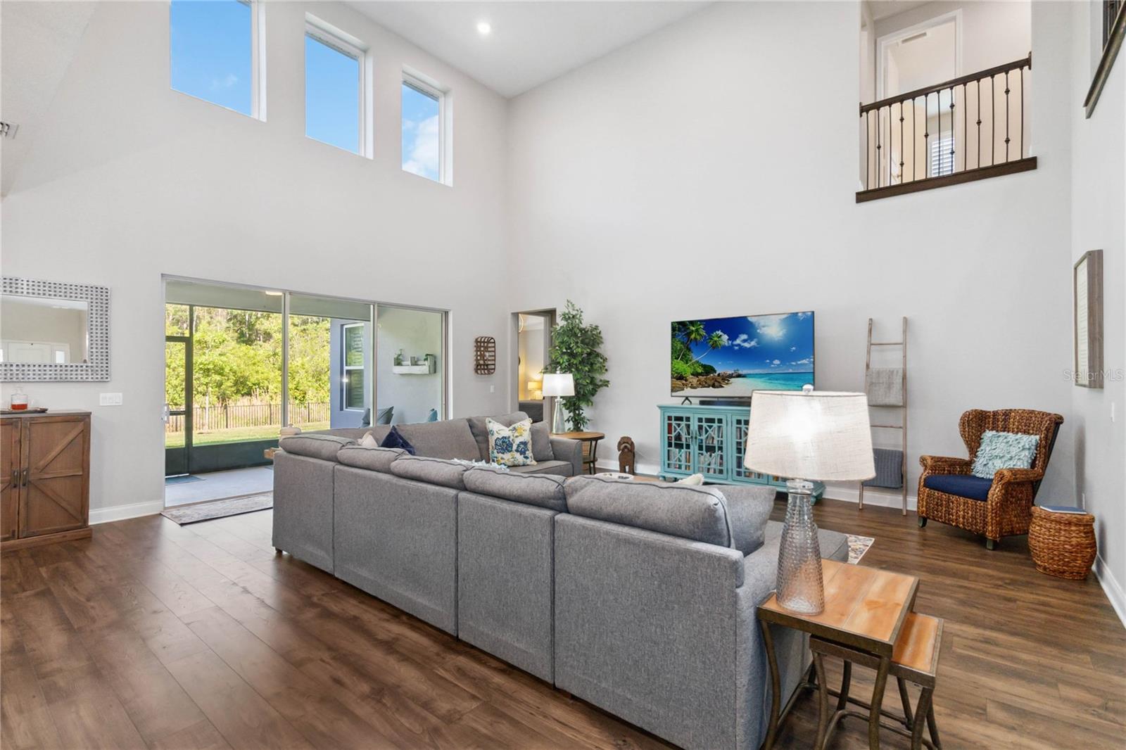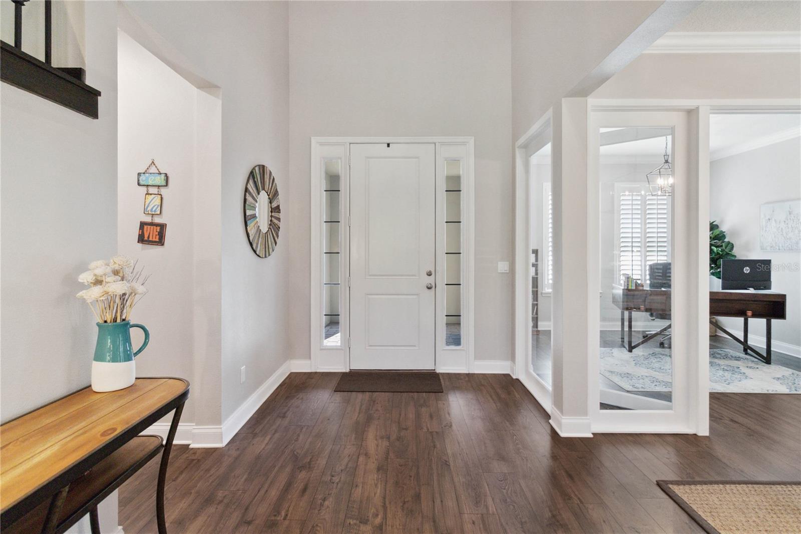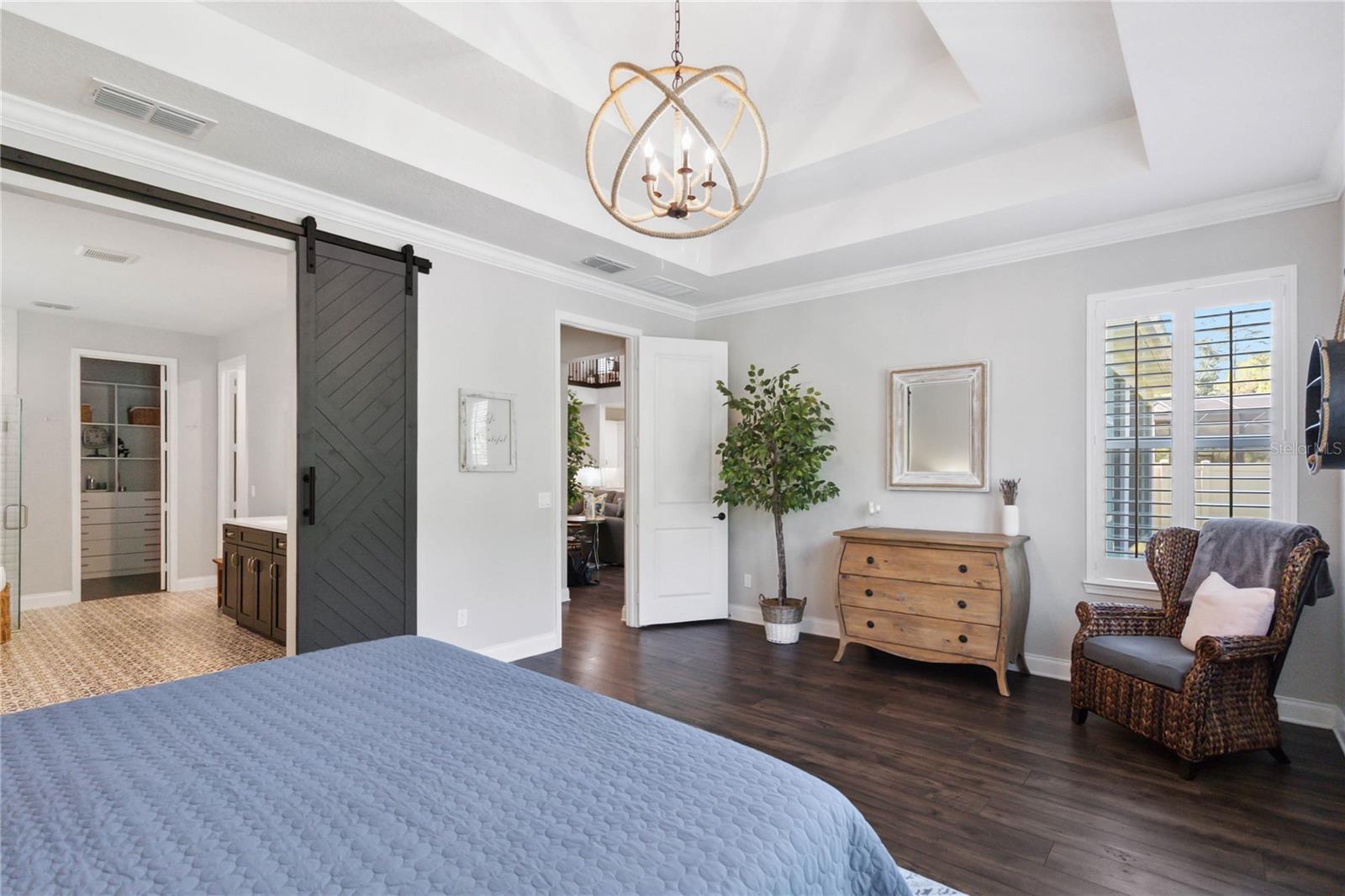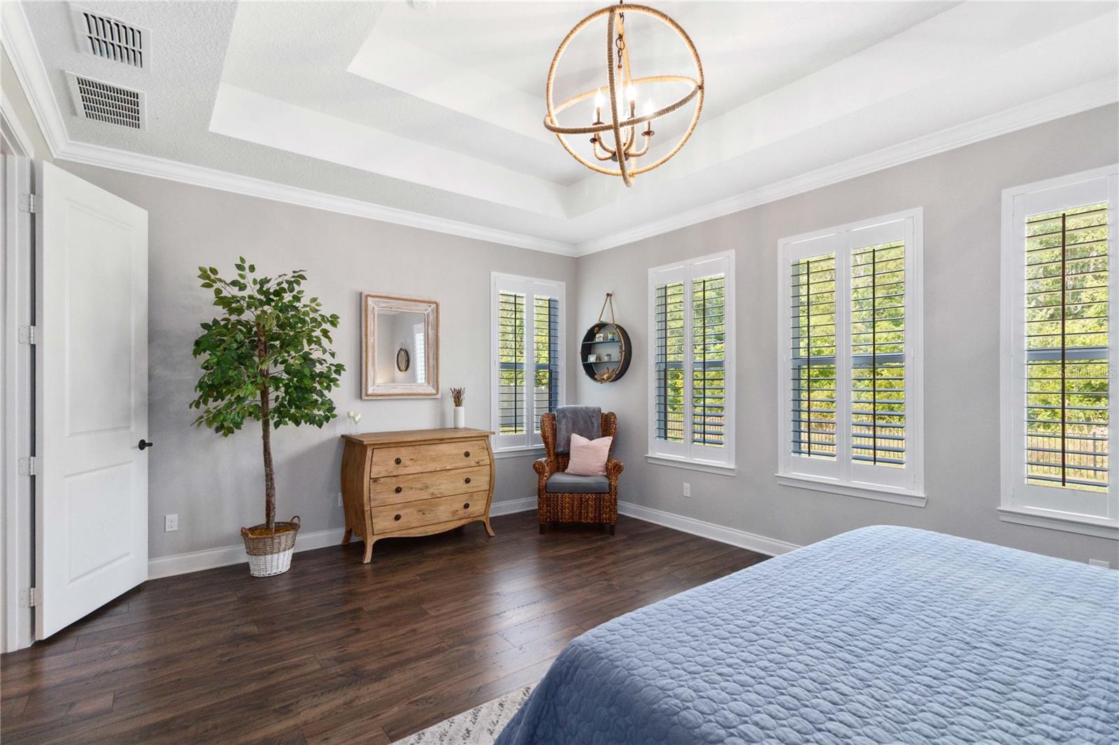Assumable VA Loan at 2.75% interest! Step into luxury in this impeccably designed home, filled with high-end upgrades and smart home features. From the moment you arrive, the extended paver driveway, stone façade, and manicured landscaping set the stage for quality craftsmanship and stunning curb appeal. A welcoming front porch invites you in with charm and warmth. Located in the gated community of Belle Vie in Lake Nona, this home sits on just under a quarter-acre conservation lot, offering both privacy and peaceful natural views. Enjoy peace of mind with wired exterior cameras, a fenced backyard, a hurricane-rated garage door, Lorex smart doorbell, and a Rain Bird irrigation system keeping your home secure, private, and lush. Inside, the gourmet kitchen is a chef’s dream. Outfitted with KitchenAid appliances, a farmhouse sink, quartz countertops, convection wall oven and microwave, vented range hood, custom tile backsplash, under-cabinet lighting, and a butler’s pantry with a beverage fridge, it blends beauty with function. The home’s interior shines with engineered hardwood floors, plantation shutters, and crown molding in the office, dining room, and owner’s suite. A glass-enclosed office offers a bright, modern workspace with quiet seclusion—perfect for working from home. The main-level owner’s suite is a tranquil retreat featuring custom wood doors, built-in closet shelving, and luxurious comfort. Upstairs, a private en-suite bedroom is perfect for guests or multigenerational living. Entertainment is elevated in the dedicated theater room, complete with a surround sound system and elevated seating riser for a true cinematic experience. Efficiency and connectivity shine with two Carrier A/C units, Nest thermostats, a hybrid water heater, water softener, and a built-in On-Q® Smart Home Hub. Additional highlights include a coated garage floor, keypad garage entry, a laundry room with utility sink and upper cabinets, and thoughtfully placed power outlets in the pantry, closets, and linen storage areas for added convenience. Washer and dryer, bench, and tall planters in the front yard convey with the sale. Please note: Interior cameras and floor-mounted garage shelving do not convey. This home offers the perfect blend of luxury, comfort, smart living, and thoughtful detail—truly a one-of-a-kind property in a prime location. Don’t miss the opportunity to make it yours. Schedule your private showing today!