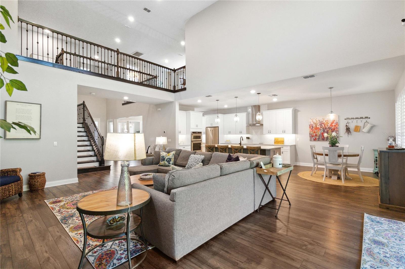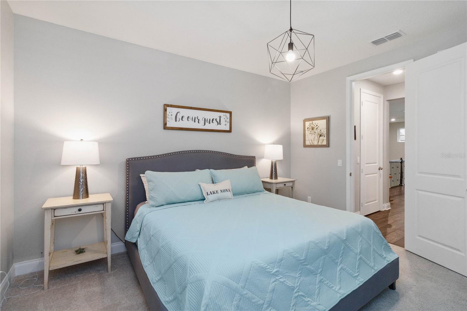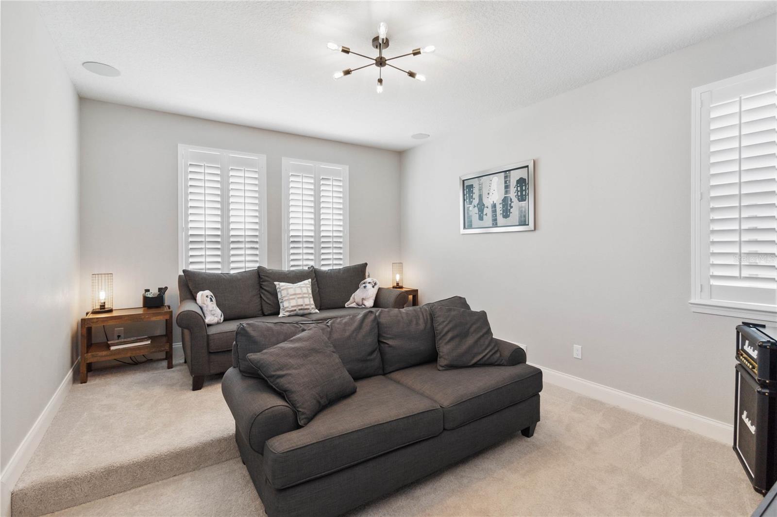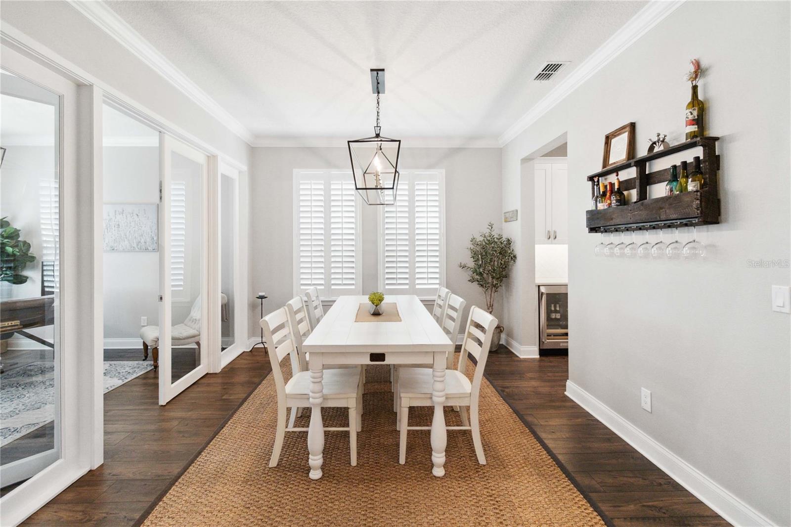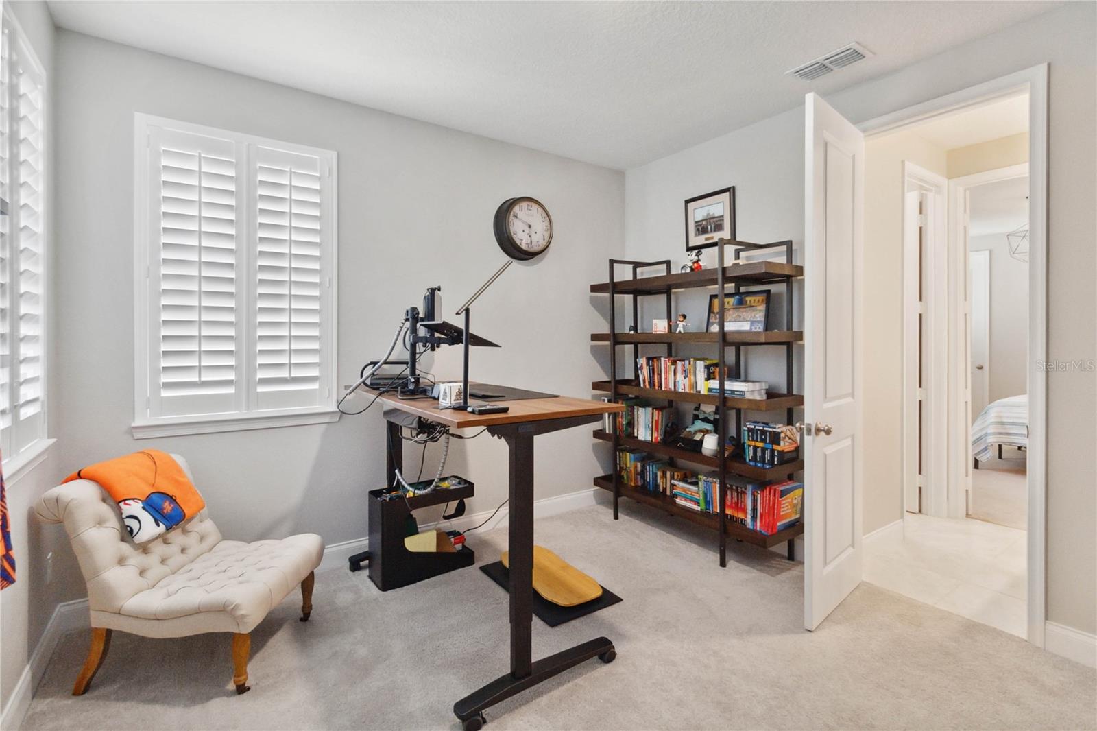 Assumable VA Loan at 2.75% interest! Step into luxury in this impeccably designed home, filled with high-end upgrades and smart home features. From the moment you arrive, the extended paver driveway, stone façade, and manicured landscaping set the stage for quality craftsmanship and stunning curb appeal. A welcoming front porch invites you in with charm and warmth. Located in the gated community of Belle Vie in Lake Nona, this home sits on just under a quarter-acre conservation lot, offering both privacy and peaceful natural views. Enjoy peace of mind with wired exterior cameras, a fenced backyard, a hurricane-rated garage door, Lorex smart doorbell, and a Rain Bird irrigation system keeping your home secure, private, and lush. Inside, the gourmet kitchen is a chef’s dream. Outfitted with KitchenAid appliances, a farmhouse sink, quartz countertops, convection wall oven and microwave, vented range hood, custom tile backsplash, under-cabinet lighting, and a butler’s pantry with a beverage fridge, it blends beauty with function. The home’s interior shines with engineered hardwood floors, plantation shutters, and crown molding in the office, dining room, and owner’s suite. A glass-enclosed office offers a bright, modern workspace with quiet seclusion—perfect for working from home. The main-level owner’s suite is a tranquil retreat featuring custom wood doors, built-in closet shelving, and luxurious comfort. Upstairs, a private en-suite bedroom is perfect for guests or multigenerational living. Entertainment is elevated in the dedicated theater room, complete with a surround sound system and elevated seating riser for a true cinematic experience. Efficiency and connectivity shine with two Carrier A/C units, Nest thermostats, a hybrid water heater, water softener, and a built-in On-Q® Smart Home Hub. Additional highlights include a coated garage floor, keypad garage entry, a laundry room with utility sink and upper cabinets, and thoughtfully placed power outlets in the pantry, closets, and linen storage areas for added convenience. Washer and dryer, bench, and tall planters in the front yard convey with the sale. Please note: Interior cameras and floor-mounted garage shelving do not convey. This home offers the perfect blend of luxury, comfort, smart living, and thoughtful detail—truly a one-of-a-kind property in a prime location. Don’t miss the opportunity to make it yours. Schedule your private showing today!