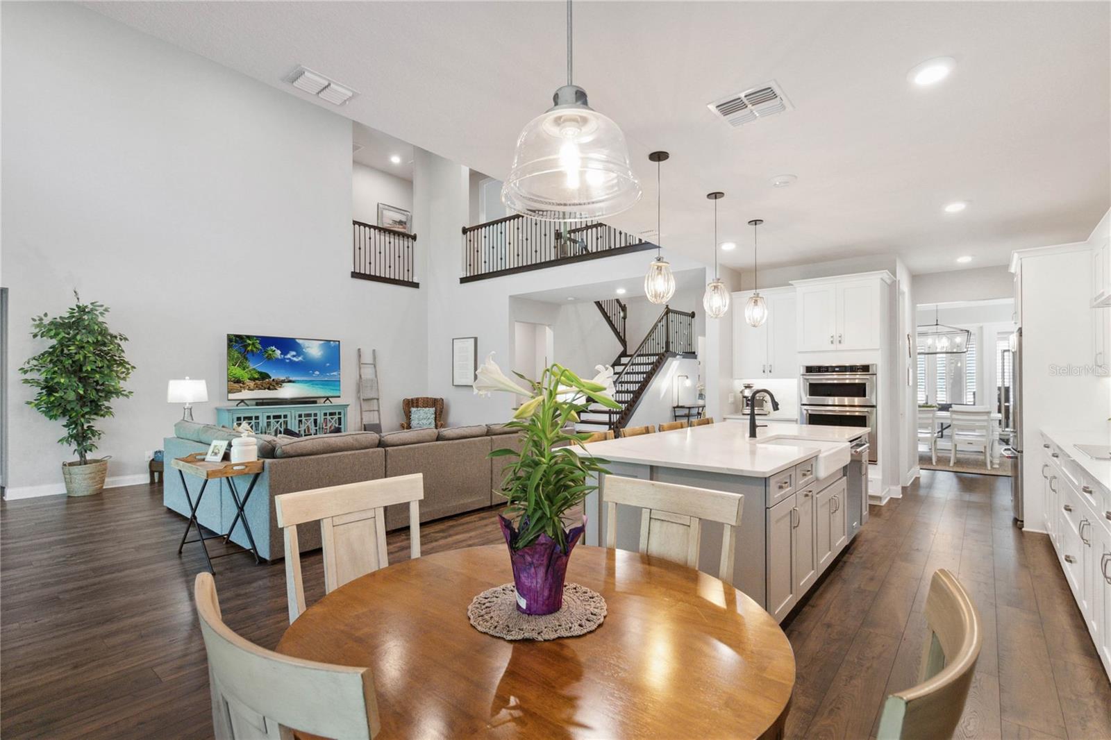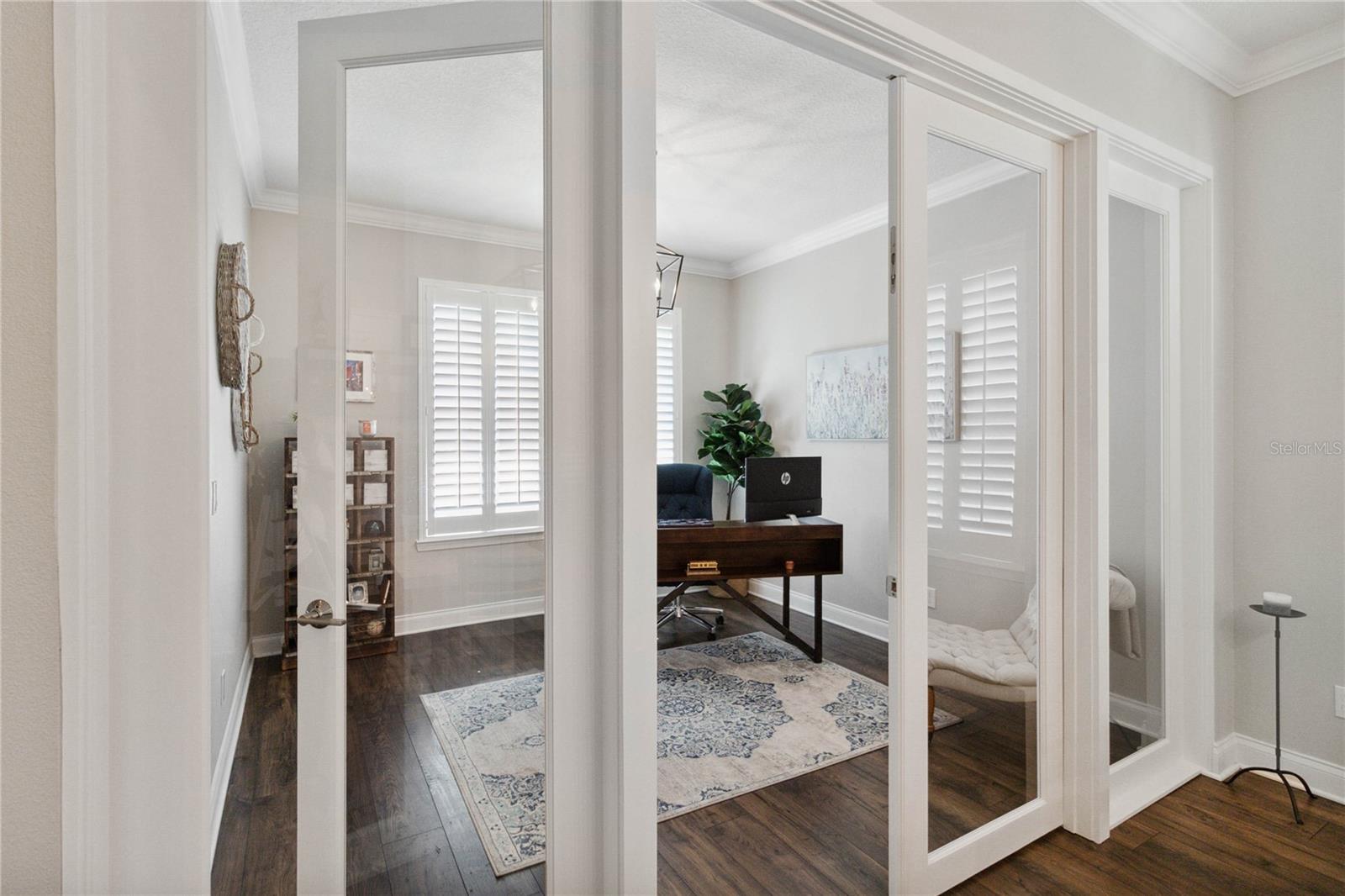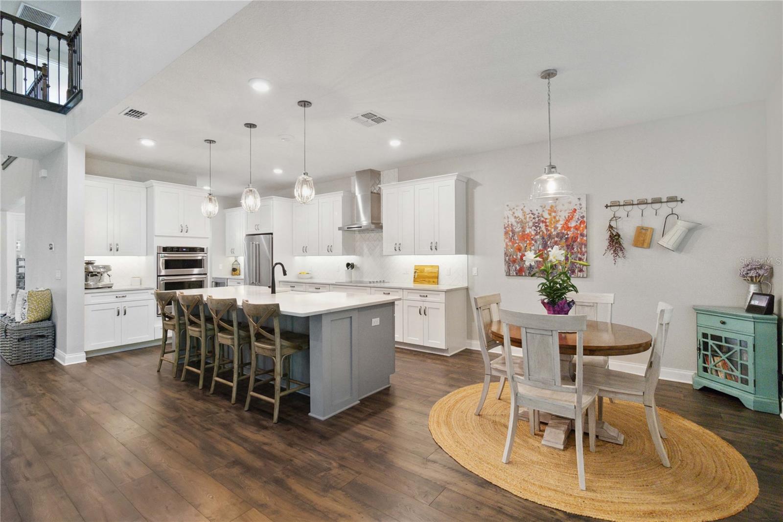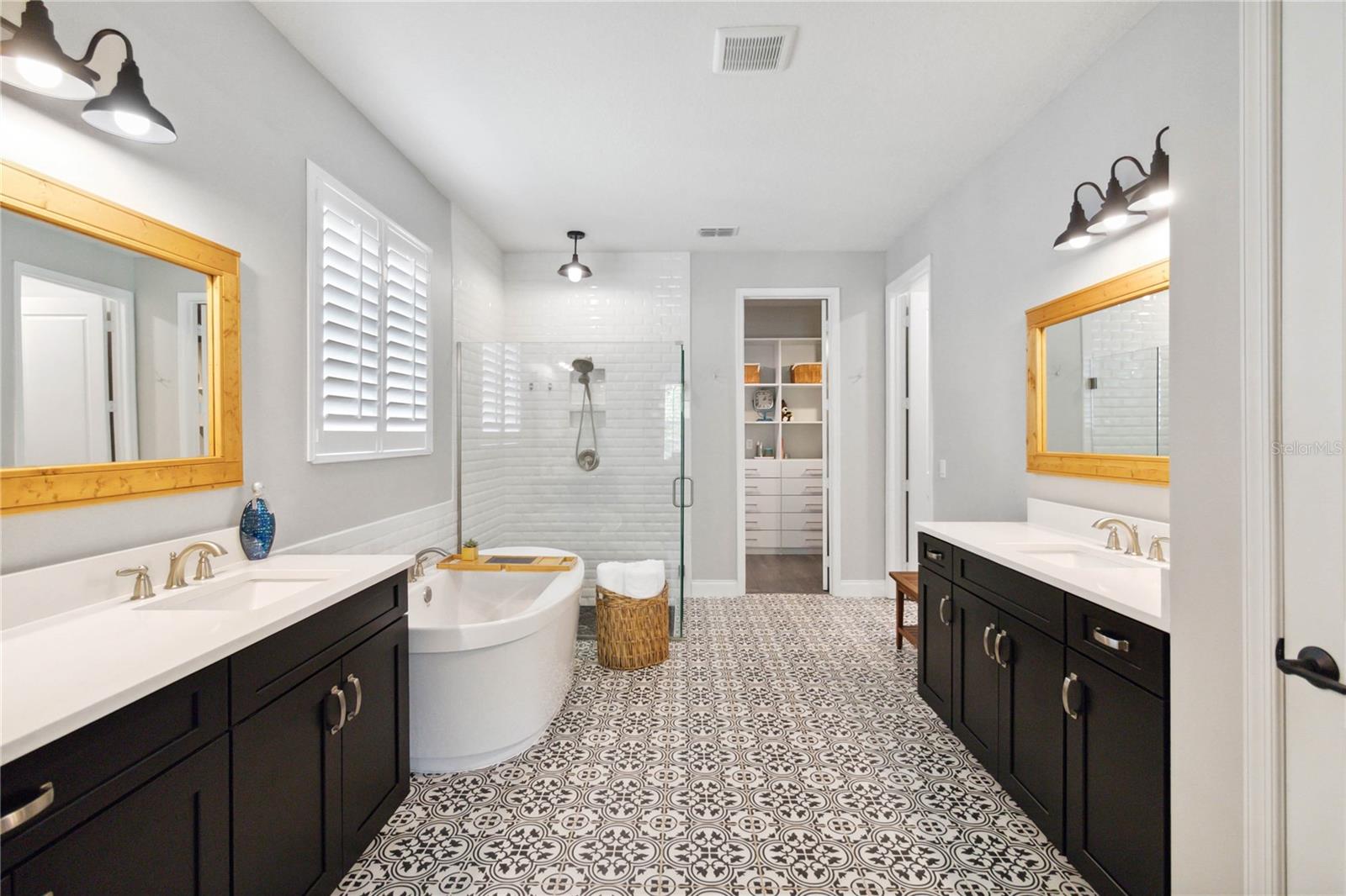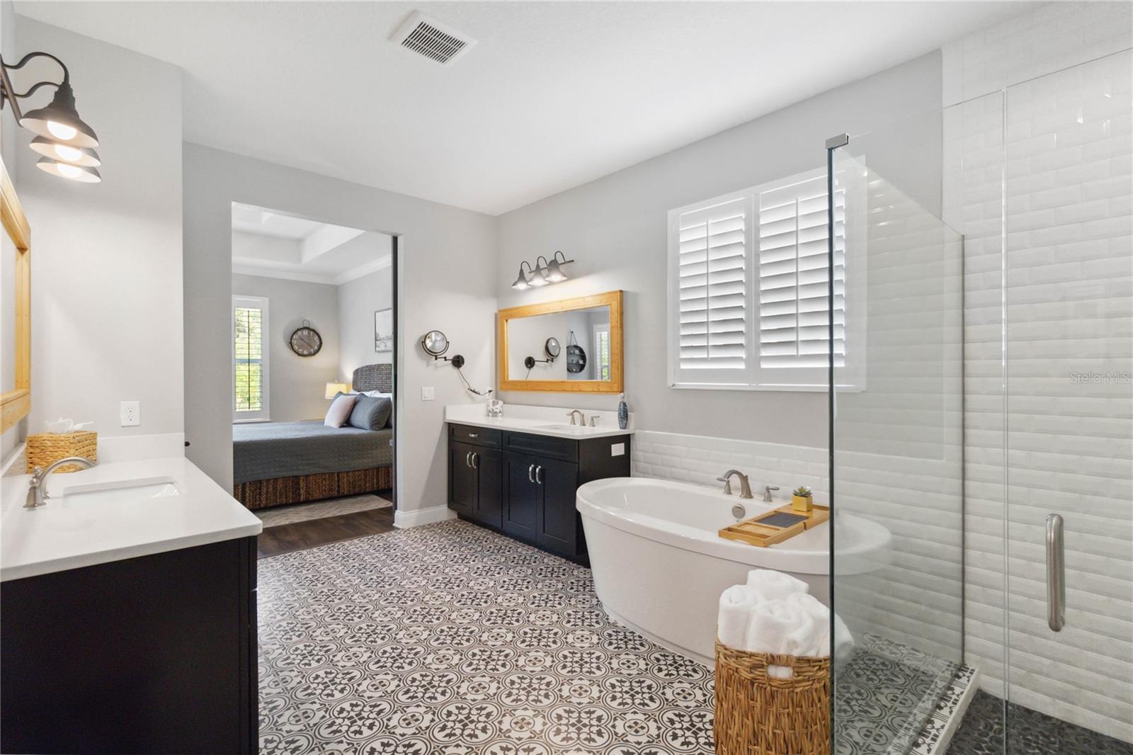 Assumable VA Loan at 2.75% interest! Step into luxury in this impeccably designed home, filled with high-end upgrades and smart home features. From the moment you arrive, the extended paver driveway, stone façade, and manicured landscaping set the stage for quality craftsmanship and stunning curb appeal. A welcoming front porch invites you in with charm and warmth. Located in the gated community of Belle Vie in Lake Nona, this home sits on just under a quarter-acre conservation lot, offering both privacy and peaceful natural views. Enjoy peace of mind with wired exterior cameras, a fenced backyard, a hurricane-rated garage door, Lorex smart doorbell, and a Rain Bird irrigation system keeping your home secure, private, and lush. Inside, the gourmet kitchen is a chef’s dream. Outfitted with KitchenAid appliances, a farmhouse sink, quartz countertops, convection wall oven and microwave, vented range hood, custom tile backsplash, under-cabinet lighting, and a butler’s pantry with a beverage fridge, it blends beauty with function. The home’s interior shines with engineered hardwood floors, plantation shutters, and crown molding in the office, dining room, and owner’s suite. A glass-enclosed office offers a bright, modern workspace with quiet seclusion—perfect for working from home. The main-level owner’s suite is a tranquil retreat featuring custom wood doors, built-in closet shelving, and luxurious comfort. Upstairs, a private en-suite bedroom is perfect for guests or multigenerational living. Entertainment is elevated in the dedicated theater room, complete with a surround sound system and elevated seating riser for a true cinematic experience. Efficiency and connectivity shine with two Carrier A/C units, Nest thermostats, a hybrid water heater, water softener, and a built-in On-Q® Smart Home Hub. Additional highlights include a coated garage floor, keypad garage entry, a laundry room with utility sink and upper cabinets, and thoughtfully placed power outlets in the pantry, closets, and linen storage areas for added convenience. Washer and dryer, bench, and tall planters in the front yard convey with the sale. Please note: Interior cameras and floor-mounted garage shelving do not convey. This home offers the perfect blend of luxury, comfort, smart living, and thoughtful detail—truly a one-of-a-kind property in a prime location. Don’t miss the opportunity to make it yours. Schedule your private showing today!