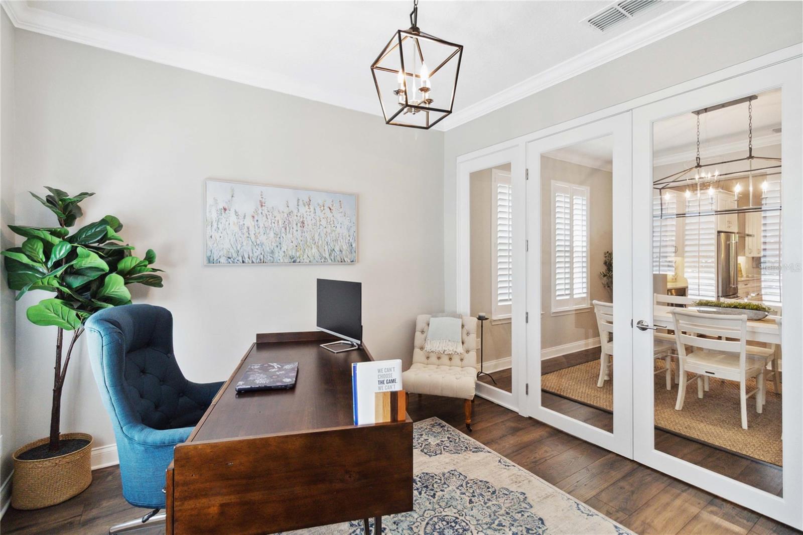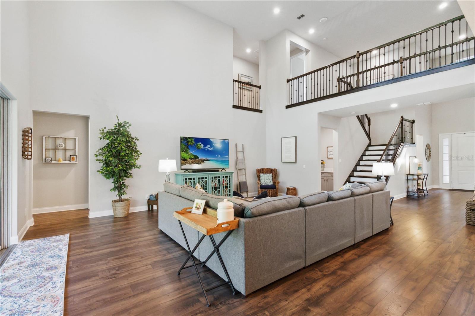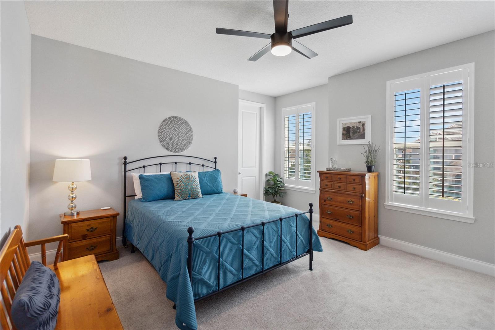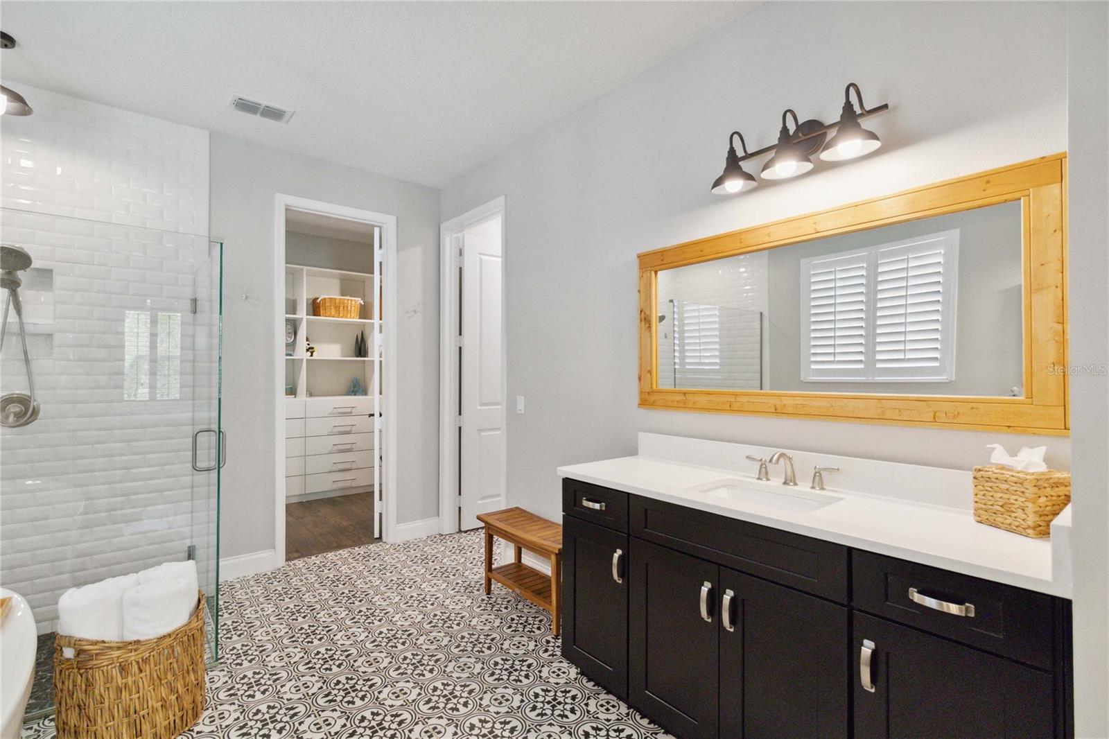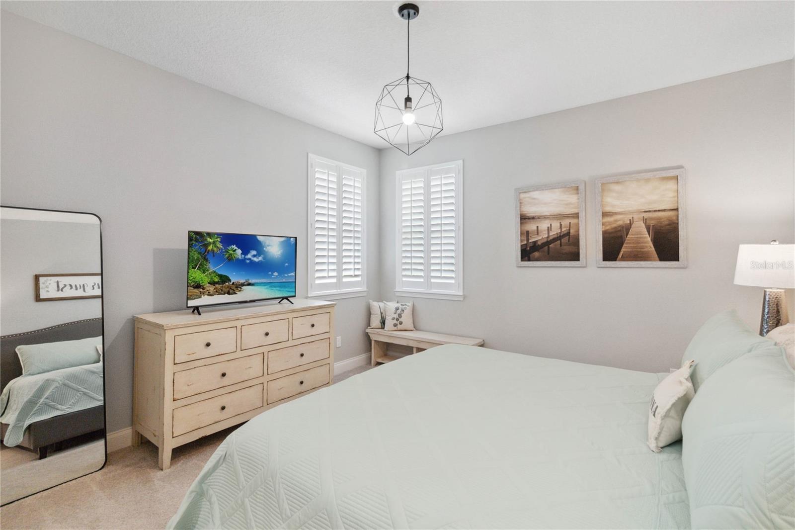 Assumable VA Loan at 2.75% interest! Step into luxury in this impeccably designed home, filled with high-end upgrades and smart home features. From the moment you arrive, the extended paver driveway, stone façade, and manicured landscaping set the stage for quality craftsmanship and stunning curb appeal. A welcoming front porch invites you in with charm and warmth. Located in the gated community of Belle Vie in Lake Nona, this home sits on just under a quarter-acre conservation lot, offering both privacy and peaceful natural views. Enjoy peace of mind with wired exterior cameras, a fenced backyard, a hurricane-rated garage door, Lorex smart doorbell, and a Rain Bird irrigation system keeping your home secure, private, and lush. Inside, the gourmet kitchen is a chef’s dream. Outfitted with KitchenAid appliances, a farmhouse sink, quartz countertops, convection wall oven and microwave, vented range hood, custom tile backsplash, under-cabinet lighting, and a butler’s pantry with a beverage fridge, it blends beauty with function. The home’s interior shines with engineered hardwood floors, plantation shutters, and crown molding in the office, dining room, and owner’s suite. A glass-enclosed office offers a bright, modern workspace with quiet seclusion—perfect for working from home. The main-level owner’s suite is a tranquil retreat featuring custom wood doors, built-in closet shelving, and luxurious comfort. Upstairs, a private en-suite bedroom is perfect for guests or multigenerational living. Entertainment is elevated in the dedicated theater room, complete with a surround sound system and elevated seating riser for a true cinematic experience. Efficiency and connectivity shine with two Carrier A/C units, Nest thermostats, a hybrid water heater, water softener, and a built-in On-Q® Smart Home Hub. Additional highlights include a coated garage floor, keypad garage entry, a laundry room with utility sink and upper cabinets, and thoughtfully placed power outlets in the pantry, closets, and linen storage areas for added convenience. Washer and dryer, bench, and tall planters in the front yard convey with the sale. Please note: Interior cameras and floor-mounted garage shelving do not convey. This home offers the perfect blend of luxury, comfort, smart living, and thoughtful detail—truly a one-of-a-kind property in a prime location. Don’t miss the opportunity to make it yours. Schedule your private showing today!