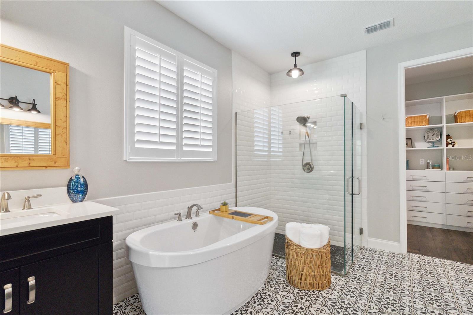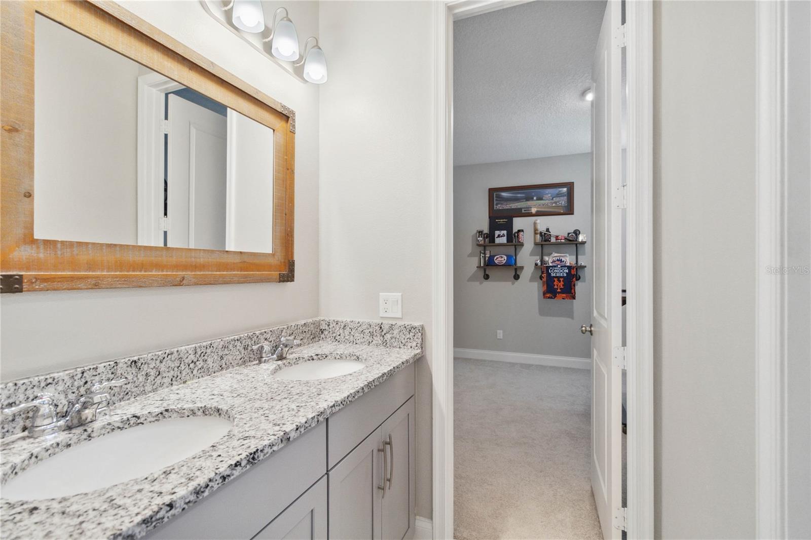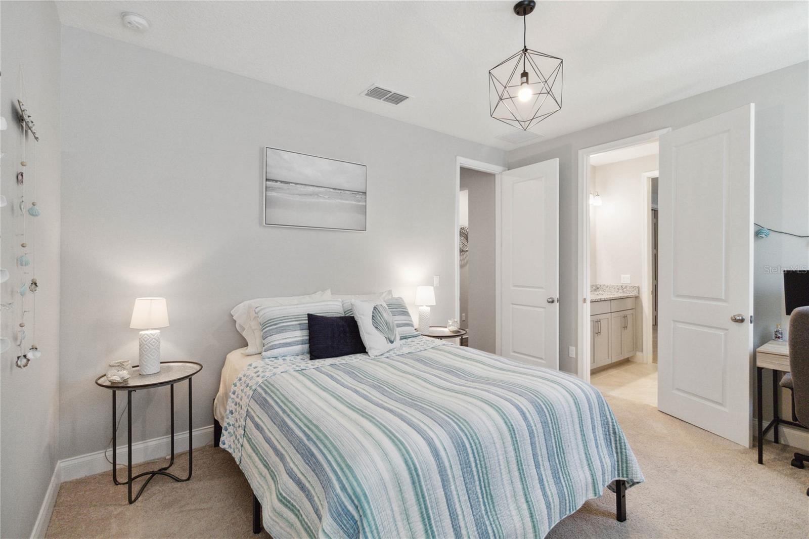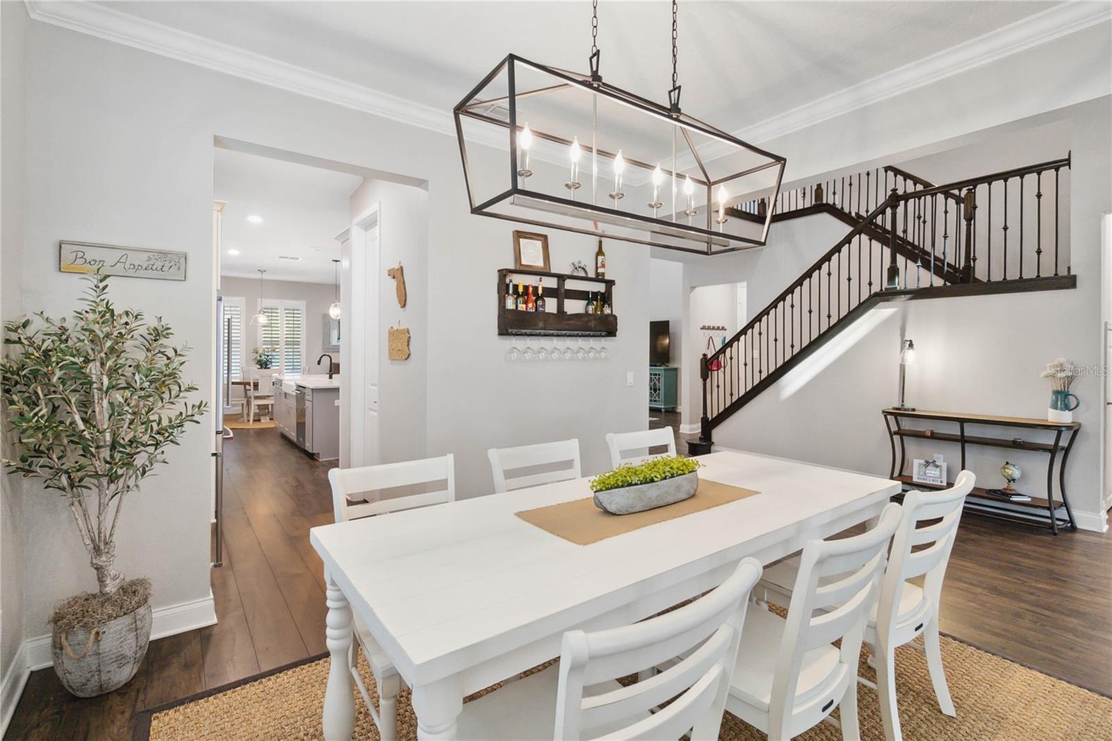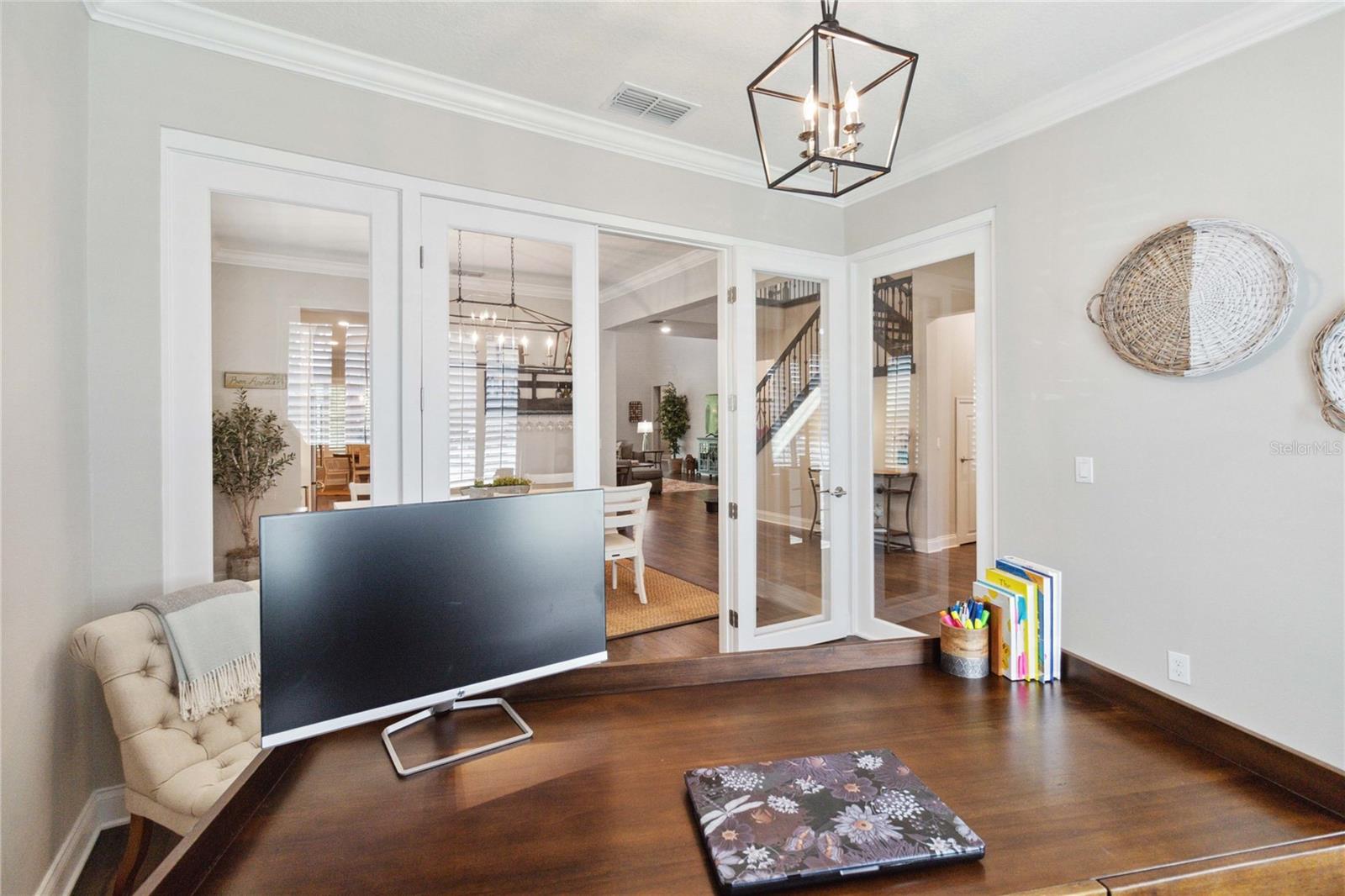 Assumable VA Loan at 2.75% interest! Step into luxury in this impeccably designed home, filled with high-end upgrades and smart home features. From the moment you arrive, the extended paver driveway, stone façade, and manicured landscaping set the stage for quality craftsmanship and stunning curb appeal. A welcoming front porch invites you in with charm and warmth. Located in the gated community of Belle Vie in Lake Nona, this home sits on just under a quarter-acre conservation lot, offering both privacy and peaceful natural views. Enjoy peace of mind with wired exterior cameras, a fenced backyard, a hurricane-rated garage door, Lorex smart doorbell, and a Rain Bird irrigation system keeping your home secure, private, and lush. Inside, the gourmet kitchen is a chef’s dream. Outfitted with KitchenAid appliances, a farmhouse sink, quartz countertops, convection wall oven and microwave, vented range hood, custom tile backsplash, under-cabinet lighting, and a butler’s pantry with a beverage fridge, it blends beauty with function. The home’s interior shines with engineered hardwood floors, plantation shutters, and crown molding in the office, dining room, and owner’s suite. A glass-enclosed office offers a bright, modern workspace with quiet seclusion—perfect for working from home. The main-level owner’s suite is a tranquil retreat featuring custom wood doors, built-in closet shelving, and luxurious comfort. Upstairs, a private en-suite bedroom is perfect for guests or multigenerational living. Entertainment is elevated in the dedicated theater room, complete with a surround sound system and elevated seating riser for a true cinematic experience. Efficiency and connectivity shine with two Carrier A/C units, Nest thermostats, a hybrid water heater, water softener, and a built-in On-Q® Smart Home Hub. Additional highlights include a coated garage floor, keypad garage entry, a laundry room with utility sink and upper cabinets, and thoughtfully placed power outlets in the pantry, closets, and linen storage areas for added convenience. Washer and dryer, bench, and tall planters in the front yard convey with the sale. Please note: Interior cameras and floor-mounted garage shelving do not convey. This home offers the perfect blend of luxury, comfort, smart living, and thoughtful detail—truly a one-of-a-kind property in a prime location. Don’t miss the opportunity to make it yours. Schedule your private showing today!