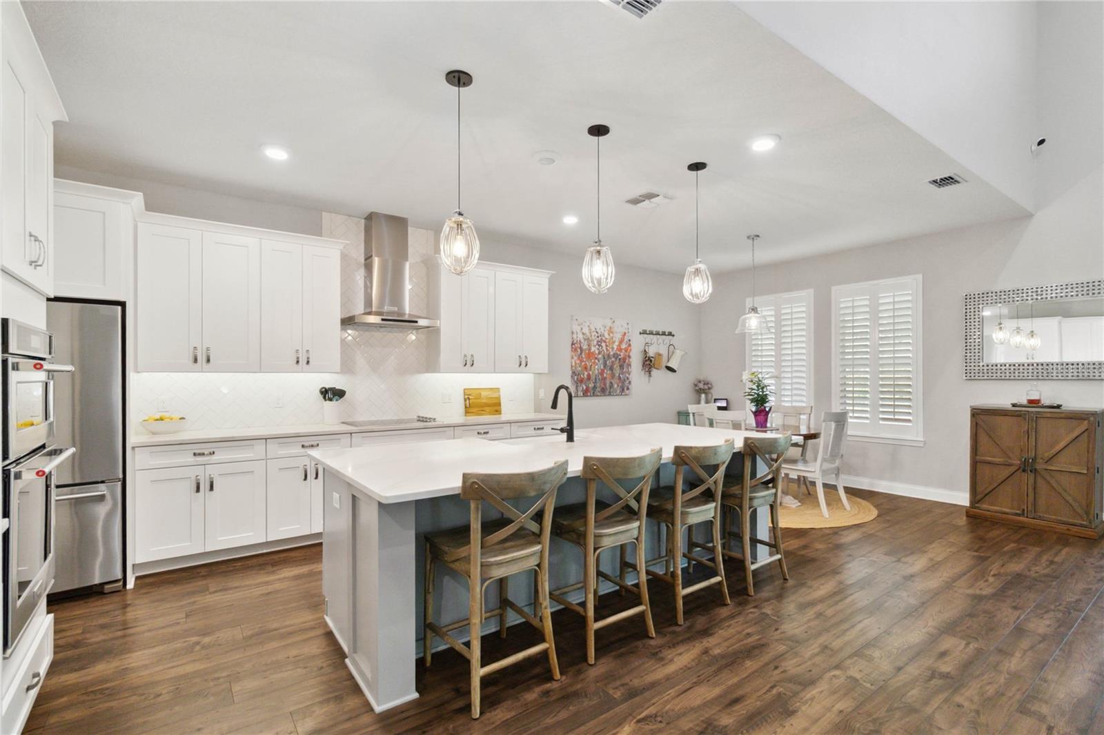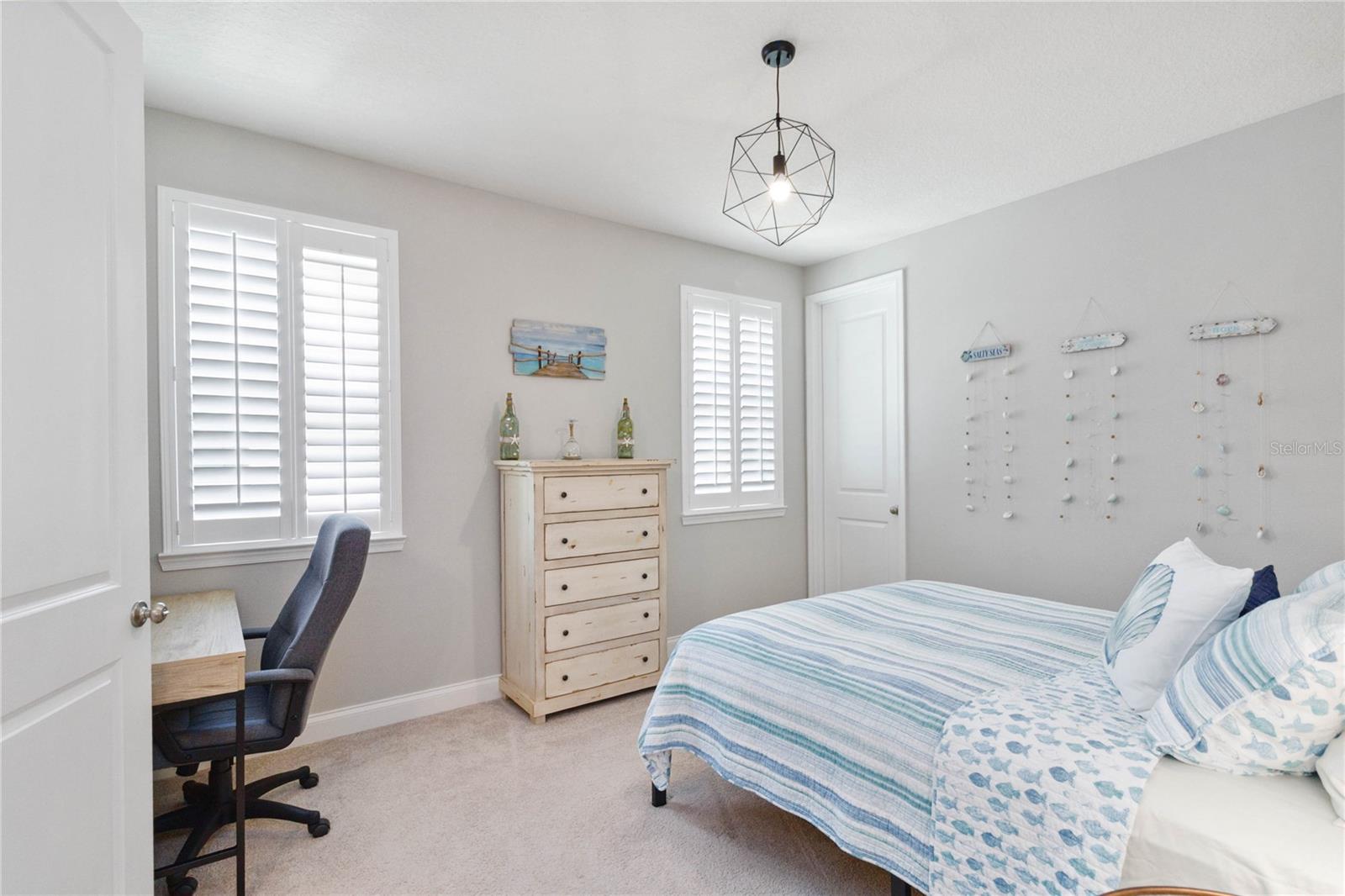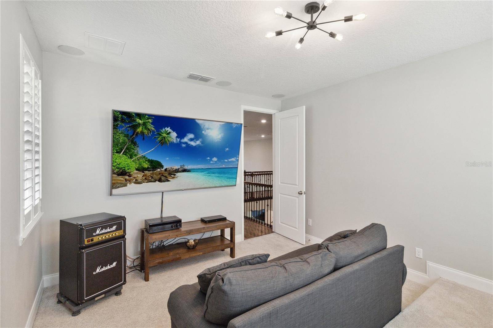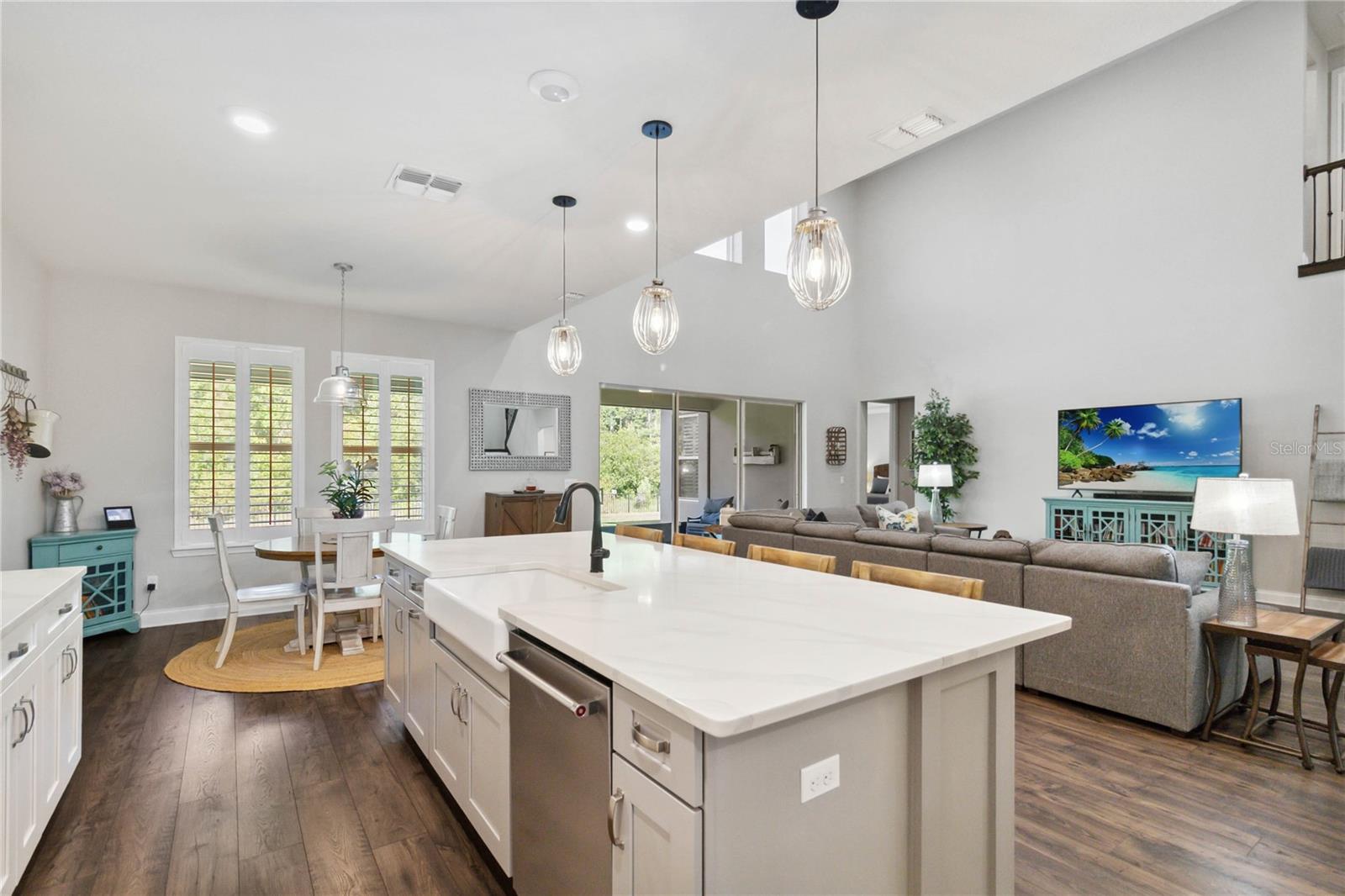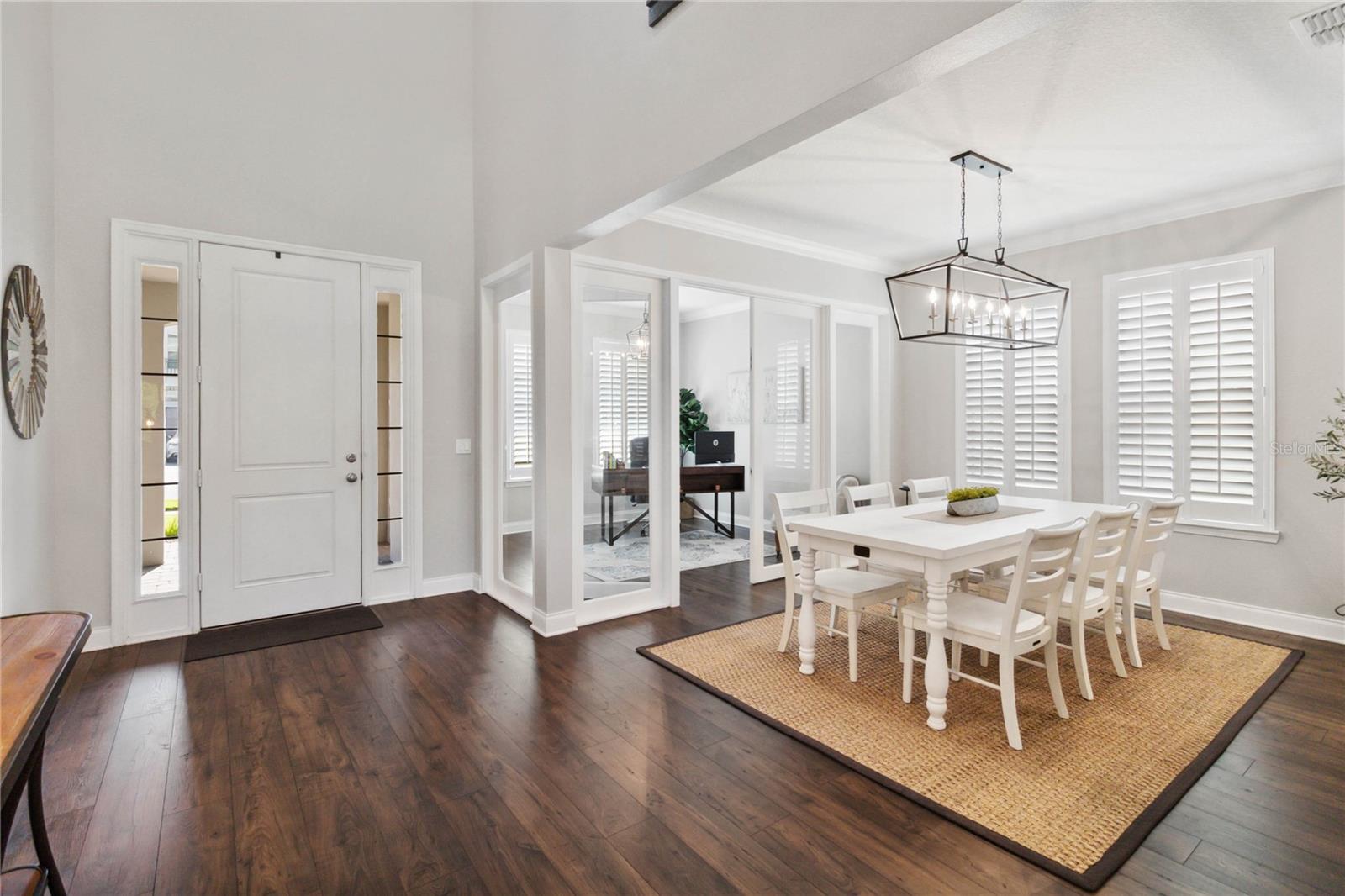 Assumable VA Loan at 2.75% interest! Step into luxury in this impeccably designed home, filled with high-end upgrades and smart home features. From the moment you arrive, the extended paver driveway, stone façade, and manicured landscaping set the stage for quality craftsmanship and stunning curb appeal. A welcoming front porch invites you in with charm and warmth. Located in the gated community of Belle Vie in Lake Nona, this home sits on just under a quarter-acre conservation lot, offering both privacy and peaceful natural views. Enjoy peace of mind with wired exterior cameras, a fenced backyard, a hurricane-rated garage door, Lorex smart doorbell, and a Rain Bird irrigation system keeping your home secure, private, and lush. Inside, the gourmet kitchen is a chef’s dream. Outfitted with KitchenAid appliances, a farmhouse sink, quartz countertops, convection wall oven and microwave, vented range hood, custom tile backsplash, under-cabinet lighting, and a butler’s pantry with a beverage fridge, it blends beauty with function. The home’s interior shines with engineered hardwood floors, plantation shutters, and crown molding in the office, dining room, and owner’s suite. A glass-enclosed office offers a bright, modern workspace with quiet seclusion—perfect for working from home. The main-level owner’s suite is a tranquil retreat featuring custom wood doors, built-in closet shelving, and luxurious comfort. Upstairs, a private en-suite bedroom is perfect for guests or multigenerational living. Entertainment is elevated in the dedicated theater room, complete with a surround sound system and elevated seating riser for a true cinematic experience. Efficiency and connectivity shine with two Carrier A/C units, Nest thermostats, a hybrid water heater, water softener, and a built-in On-Q® Smart Home Hub. Additional highlights include a coated garage floor, keypad garage entry, a laundry room with utility sink and upper cabinets, and thoughtfully placed power outlets in the pantry, closets, and linen storage areas for added convenience. Washer and dryer, bench, and tall planters in the front yard convey with the sale. Please note: Interior cameras and floor-mounted garage shelving do not convey. This home offers the perfect blend of luxury, comfort, smart living, and thoughtful detail—truly a one-of-a-kind property in a prime location. Don’t miss the opportunity to make it yours. Schedule your private showing today!