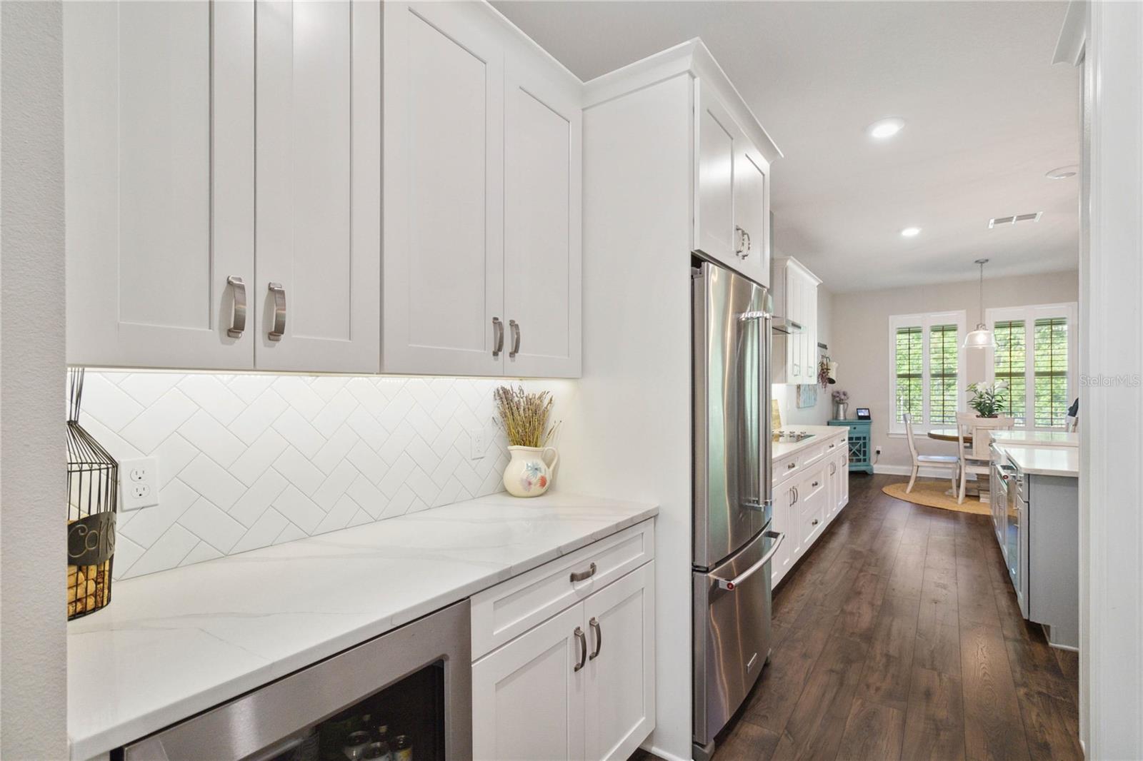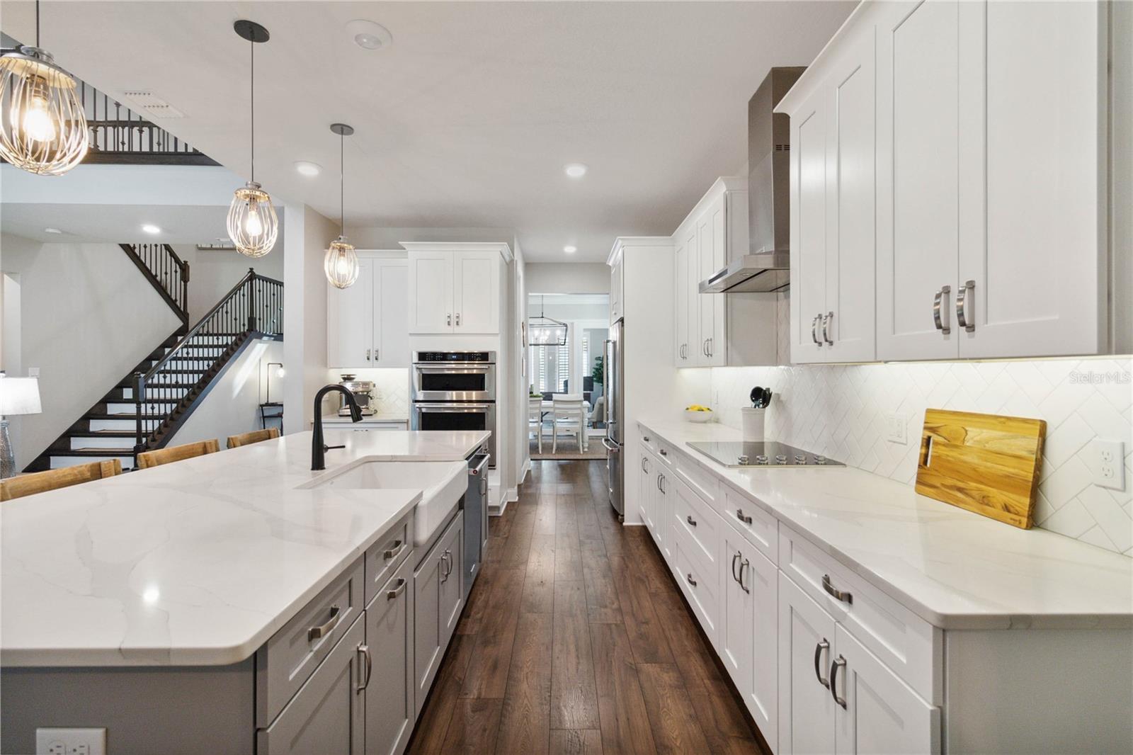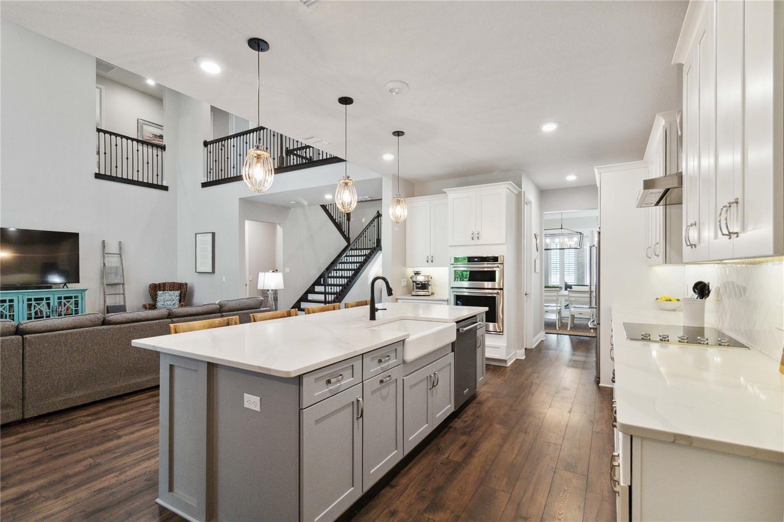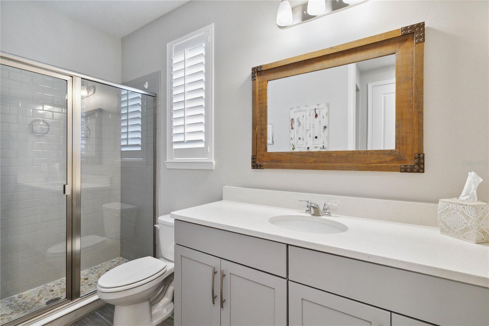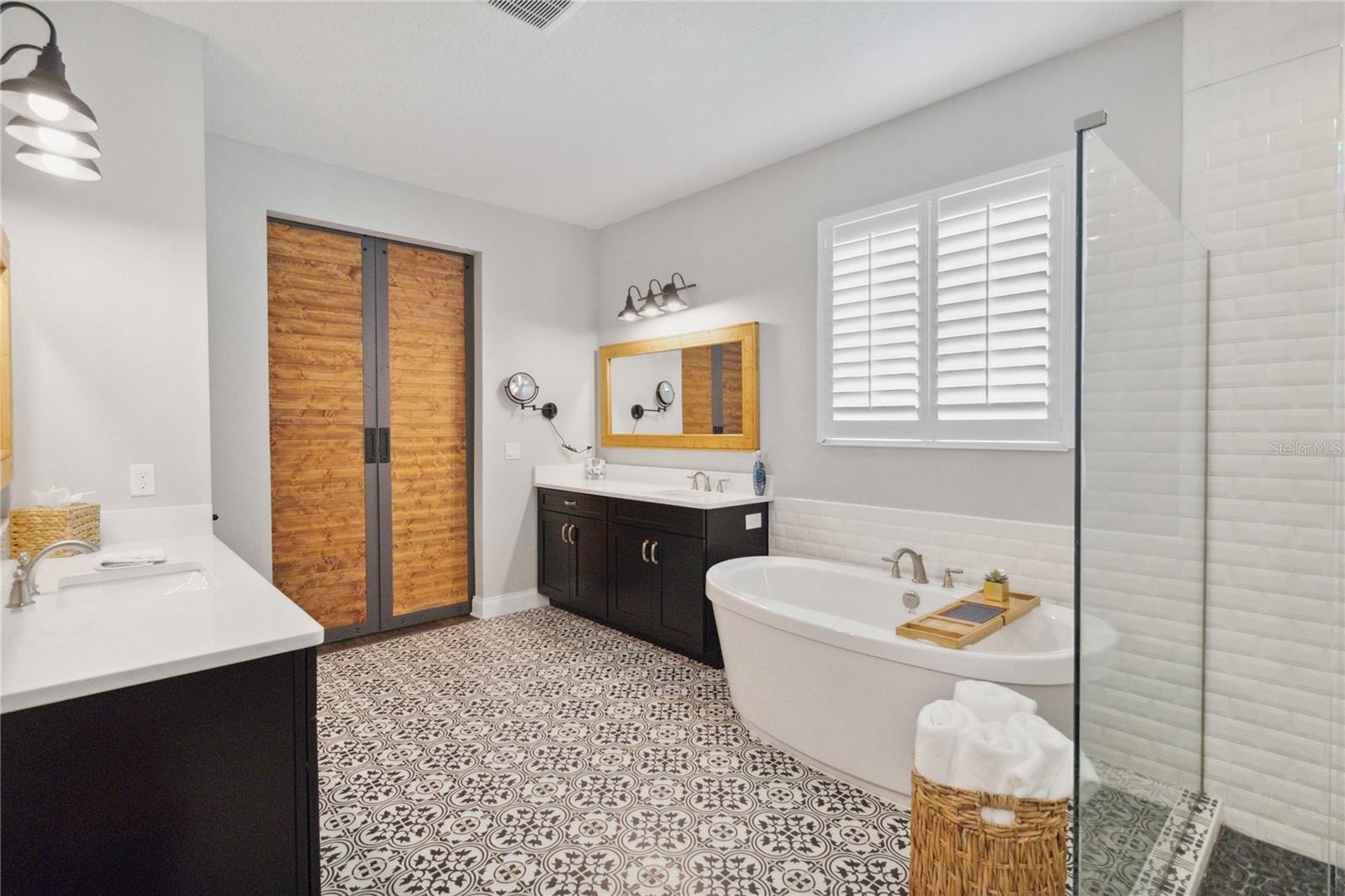 Assumable VA Loan at 2.75% interest! Step into luxury in this impeccably designed home, filled with high-end upgrades and smart home features. From the moment you arrive, the extended paver driveway, stone façade, and manicured landscaping set the stage for quality craftsmanship and stunning curb appeal. A welcoming front porch invites you in with charm and warmth. Located in the gated community of Belle Vie in Lake Nona, this home sits on just under a quarter-acre conservation lot, offering both privacy and peaceful natural views. Enjoy peace of mind with wired exterior cameras, a fenced backyard, a hurricane-rated garage door, Lorex smart doorbell, and a Rain Bird irrigation system keeping your home secure, private, and lush. Inside, the gourmet kitchen is a chef’s dream. Outfitted with KitchenAid appliances, a farmhouse sink, quartz countertops, convection wall oven and microwave, vented range hood, custom tile backsplash, under-cabinet lighting, and a butler’s pantry with a beverage fridge, it blends beauty with function. The home’s interior shines with engineered hardwood floors, plantation shutters, and crown molding in the office, dining room, and owner’s suite. A glass-enclosed office offers a bright, modern workspace with quiet seclusion—perfect for working from home. The main-level owner’s suite is a tranquil retreat featuring custom wood doors, built-in closet shelving, and luxurious comfort. Upstairs, a private en-suite bedroom is perfect for guests or multigenerational living. Entertainment is elevated in the dedicated theater room, complete with a surround sound system and elevated seating riser for a true cinematic experience. Efficiency and connectivity shine with two Carrier A/C units, Nest thermostats, a hybrid water heater, water softener, and a built-in On-Q® Smart Home Hub. Additional highlights include a coated garage floor, keypad garage entry, a laundry room with utility sink and upper cabinets, and thoughtfully placed power outlets in the pantry, closets, and linen storage areas for added convenience. Washer and dryer, bench, and tall planters in the front yard convey with the sale. Please note: Interior cameras and floor-mounted garage shelving do not convey. This home offers the perfect blend of luxury, comfort, smart living, and thoughtful detail—truly a one-of-a-kind property in a prime location. Don’t miss the opportunity to make it yours. Schedule your private showing today!