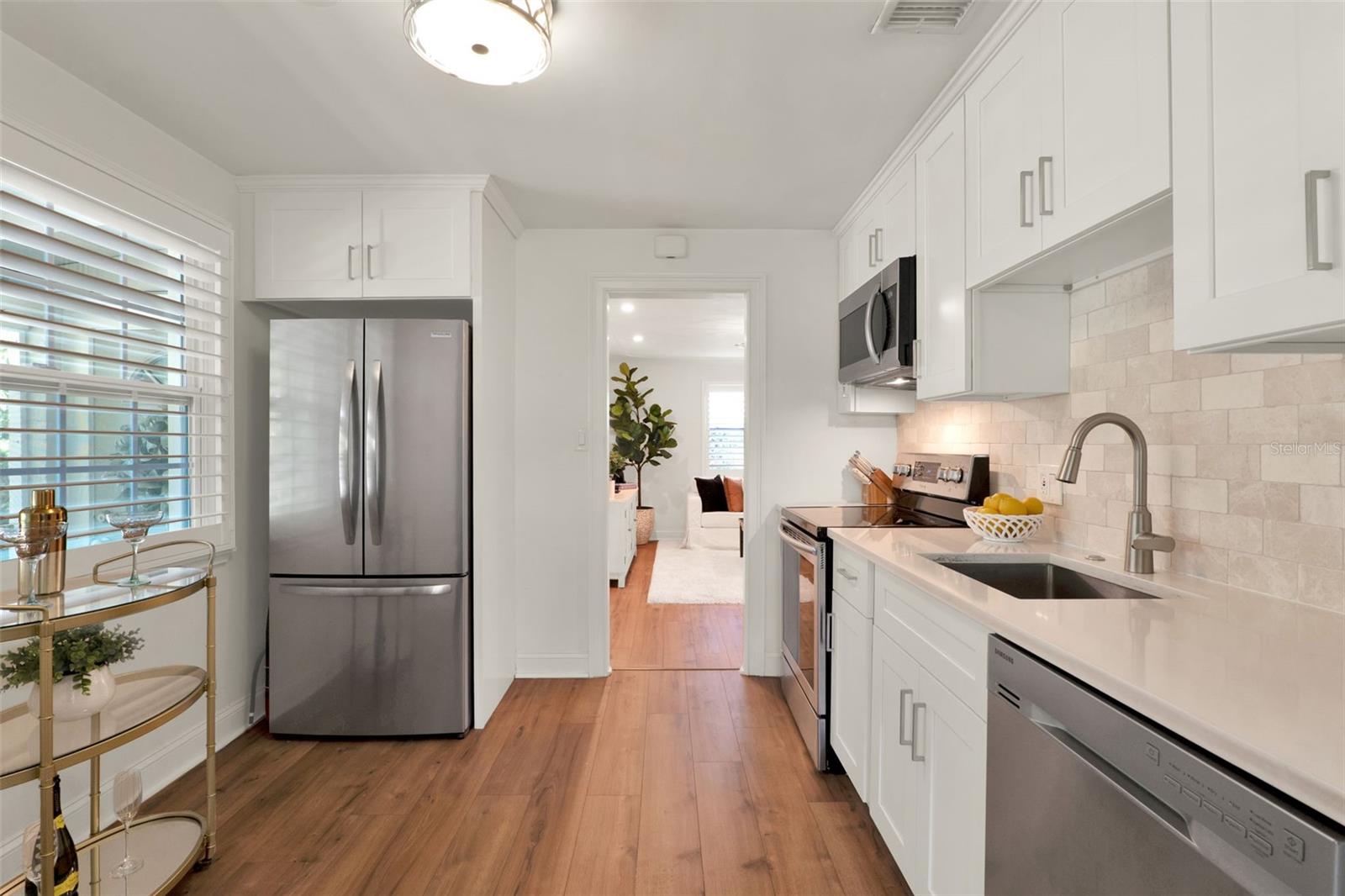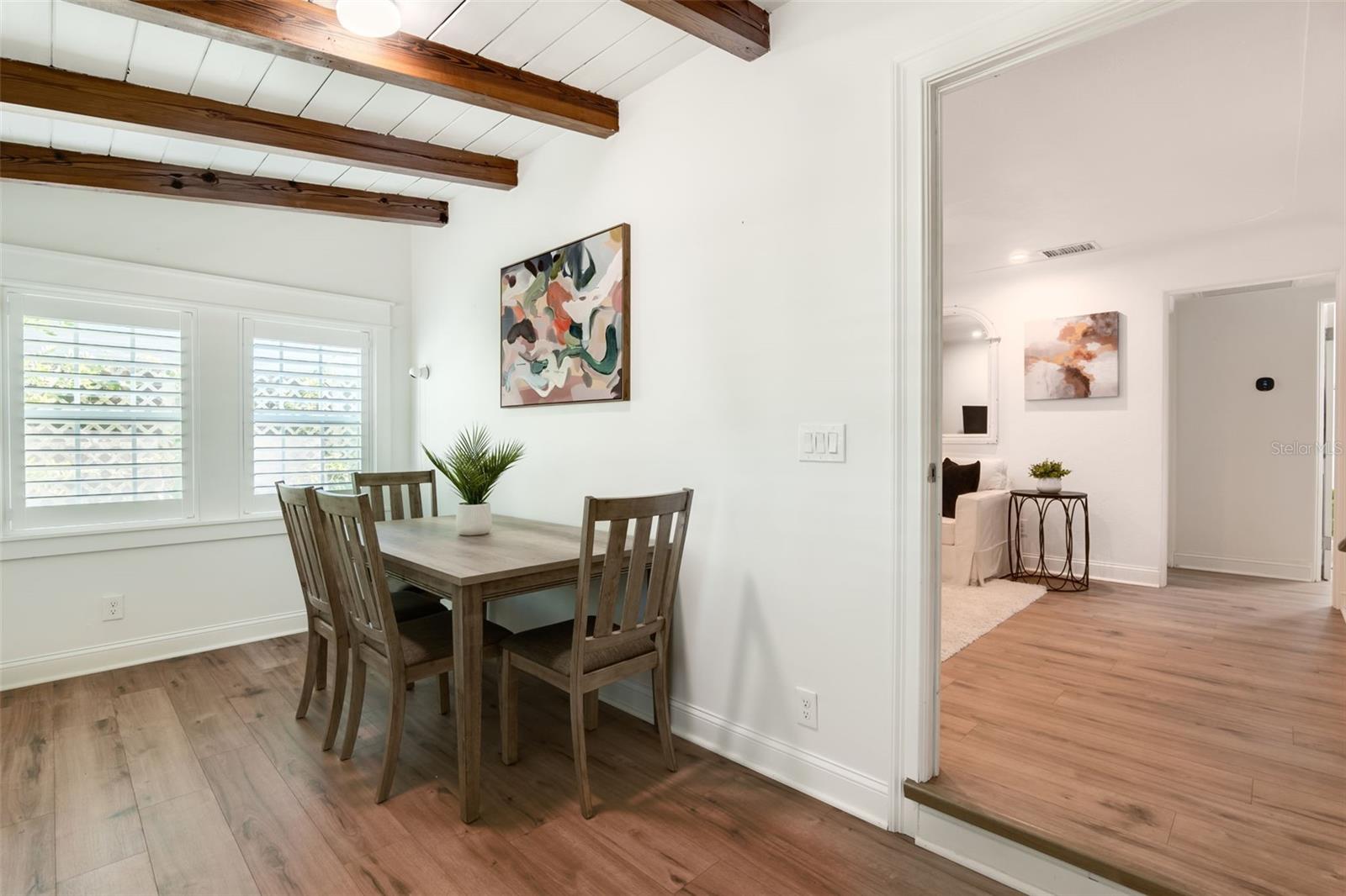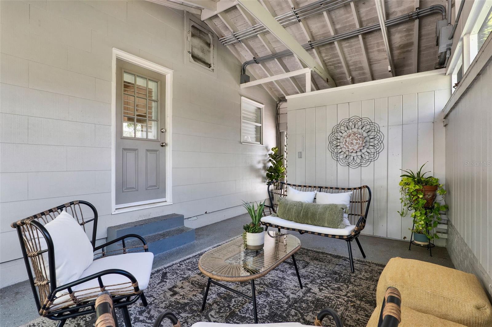 BEAUTIFULLY REMODELED! NEW ROOF, NEW GUTTERS, NEW FENCE, and NEW HOT WATER HEATER ALL IN 2024!! Your URBAN OASIS Awaits! Discover the Charm and Modern Flair of this Milk District Bungalow! This beautifully renovated 2-bedroom, 1-bath bungalow seamlessly blends classic 1950s charm with stylish modern updates, offering the perfect Orlando indoor outdoor lifestyle. Enjoy worry-free living knowing this home boasts significant 2024 upgrades, including a BRAND NEW ROOF, NEW GUTTERS, and a NEW WATER HEATER. Prepare to be impressed by the meticulously remodeled interior. A stunning new kitchen, features sleek white shaker cabinetry, elegant quartz countertops, gleaming stainless steel appliances, brushed nickel hardware, and a convenient built-in pantry. New luxury vinyl wood plank flooring flows throughout the home, complemented by fresh, neutral interior paint, creating a bright and airy atmosphere. Plantation shutters throughout add a touch of privacy and timeless elegance. Thoughtfully designed custom closet systems maximize storage in every room. Enjoy the added convenience of an indoor laundry area tucked neatly in the hallway near the bedrooms and bathroom. The spacious bedrooms offer comfortable retreats, while the dedicated dining room, with its striking vaulted ceilings and exposed wood beams, provides a charming space for meals and gatherings, overlooking the welcoming front yard. Sunlight streams through the home, creating an open and inviting ambiance that effortlessly connects the kitchen, living room, dining area, bedrooms, and bathroom. Prepare to fall in love with the exceptional outdoor living areas! The screened-in carport and front walkway transform into a serene and versatile outdoor sanctuary. Imagine enchanting evenings under strings of lights, peaceful mornings with your coffee, or relaxing after work with your favorite book or TV show. This flexible space is also perfect for a ping pong table or a cozy propane fire pit setup. Adding to the convenience is a 6’x7’ storage or workshop area complete with additional washer/dryer hook-ups. From the screened-in patio, step into a large, fully fenced backyard – a true blank canvas for your outdoor aspirations! Picture hosting unforgettable gatherings, designing your dream garden, adding a sparkling pool, creating a cozy fire pit area, or setting up a fun play space. Recent enhancements include a new vinyl fence, a charming pavered patio and a chair swing out of storybooks. Beyond the white vinyl fence lies an additional, fully fenced parcel of land with its own garden shed that is also part of this property! This prime location puts you in the center of it all! Enjoy easy access to the vibrant Milk District, the iconic Lake Eola, Thornton Park, and the renowned Dr. Phillips Center. Indulge in a diverse array of dining, shopping, and entertainment options, with convenient access to I-4 and the 408. This rapidly developing neighborhood, with exciting new construction underway, presents a fantastic investment opportunity. Don't miss your chance to own this exceptional Orlando gem! Schedule your private showing today and experience the perfect blend of charm, modern living, and an unbeatable location! Virtual Tour: https://media.devoredesign.com/videos/0196451d-af06-7385-83a7-30b01a045673