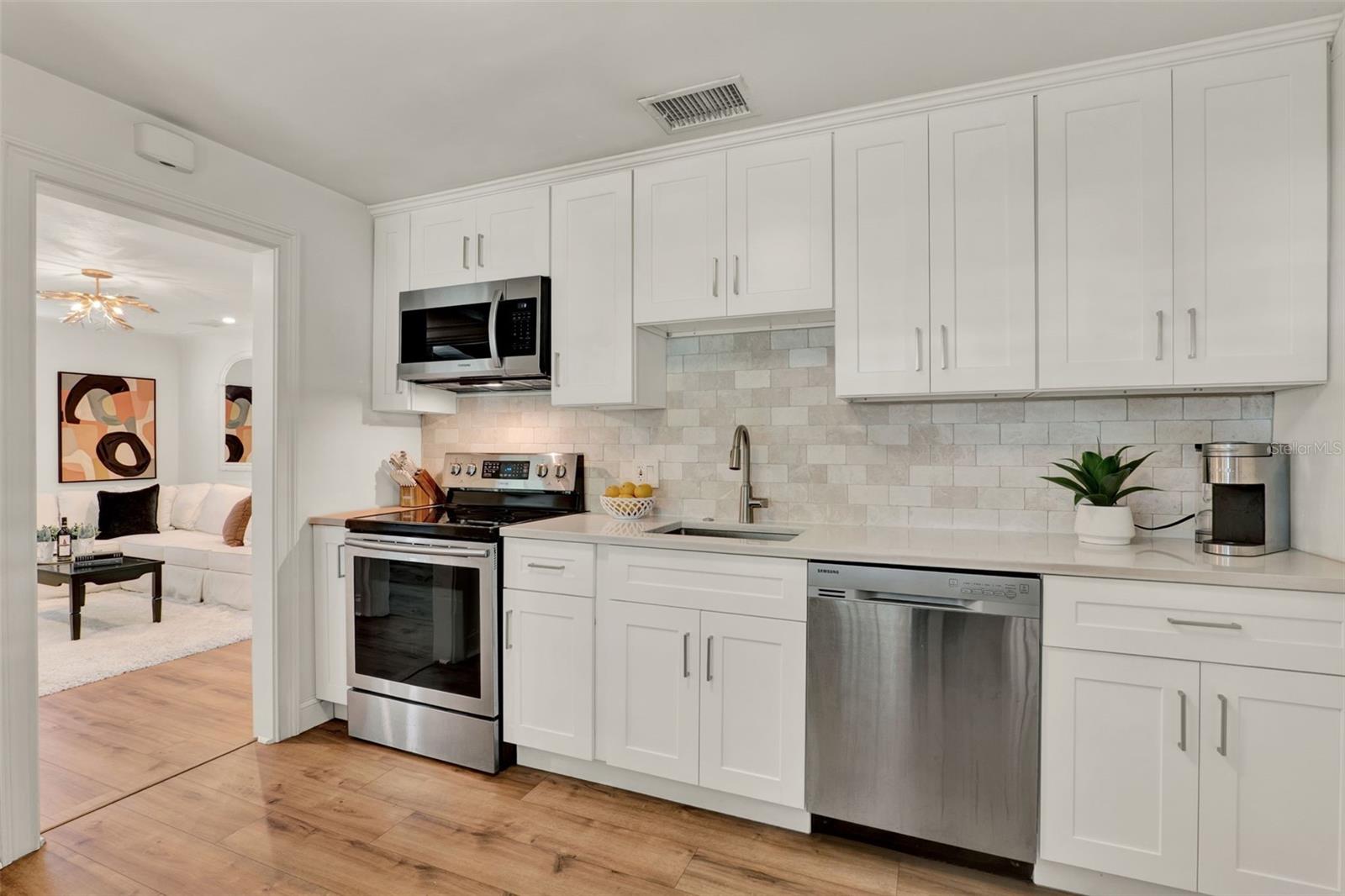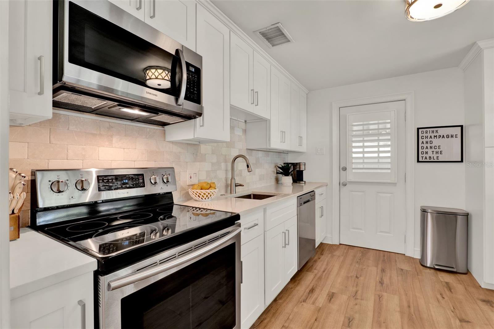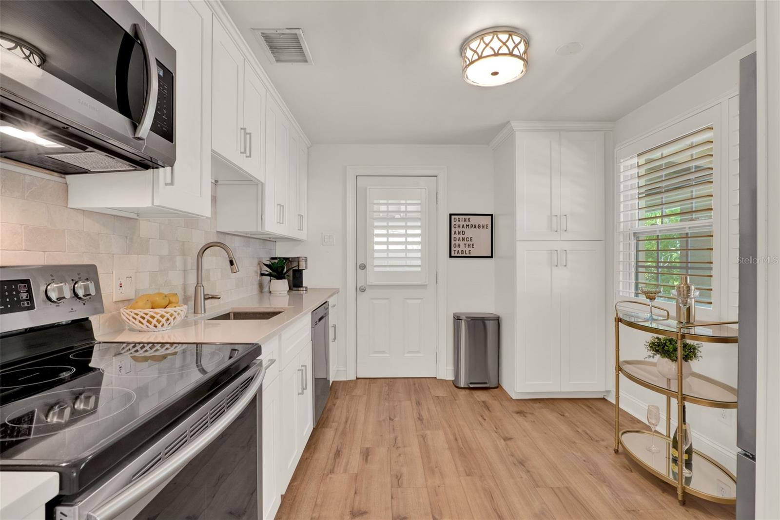 BEAUTIFULLY REMODELED! NEW ROOF, NEW GUTTERS, NEW FENCE, and NEW HOT WATER HEATER ALL IN 2024!! Your URBAN OASIS Awaits! Discover the Charm and Modern Flair of this Milk District Bungalow! This beautifully renovated 2-bedroom, 1-bath bungalow seamlessly blends classic 1950s charm with stylish modern updates, offering the perfect Orlando indoor outdoor lifestyle. Enjoy worry-free living knowing this home boasts significant 2024 upgrades, including a BRAND NEW ROOF, NEW GUTTERS, and a NEW WATER HEATER. Prepare to be impressed by the meticulously remodeled interior. A stunning new kitchen, features sleek white shaker cabinetry, elegant quartz countertops, gleaming stainless steel appliances, brushed nickel hardware, and a convenient built-in pantry. New luxury vinyl wood plank flooring flows throughout the home, complemented by fresh, neutral interior paint, creating a bright and airy atmosphere. Plantation shutters throughout add a touch of privacy and timeless elegance. Thoughtfully designed custom closet systems maximize storage in every room. Enjoy the added convenience of an indoor laundry area tucked neatly in the hallway near the bedrooms and bathroom. The spacious bedrooms offer comfortable retreats, while the dedicated dining room, with its striking vaulted ceilings and exposed wood beams, provides a charming space for meals and gatherings, overlooking the welcoming front yard. Sunlight streams through the home, creating an open and inviting ambiance that effortlessly connects the kitchen, living room, dining area, bedrooms, and bathroom. Prepare to fall in love with the exceptional outdoor living areas! The screened-in carport and front walkway transform into a serene and versatile outdoor sanctuary. Imagine enchanting evenings under strings of lights, peaceful mornings with your coffee, or relaxing after work with your favorite book or TV show. This flexible space is also perfect for a ping pong table or a cozy propane fire pit setup. Adding to the convenience is a 6’x7’ storage or workshop area complete with additional washer/dryer hook-ups. From the screened-in patio, step into a large, fully fenced backyard – a true blank canvas for your outdoor aspirations! Picture hosting unforgettable gatherings, designing your dream garden, adding a sparkling pool, creating a cozy fire pit area, or setting up a fun play space. Recent enhancements include a new vinyl fence, a charming pavered patio and a chair swing out of storybooks. Beyond the white vinyl fence lies an additional, fully fenced parcel of land with its own garden shed that is also part of this property! This prime location puts you in the center of it all! Enjoy easy access to the vibrant Milk District, the iconic Lake Eola, Thornton Park, and the renowned Dr. Phillips Center. Indulge in a diverse array of dining, shopping, and entertainment options, with convenient access to I-4 and the 408. This rapidly developing neighborhood, with exciting new construction underway, presents a fantastic investment opportunity. Don't miss your chance to own this exceptional Orlando gem! Schedule your private showing today and experience the perfect blend of charm, modern living, and an unbeatable location! Virtual Tour: https://media.devoredesign.com/videos/0196451d-af06-7385-83a7-30b01a045673