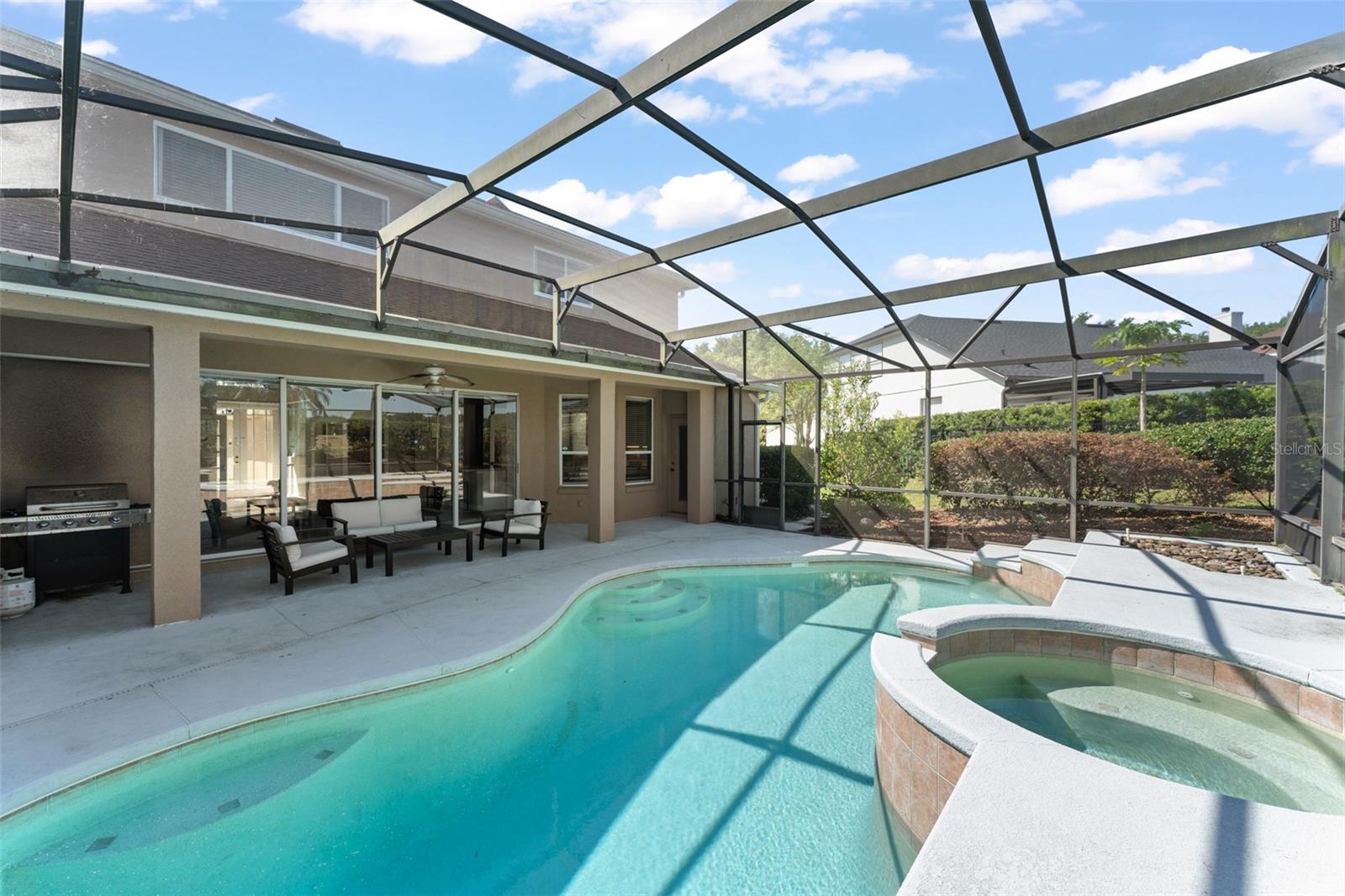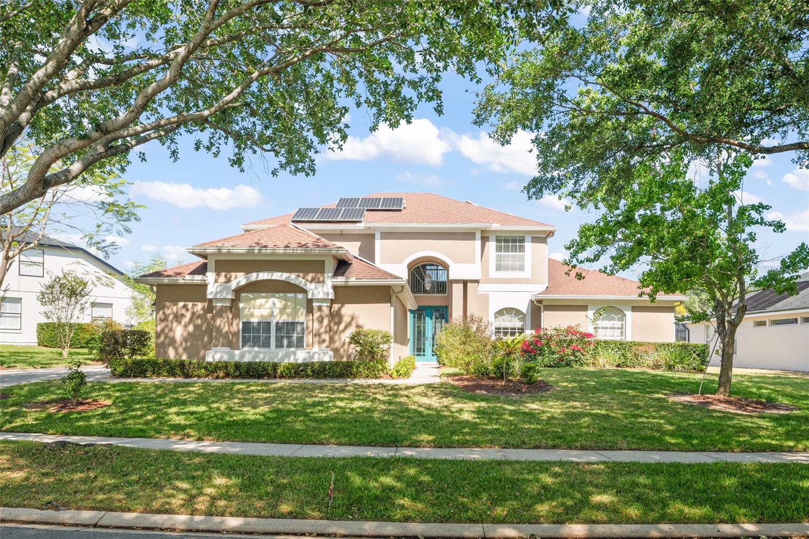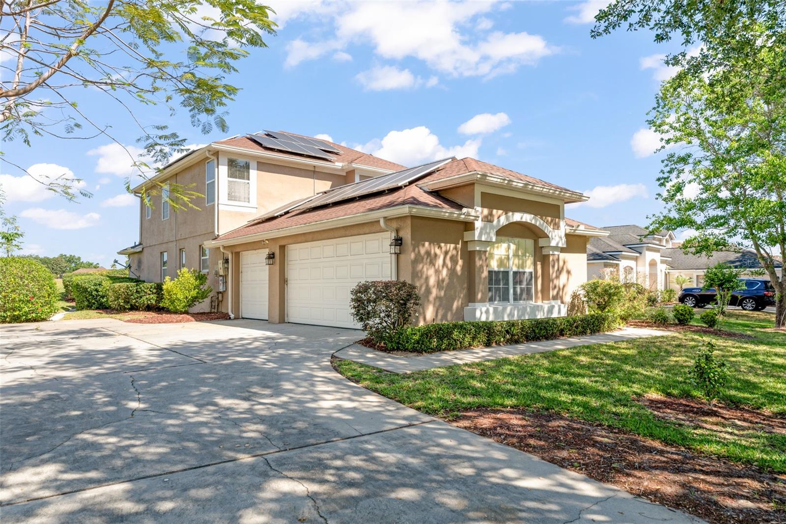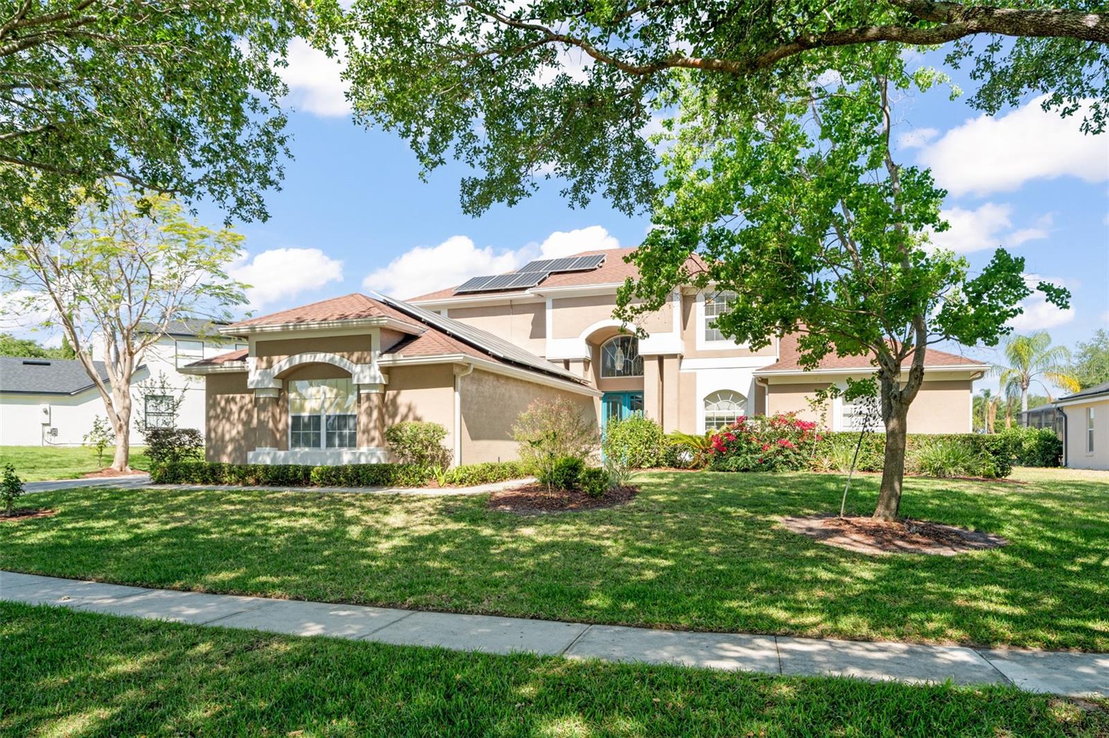 Exceptional opportunity to move right into a SOLAR 5-bedroom executive home with screened pool and spa, no rear neighbors, and walking distance to top-rated Windy Ridge K-8, within the gates of Westminster Landing. Be impressed with a refreshingly bright and open great room with double sliders revealing a screened lanai and refreshing pool. The spacious kitchen with white cabinets and stone counters plus island and breakfast nook are the perfect setting for everyday gatherings. The first-floor primary retreat is generous in size with direct access to the pool and an expansive master bath with double vanities, garden tub, separate shower, and walk-in closet. Two additional rooms on the first floor are located adjacent to the family room and include an office/den and music room or living room. All secondary bedrooms are upstairs and open to a large bonus room or second family room. Summer entertaining is a breeze on the patio deck with room for outdoor seating, BBQ, and a separate pool bath. Open space behind the home offers privacy with no rear neighbors and plenty of space for kids to play. Years of trouble-free living with NEW A/C, NEW DISHWASHER, NEW WATER HEATER, NEW POOL PUMP! Plus a 3-car garage! Westminster Landing is one of the area’s most sought-after neighborhoods with gated security, on-site tennis courts, playground, open fields, and a private community-only walkway to Windy Ridge (K-8). Solar system ensures minimal power bills and rock bottom operating expenses!