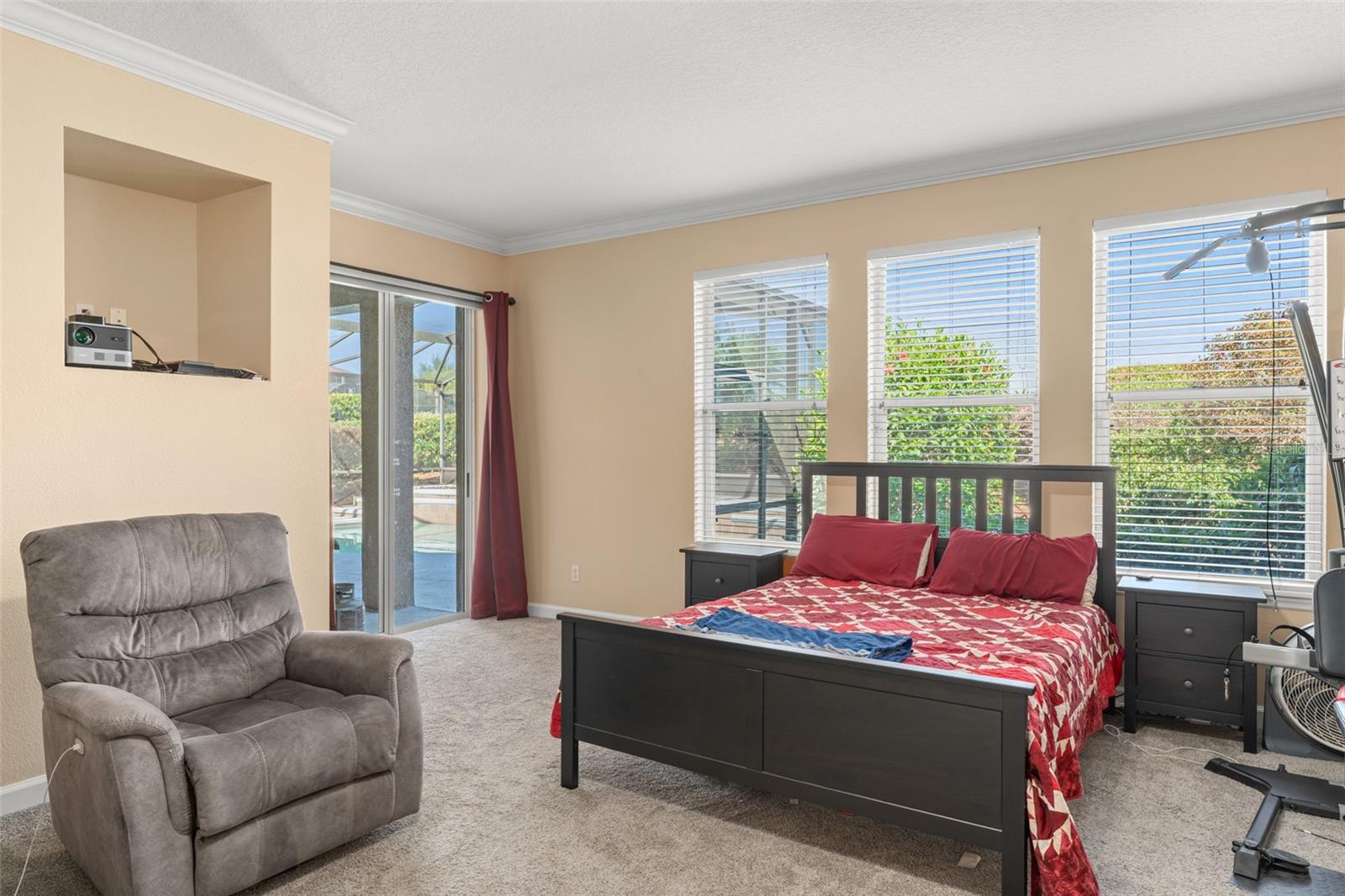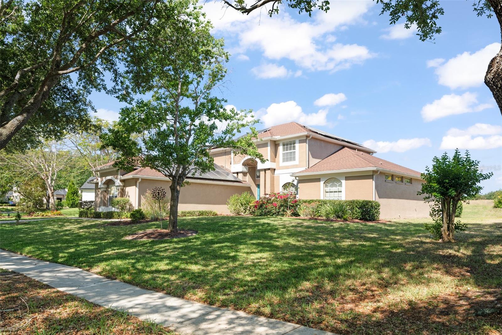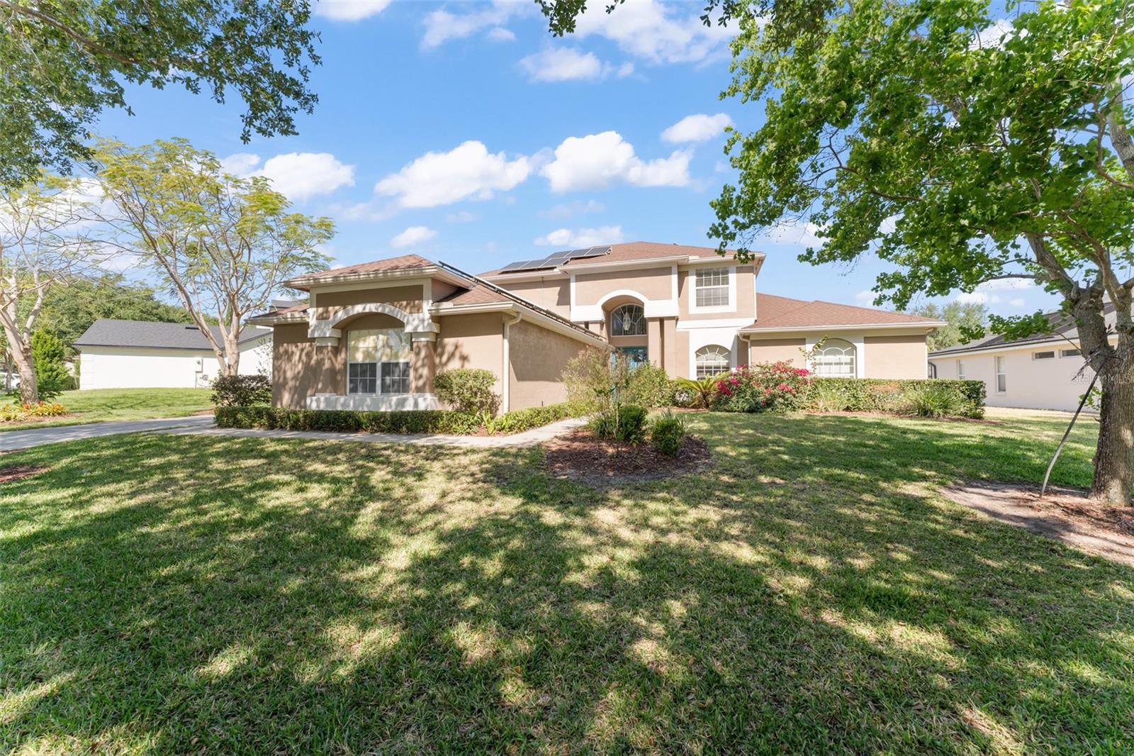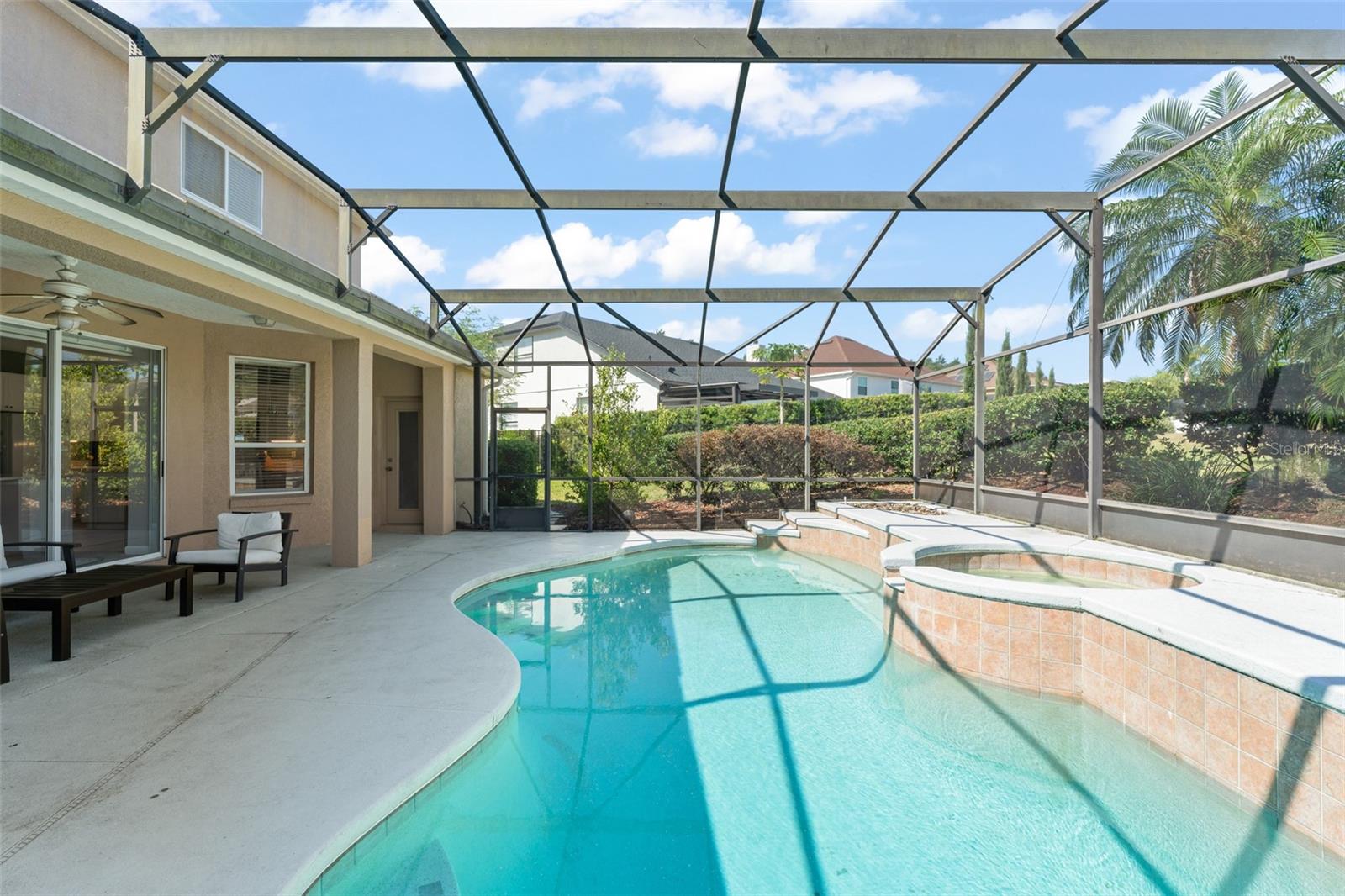 Exceptional opportunity to move right into a SOLAR 5-bedroom executive home with screened pool and spa, no rear neighbors, and walking distance to top-rated Windy Ridge K-8, within the gates of Westminster Landing. Be impressed with a refreshingly bright and open great room with double sliders revealing a screened lanai and refreshing pool. The spacious kitchen with white cabinets and stone counters plus island and breakfast nook are the perfect setting for everyday gatherings. The first-floor primary retreat is generous in size with direct access to the pool and an expansive master bath with double vanities, garden tub, separate shower, and walk-in closet. Two additional rooms on the first floor are located adjacent to the family room and include an office/den and music room or living room. All secondary bedrooms are upstairs and open to a large bonus room or second family room. Summer entertaining is a breeze on the patio deck with room for outdoor seating, BBQ, and a separate pool bath. Open space behind the home offers privacy with no rear neighbors and plenty of space for kids to play. Years of trouble-free living with NEW A/C, NEW DISHWASHER, NEW WATER HEATER, NEW POOL PUMP! Plus a 3-car garage! Westminster Landing is one of the area’s most sought-after neighborhoods with gated security, on-site tennis courts, playground, open fields, and a private community-only walkway to Windy Ridge (K-8). Solar system ensures minimal power bills and rock bottom operating expenses!