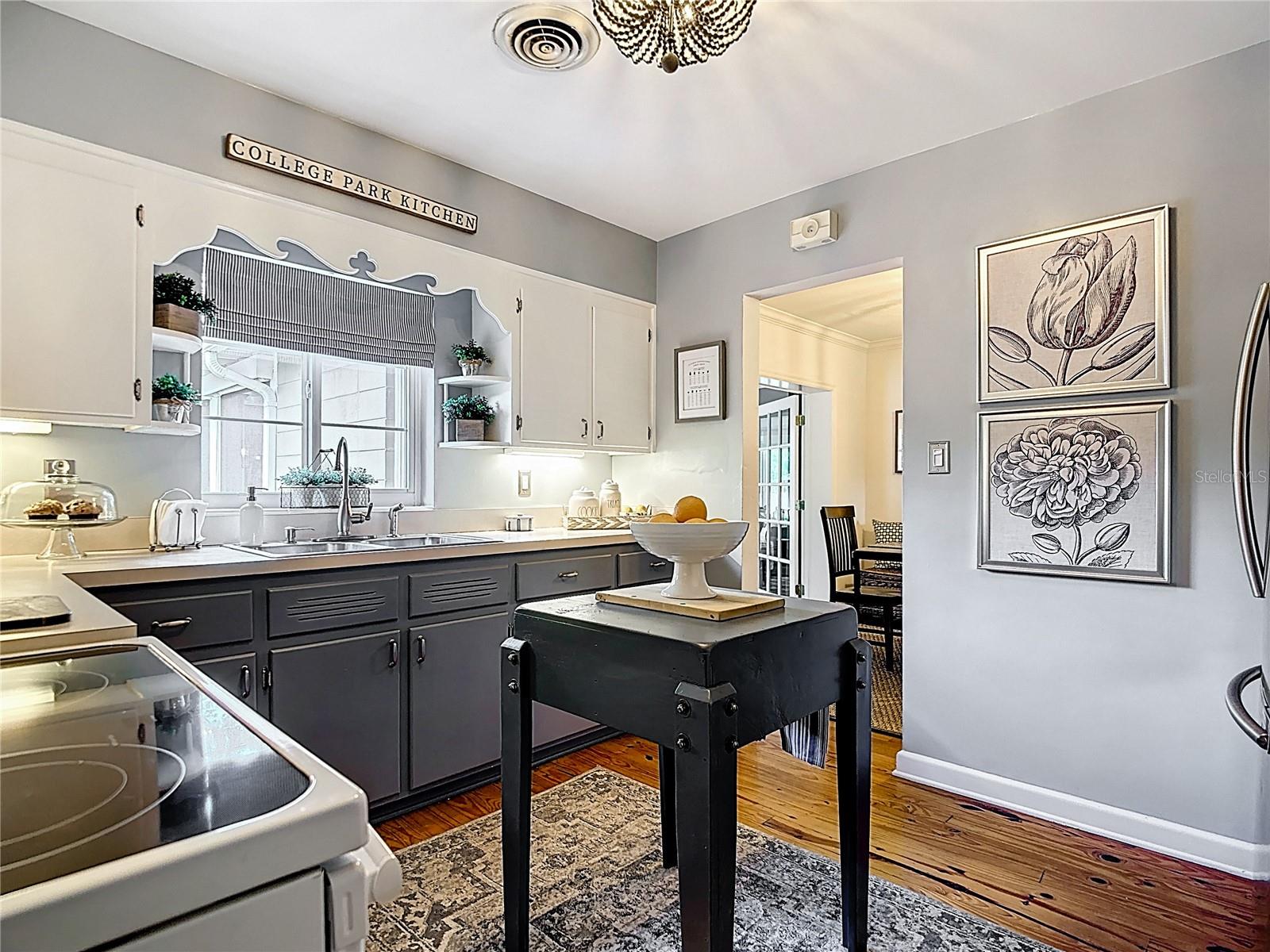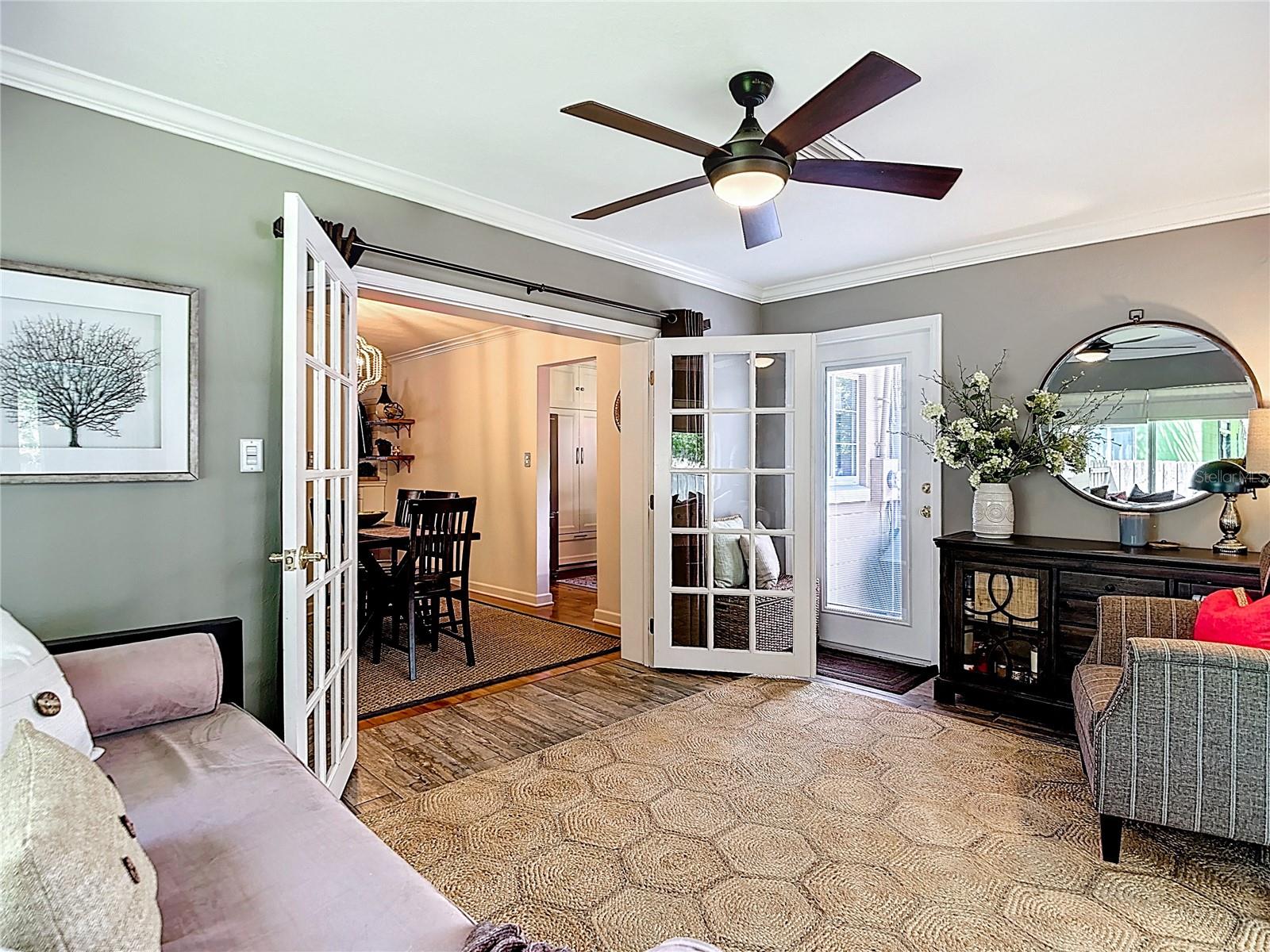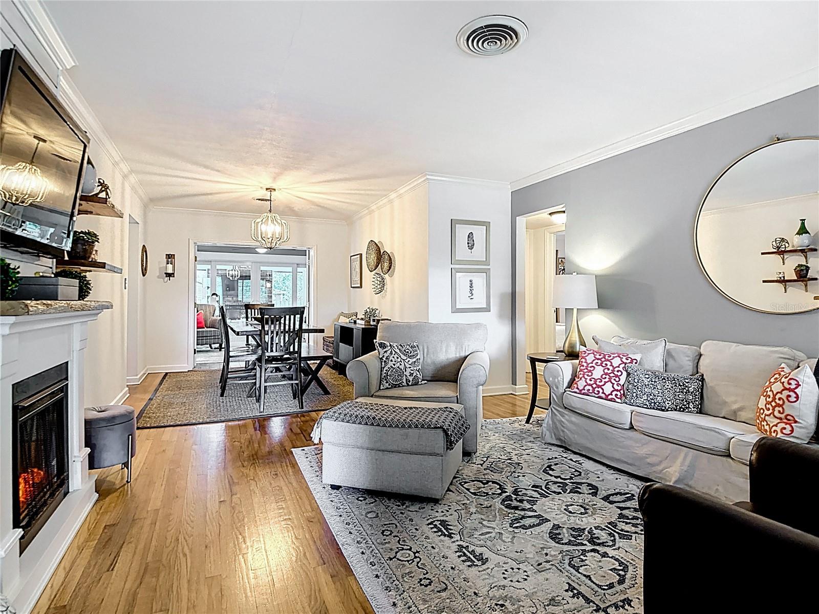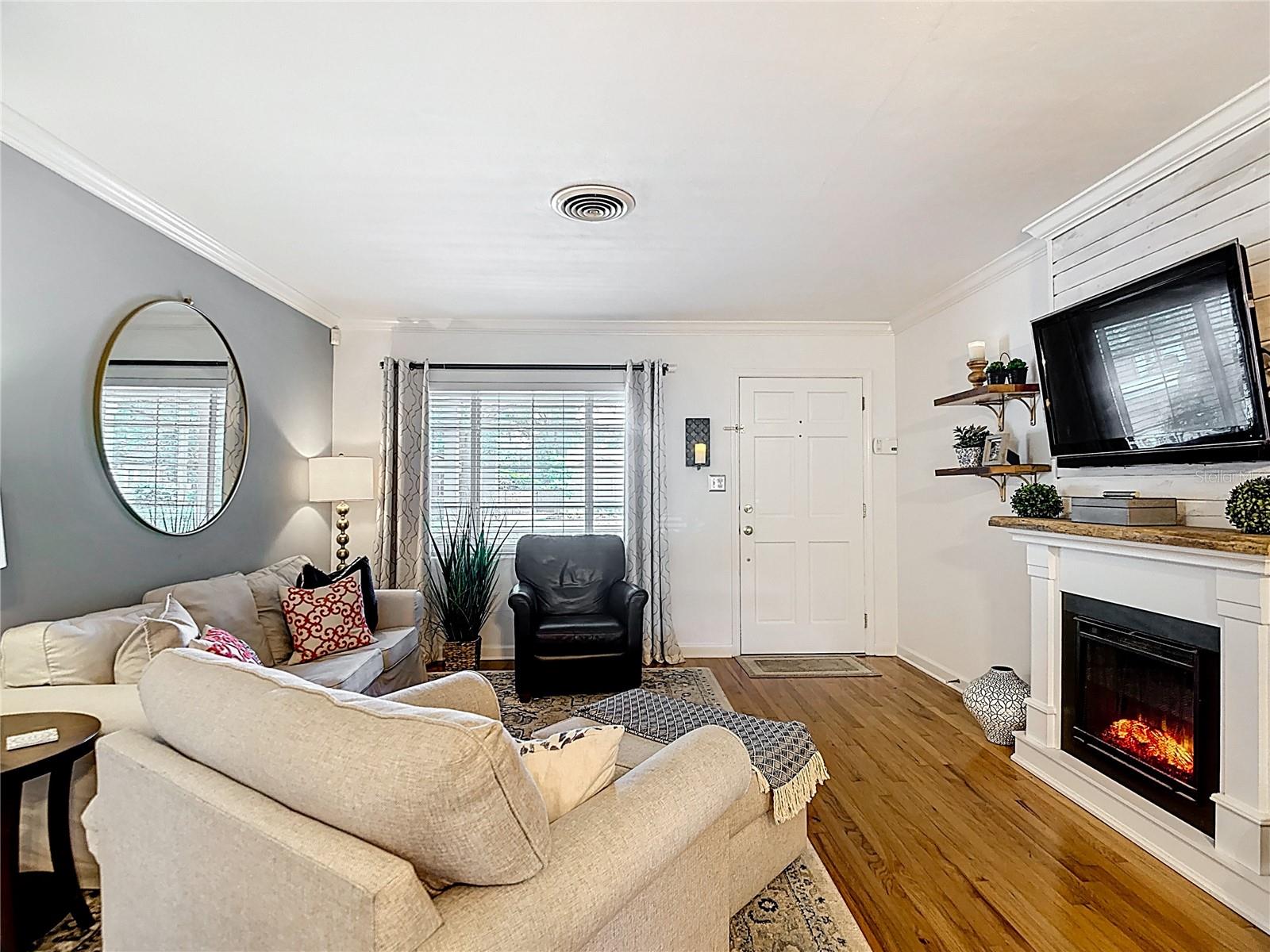 LOCATION, LOCATION, LOCATION! Charming Craftsman Bungalow in the Heart of College Park within steps of restaurants, shopping, and entertainment on Edgewater Drive. This move-in-ready, meticulously maintained 2-bedroom (plus bonus room), 1 bath home offers the perfect blend of coziness, charm, and convenience. Beautiful original hardwood floors and crown molding throughout the house, with a spacious living/dining area for relaxing and entertaining. Step outside the sliding French doors off the bonus room to your private oasis - a large outdoor screened-in living area with a gas fireplace, vaulted ceiling, wrought iron chandelier & custom lighting, ideal for hosting gatherings with family and friends and year-round enjoyment. Fenced-in spacious backyard offers privacy and a brick patio perfect for grilling and alfresco dining. This home’s prime location is a short walk from parks, community pool, Dubsdread Public Golf Course, and only 10 minutes from downtown Orlando, Lake Ivanhoe public boat ramp, 20 minutes from the airport, 5 minutes from Advent Health Hospital. Easy access to I-4 and major roads makes for an easy commute. Zoned for top-rated schools, including Princeton Elementary, College Park Middle School, and Edgewater High School. Don’t miss the opportunity to make this one-of-a-kind home your own. This College Park gem won’t last long!