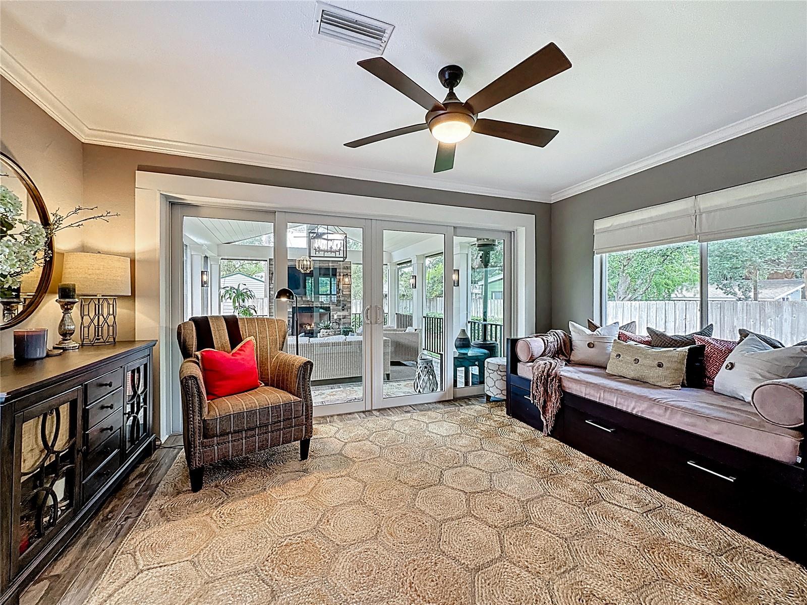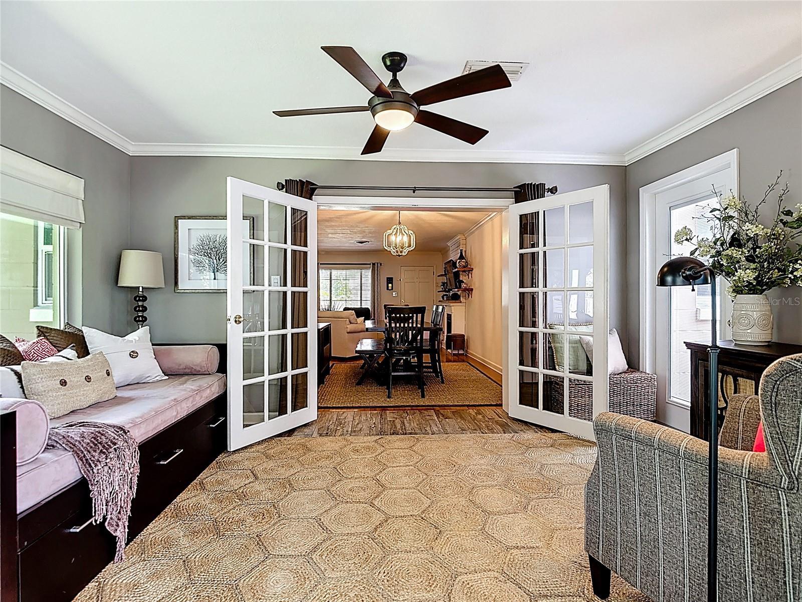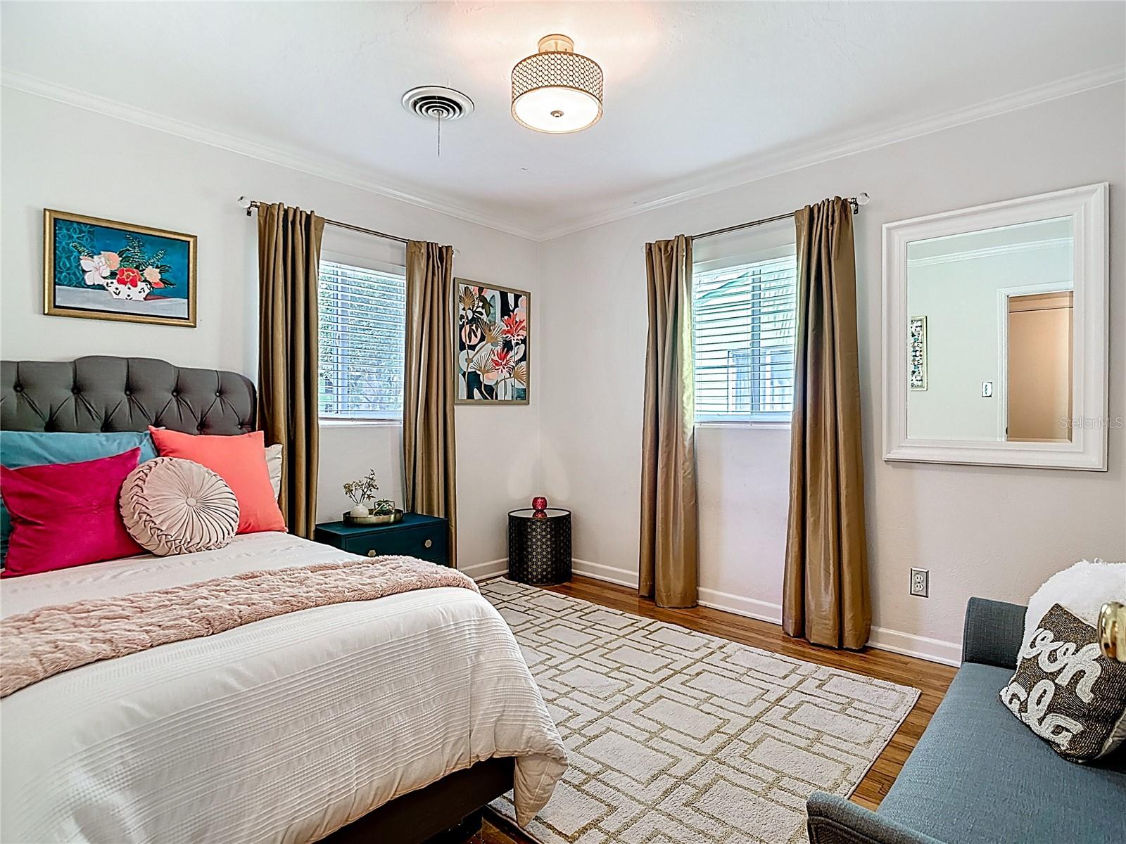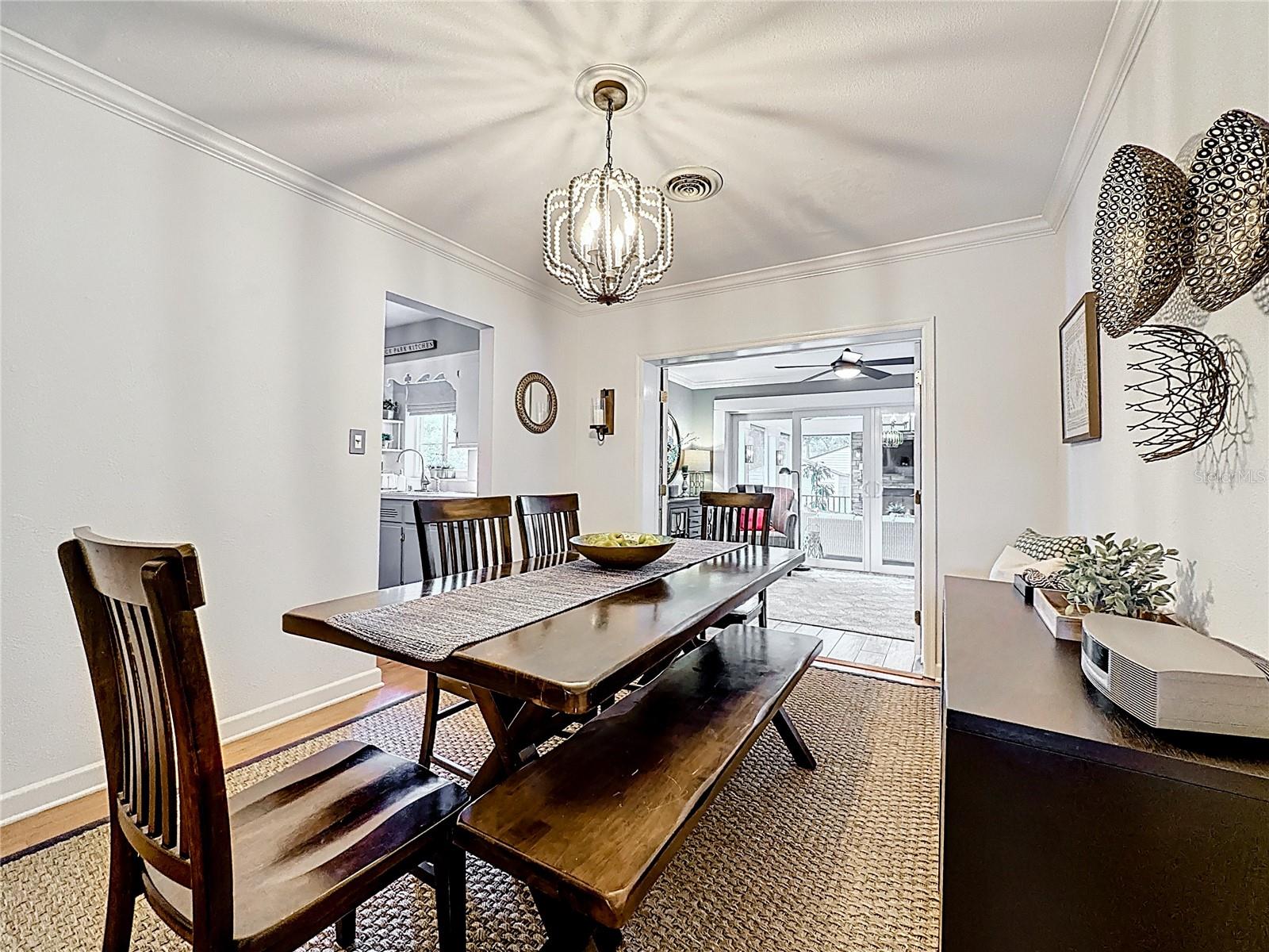 LOCATION, LOCATION, LOCATION! Charming Craftsman Bungalow in the Heart of College Park within steps of restaurants, shopping, and entertainment on Edgewater Drive. This move-in-ready, meticulously maintained 2-bedroom (plus bonus room), 1 bath home offers the perfect blend of coziness, charm, and convenience. Beautiful original hardwood floors and crown molding throughout the house, with a spacious living/dining area for relaxing and entertaining. Step outside the sliding French doors off the bonus room to your private oasis - a large outdoor screened-in living area with a gas fireplace, vaulted ceiling, wrought iron chandelier & custom lighting, ideal for hosting gatherings with family and friends and year-round enjoyment. Fenced-in spacious backyard offers privacy and a brick patio perfect for grilling and alfresco dining. This home’s prime location is a short walk from parks, community pool, Dubsdread Public Golf Course, and only 10 minutes from downtown Orlando, Lake Ivanhoe public boat ramp, 20 minutes from the airport, 5 minutes from Advent Health Hospital. Easy access to I-4 and major roads makes for an easy commute. Zoned for top-rated schools, including Princeton Elementary, College Park Middle School, and Edgewater High School. Don’t miss the opportunity to make this one-of-a-kind home your own. This College Park gem won’t last long!
