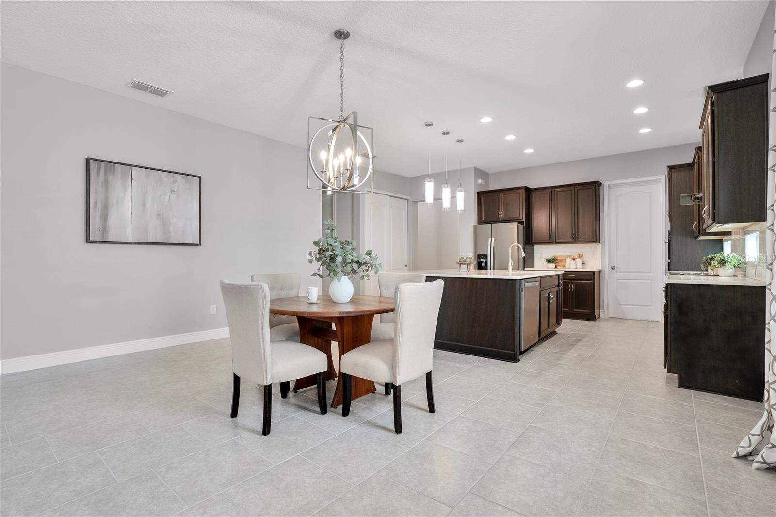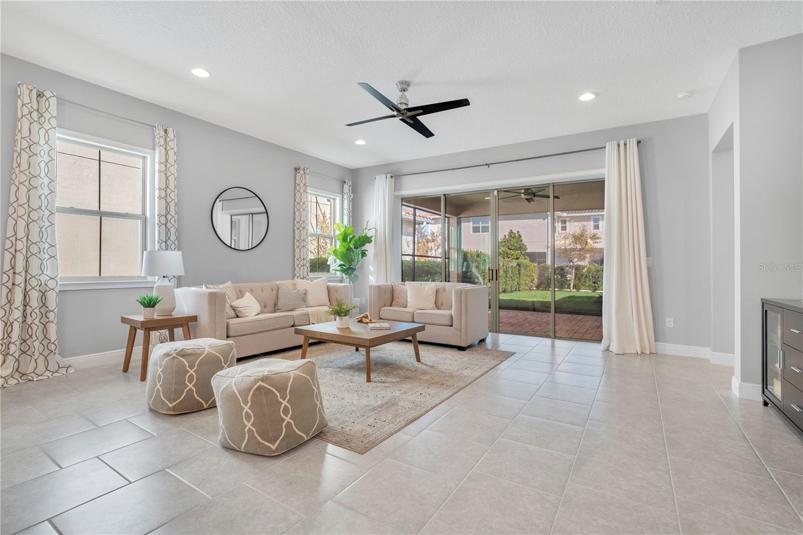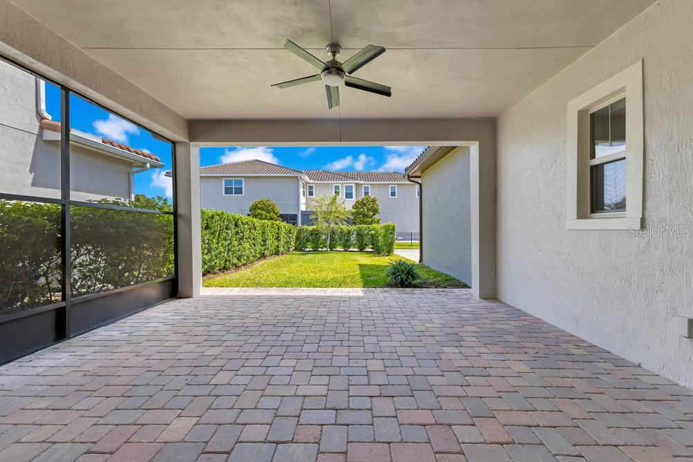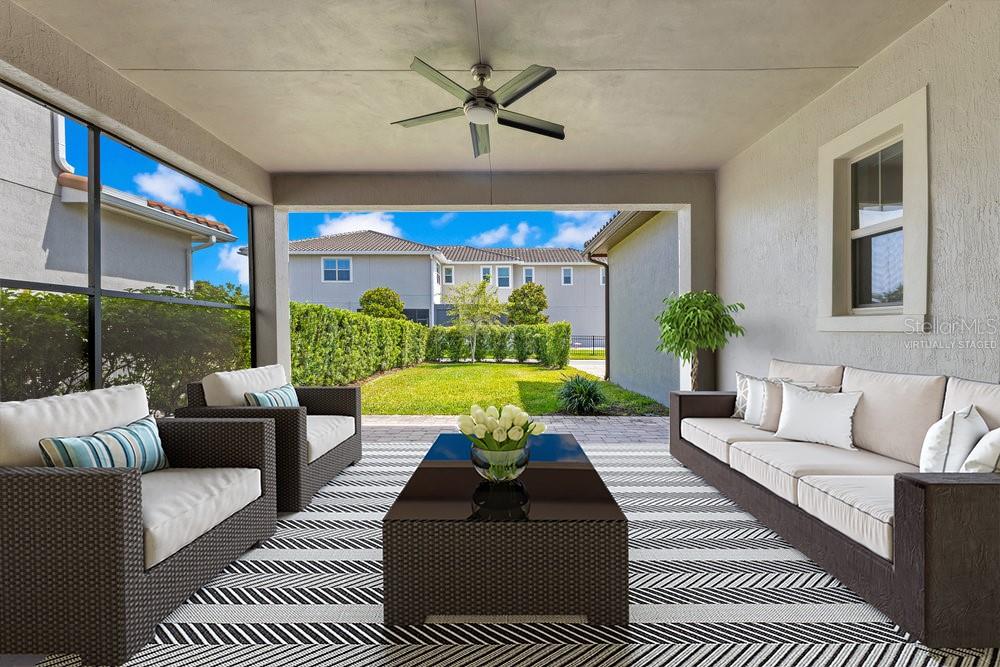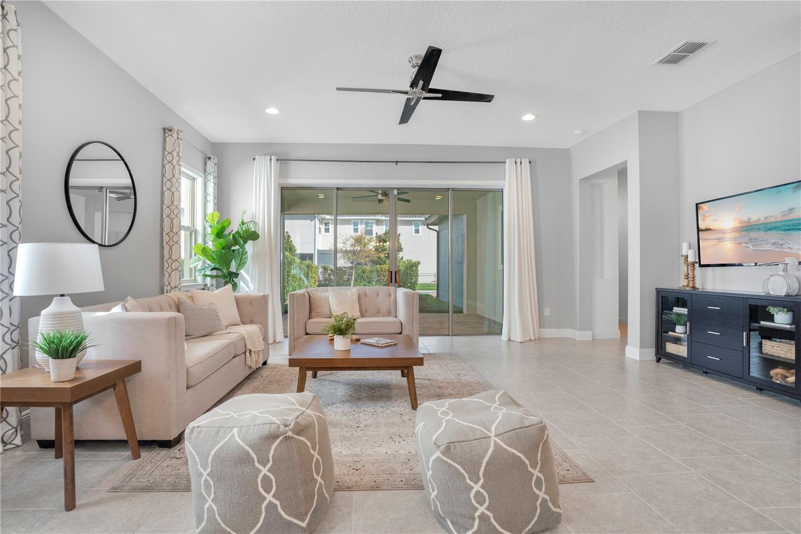 One or more photo(s) has been virtually staged. Southwest-facing home • 3D tour available • Seller-owned solar paid off at closing Built in 2019, this 3-bedroom / 2-bath, 2,270 sq ft single-story home sits in the gated Eagle Creek Golf Club community. This southwest orientation captures warm afternoon light throughout. Inside, the open-concept layout features a gourmet kitchen with upgraded quartz countertops, built-in oven, cooktop, large center island, pantry, and breakfast bar. The living and dining areas connect seamlessly to a covered lanai outfitted with a motorized screen and full-wall sliding doors — ideal for indoor/outdoor living. The home includes a dedicated laundry room with garden views, a mudroom with built-ins, and ceramic tile flooring throughout. The rear-entry two-car garage opens via a private extended driveway. Exterior paint carries a lifetime warranty, and the HVAC system is newer and well maintained. The seller-owned solar system will be paid off at closing, transferring the benefit of solar power to the buyer. The backyard features a planted privacy fence for added discretion. Eagle Creek offers resort-style amenities: clubhouse, pool, fitness center, tennis courts, golf course access, playground, sidewalks, and community recreation spaces. Schools serving this address include Eagle Creek Elementary, Luminary Middle (˜ 0.9 mi), and Lake Nona High School. Convenient access to Hwy 528 and 417, Lake Nona Town Center, Medical City Orlando, and Orlando International Airport (~11 mi). Includes full 3D walkthrough tour and video. Buyer to verify all measurements, systems, HOA details, and school assignments