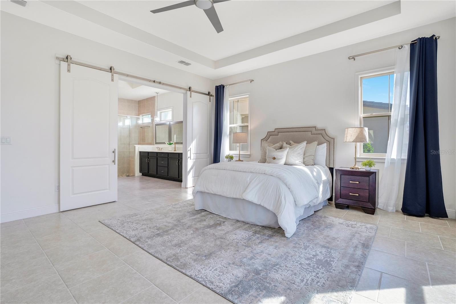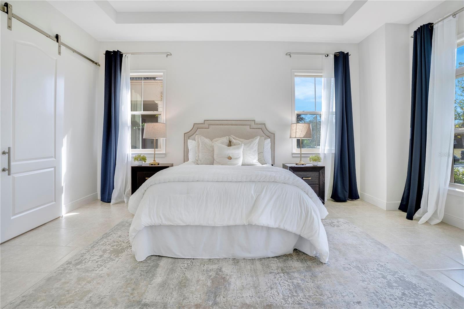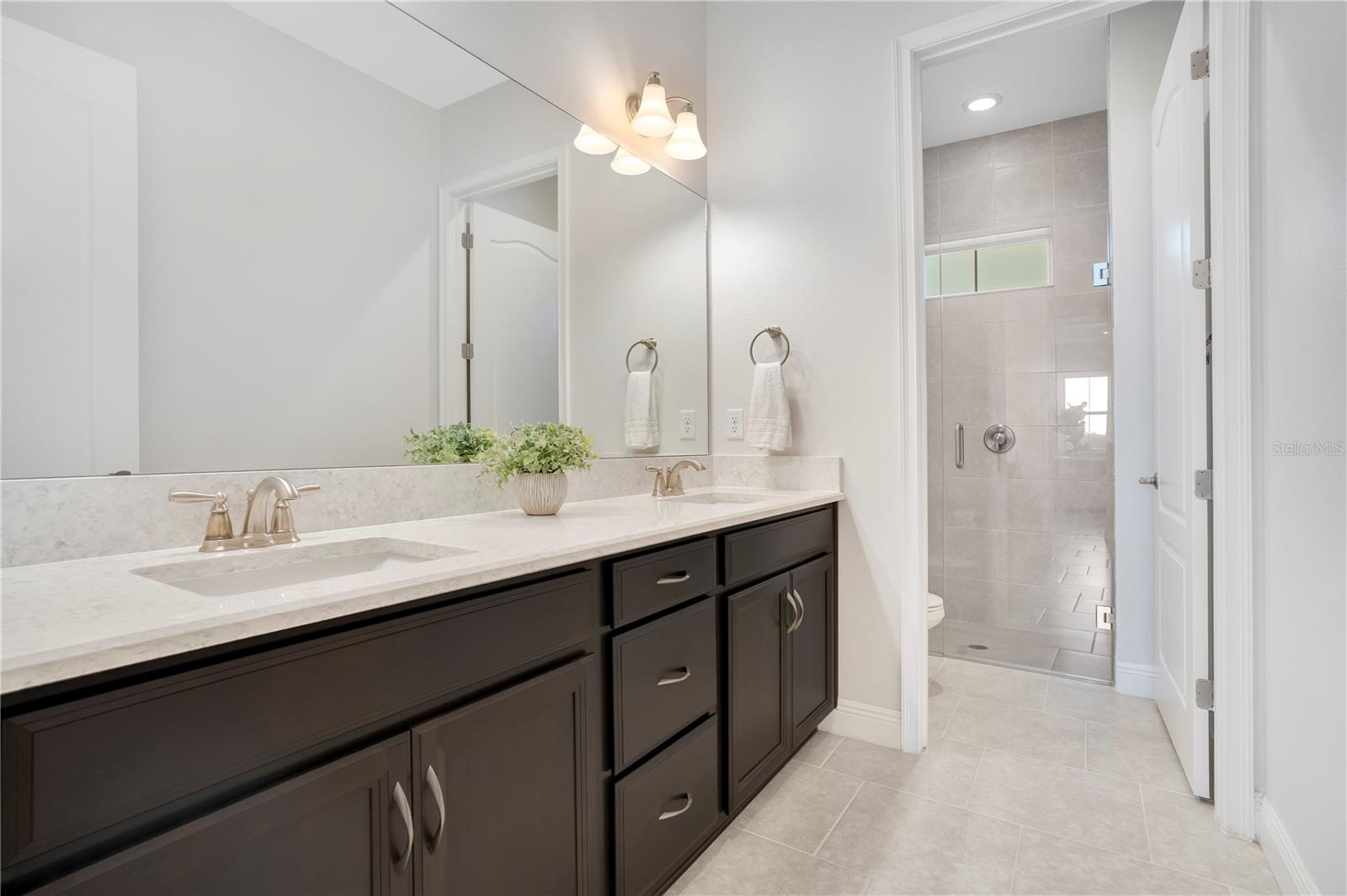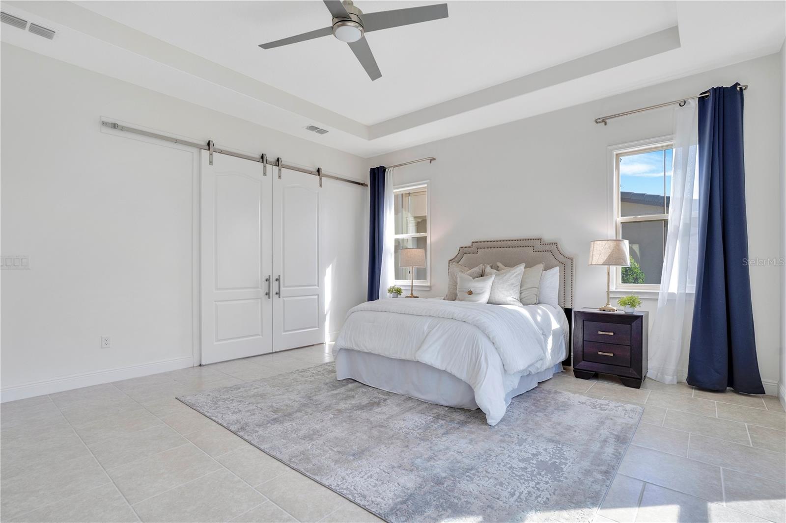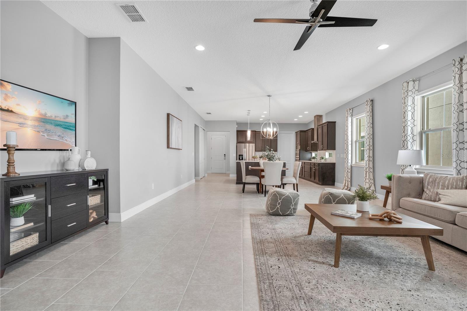 One or more photo(s) has been virtually staged. Southwest-facing home • 3D tour available • Seller-owned solar paid off at closing Built in 2019, this 3-bedroom / 2-bath, 2,270 sq ft single-story home sits in the gated Eagle Creek Golf Club community. This southwest orientation captures warm afternoon light throughout. Inside, the open-concept layout features a gourmet kitchen with upgraded quartz countertops, built-in oven, cooktop, large center island, pantry, and breakfast bar. The living and dining areas connect seamlessly to a covered lanai outfitted with a motorized screen and full-wall sliding doors — ideal for indoor/outdoor living. The home includes a dedicated laundry room with garden views, a mudroom with built-ins, and ceramic tile flooring throughout. The rear-entry two-car garage opens via a private extended driveway. Exterior paint carries a lifetime warranty, and the HVAC system is newer and well maintained. The seller-owned solar system will be paid off at closing, transferring the benefit of solar power to the buyer. The backyard features a planted privacy fence for added discretion. Eagle Creek offers resort-style amenities: clubhouse, pool, fitness center, tennis courts, golf course access, playground, sidewalks, and community recreation spaces. Schools serving this address include Eagle Creek Elementary, Luminary Middle (˜ 0.9 mi), and Lake Nona High School. Convenient access to Hwy 528 and 417, Lake Nona Town Center, Medical City Orlando, and Orlando International Airport (~11 mi). Includes full 3D walkthrough tour and video. Buyer to verify all measurements, systems, HOA details, and school assignments