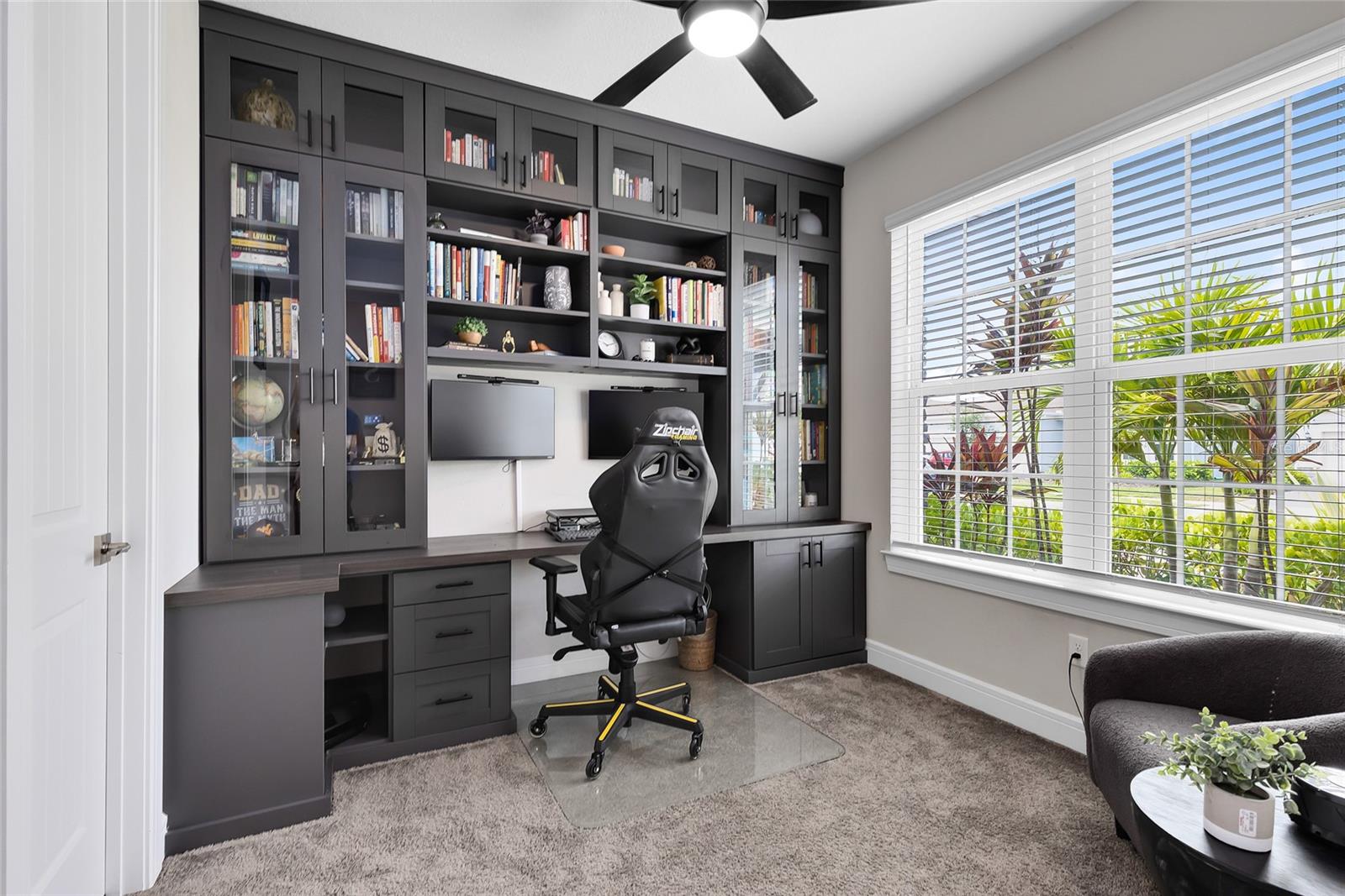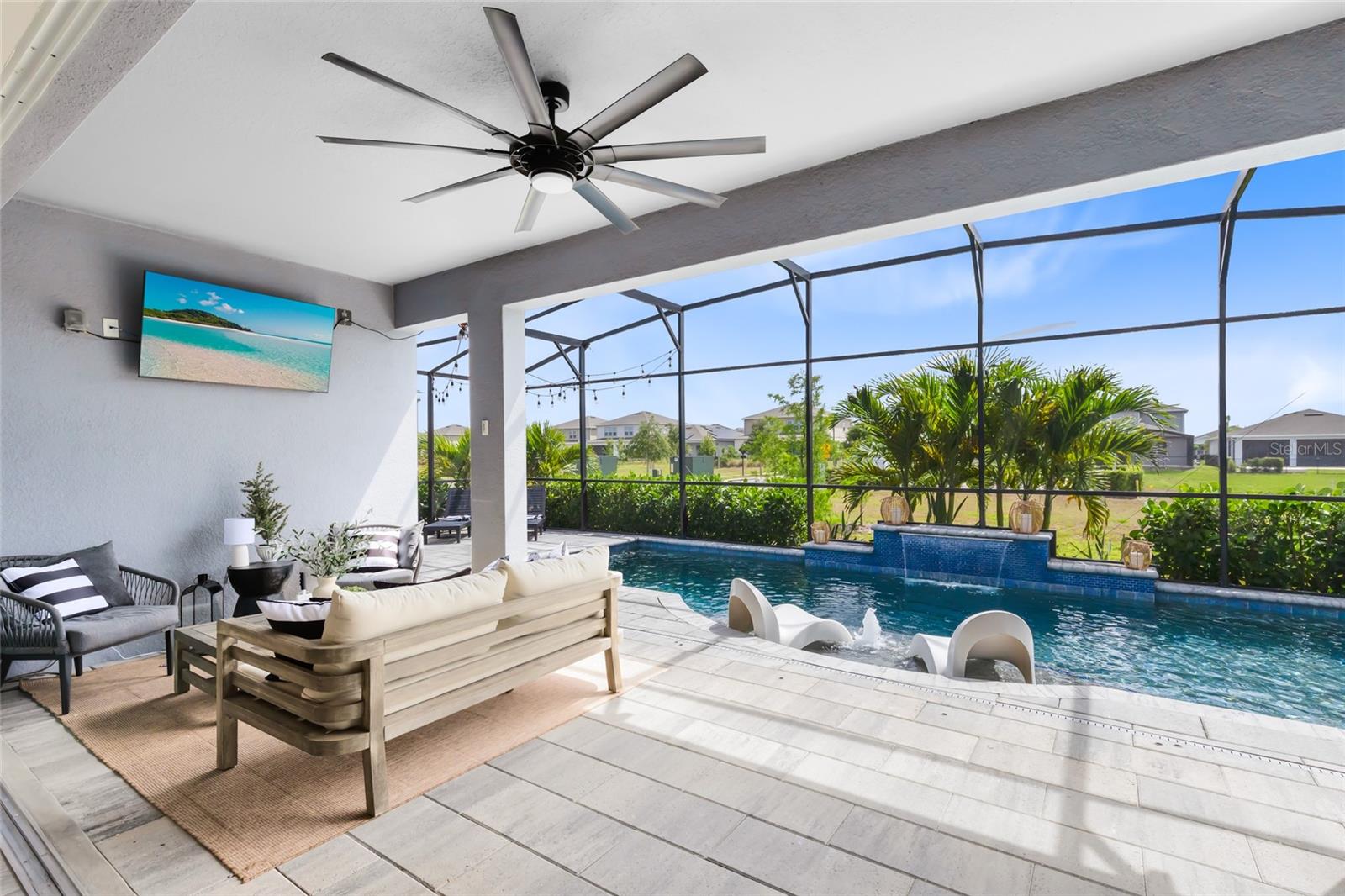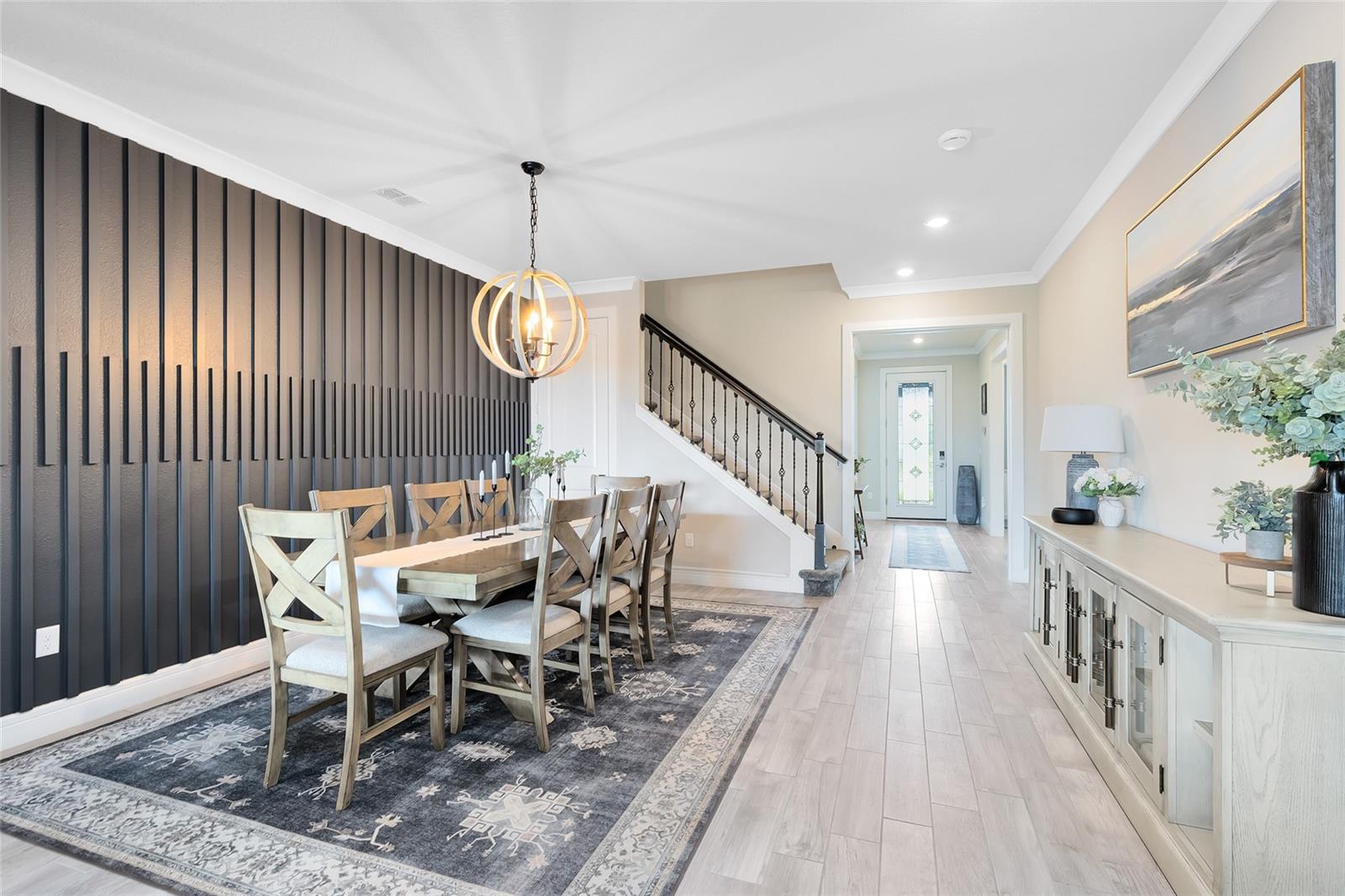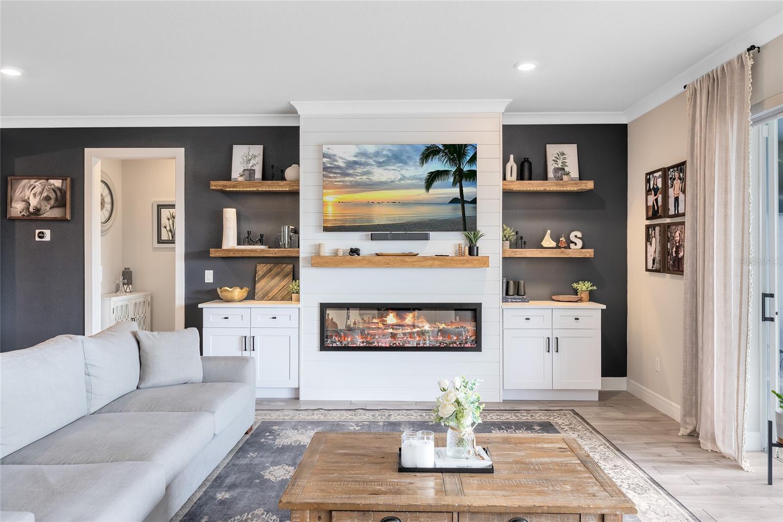 Step into luxury with this extensively upgraded 5-bedroom Easley model with water views, offering over 4,100 sq ft of curated living space on a beautifully landscaped corner lot in the Isles of Lake Nona. Thoughtfully designed for both everyday living and entertaining, this home blends custom craftsmanship with resort-style amenities. From the moment you enter, you're welcomed by crown molding, cased openings, wood-look tile floors, and a bright, open floor plan. The dedicated dining room stuns with a bold accent wall and modern light fixture—perfect for hosting gatherings in style. Just beyond, the gourmet kitchen is equally impressive with granite countertops, a massive island, Viking and KitchenAid appliances, a double oven, under-cabinet lighting, and a custom walk-in pantry with built-ins and wine storage. A sleek dry bar with wine fridge elevates the entertaining experience. The family room features a built-in electric fireplace, floating wood shelves, and expansive 16’ pocket sliders that fully open to a private screened lanai. Outside, enjoy a sparkling pool with sun shelf and waterfall features, a full outdoor kitchen with grill, sink, and burner, and a bar with built-in Bluetooth speakers—all surrounded by lush, upgraded landscaping. The first-floor primary suite offers a peaceful retreat with a tray ceiling, accent wall, and spa-like bathroom with dual vanities, large walk-in shower, and a fully customized closet. Upstairs includes a large loft with an 85” TV (included), custom closets in every room, and a versatile bonus room currently used as a home gym. Additional highlights include a dedicated office with floor-to-ceiling built-ins, a 3-car tandem garage, tankless water heater, and zoned A/C. Enjoy the gated Isles of Lake Nona lifestyle with access to a resort-style pool, clubhouse, fitness center, tennis courts, playgrounds, and walking trails—all minutes from top-rated schools. Ideally located near Lake Nona’s Medical City, premier dining, shopping, and major highways. Less than 20 minutes to MCO Airport and the new USTA training center, and just a short drive to top theme parks and beaches. This isn’t just a home—it’s a lifestyle of comfort, style, and sophistication. Experience luxury living redefined. Schedule your private tour today!