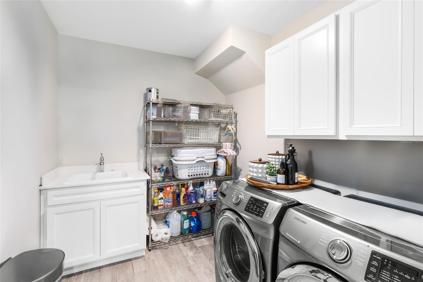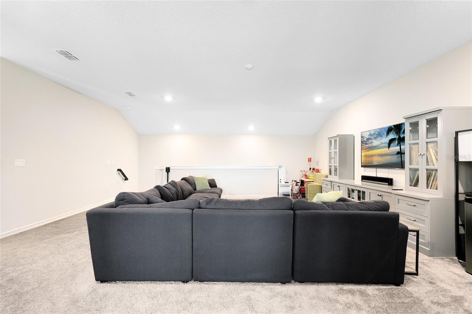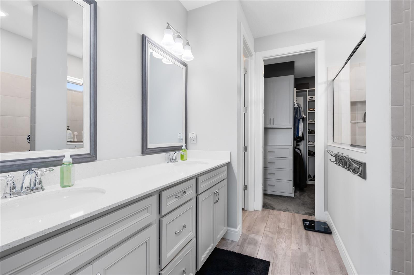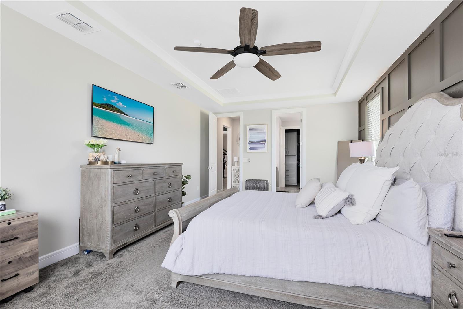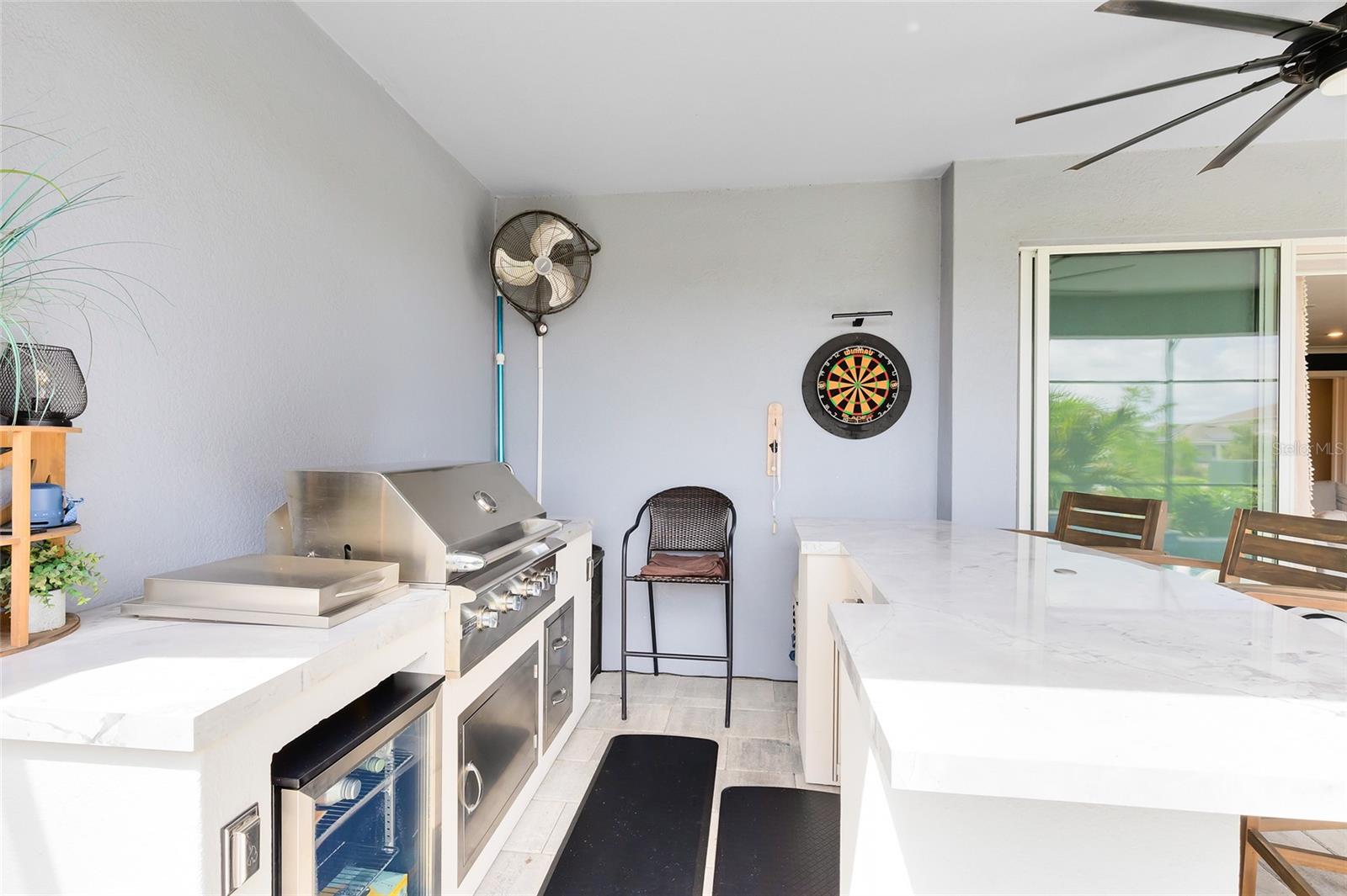 Step into luxury with this extensively upgraded 5-bedroom Easley model with water views, offering over 4,100 sq ft of curated living space on a beautifully landscaped corner lot in the Isles of Lake Nona. Thoughtfully designed for both everyday living and entertaining, this home blends custom craftsmanship with resort-style amenities. From the moment you enter, you're welcomed by crown molding, cased openings, wood-look tile floors, and a bright, open floor plan. The dedicated dining room stuns with a bold accent wall and modern light fixture—perfect for hosting gatherings in style. Just beyond, the gourmet kitchen is equally impressive with granite countertops, a massive island, Viking and KitchenAid appliances, a double oven, under-cabinet lighting, and a custom walk-in pantry with built-ins and wine storage. A sleek dry bar with wine fridge elevates the entertaining experience. The family room features a built-in electric fireplace, floating wood shelves, and expansive 16’ pocket sliders that fully open to a private screened lanai. Outside, enjoy a sparkling pool with sun shelf and waterfall features, a full outdoor kitchen with grill, sink, and burner, and a bar with built-in Bluetooth speakers—all surrounded by lush, upgraded landscaping. The first-floor primary suite offers a peaceful retreat with a tray ceiling, accent wall, and spa-like bathroom with dual vanities, large walk-in shower, and a fully customized closet. Upstairs includes a large loft with an 85” TV (included), custom closets in every room, and a versatile bonus room currently used as a home gym. Additional highlights include a dedicated office with floor-to-ceiling built-ins, a 3-car tandem garage, tankless water heater, and zoned A/C. Enjoy the gated Isles of Lake Nona lifestyle with access to a resort-style pool, clubhouse, fitness center, tennis courts, playgrounds, and walking trails—all minutes from top-rated schools. Ideally located near Lake Nona’s Medical City, premier dining, shopping, and major highways. Less than 20 minutes to MCO Airport and the new USTA training center, and just a short drive to top theme parks and beaches. This isn’t just a home—it’s a lifestyle of comfort, style, and sophistication. Experience luxury living redefined. Schedule your private tour today!