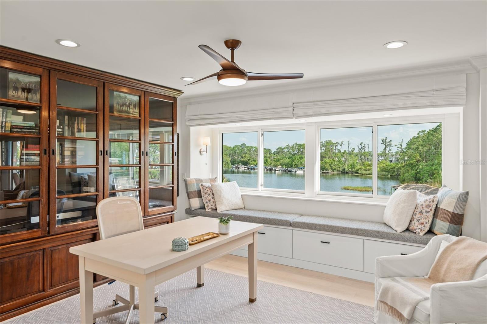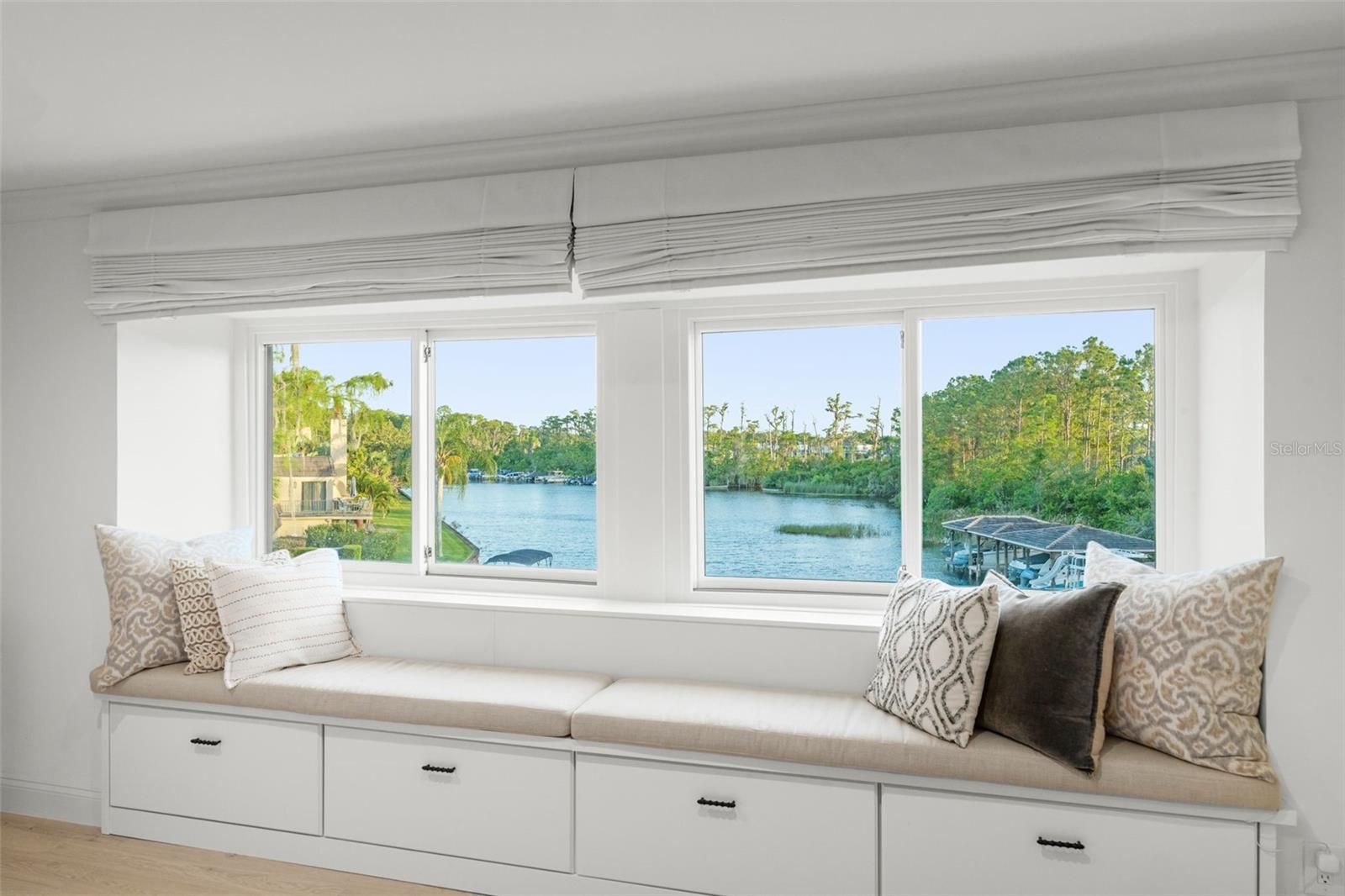 Deeded, covered boat slip with electric lift, to the Butler Chain of Lakes! Seller to provide $20,000 buyer credit for social membership at Arnold Palmer Bay Hill Club and Lodge. Welcome to the waterfront penthouse in desirable Bay Hill, an architectural masterpiece meticulously renovated from floor to ceiling. Spanning an impressive 2,394 square feet of sleek living space, this home redefines luxury with 180-degree vistas and two separate, sprawling balconies that seamlessly connect the interiors for an exceptional indoor-outdoor experience. The epitome of elegance, the property occupies the entire third floor of the west-end building of the Masters Condominium, complete with a professionally curated floor plan and soaring ceiling renovation. The kitchen is sure to delight the chef in your family with an enormous quartzite center island, solid wood custom cabinetry, Viking appliances, two wine refrigerators, built-in refrigeration drawers, custom copper backsplash, and breathtaking views of the lake and spacious breakfast bar for an exquisite culinary experience. An adaptable design footprint, the penthouse boasts a three-bedroom framework, configured as two bedrooms plus an office, and 3.5 renovated baths. The primary suite is a sanctuary, complete with dual baths — that's right, the ultimate in marital bliss! A steam shower, dual closets and a wall of glass that frames the spectacular, nightly Disney fireworks. High-end finishes throughout make this home special and include European light oak brushed hardwood floors, crown molding, cedar-lined closets, new awnings and custom built-in window seats to fully capture the lakefront lifestyle. A large entertainer's bar is the ultimate in sophistication, featuring custom glass shelving and an effortless flow for guests to enjoy a cocktail while taking in the dramatic vistas. On a quiet cul-de-sac, this residence offers unparalleled privacy and multiple outdoor living areas, ensuring you'll be captivated by panoramic views and those stunning Florida sunsets. A covered boat slip with an electric lift, one-car garage, and a private elevator (modernized in 2025) adds convenience and luxury. All new electrical throughout the building and sprayed foam insulation for enhanced energy efficiency, improved air quality and better soundproofing. This distinguished property is offered fully furnished and turnkey, providing an effortless transition to refined living. The renowned Bay Hill community and its unmatched convenience are just minutes from Universal Studios Orlando, Restaurant Row, Volcano Bay, shopping and more. Within 20 minutes, you can reach Orlando International Airport, Disney and downtown Orlando. Private membership to Bay Hill provides many amenities, including golf, tennis, pickleball, fitness center, pool, marina, dining rooms, lounges, meeting and banquet facilities, a hotel/lodge, and more social and recreational events. This home is a must-see!