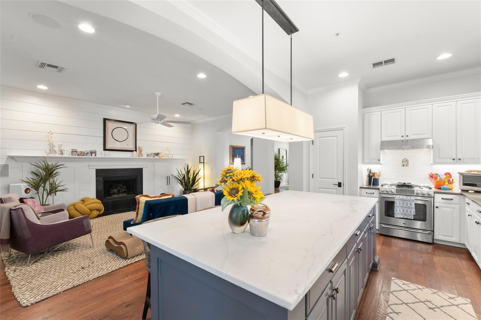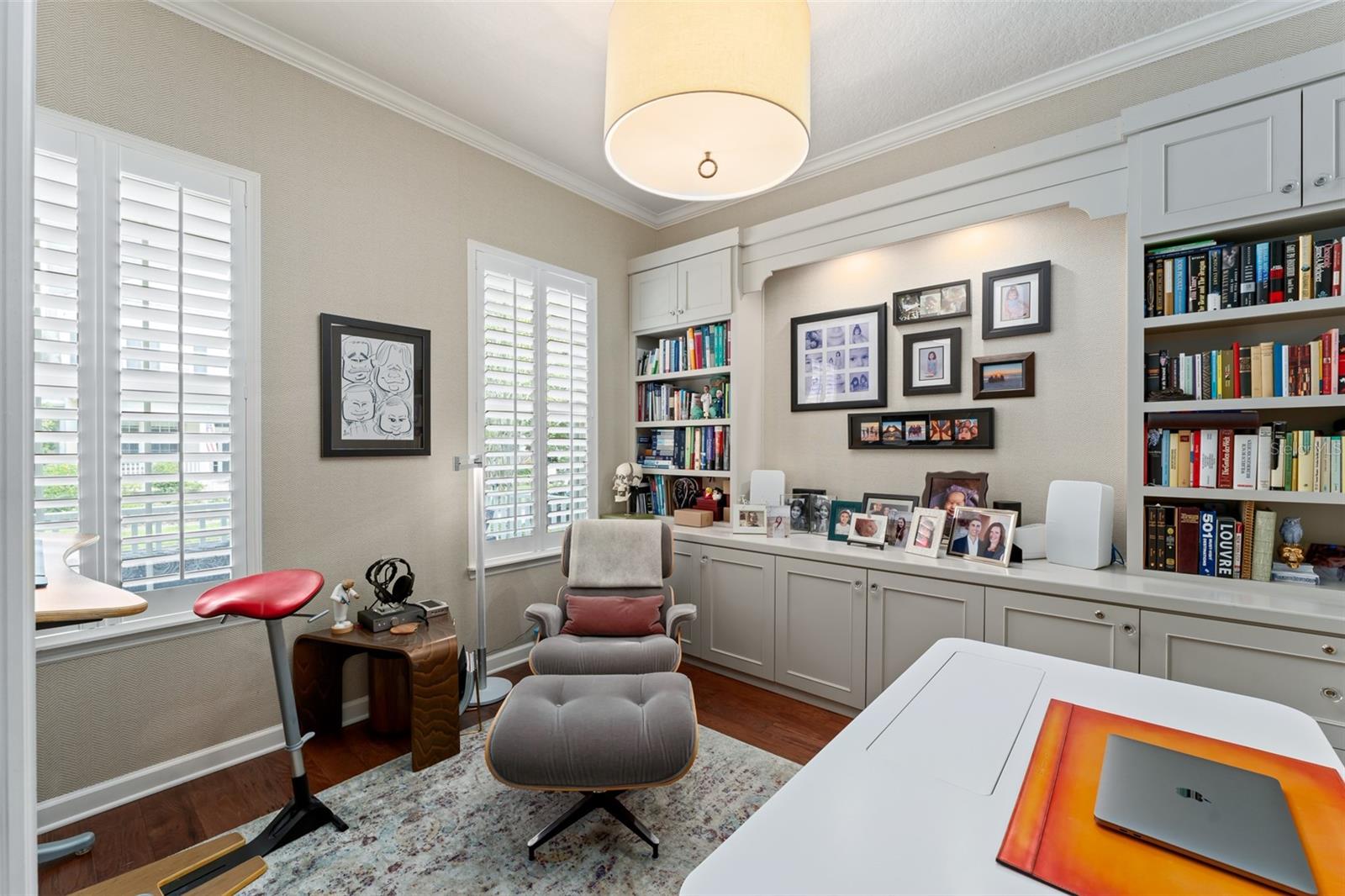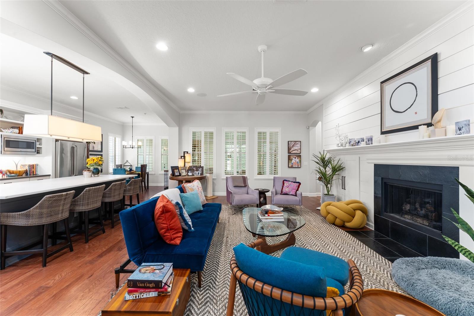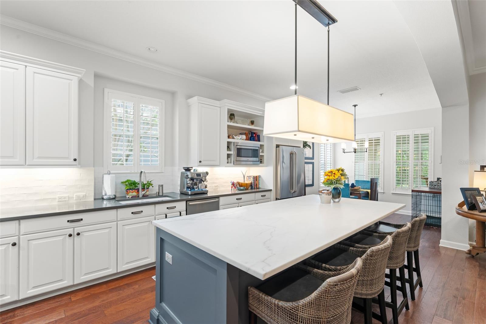 Great value and price per square foot in Baldwin Park! Motivated Seller! This charming and chic updated four bedroom, three and a half bathroom home plus office is located in the highly sought-after first section of Baldwin Park. Significant improvements by custom builder Goehring and Morgan include a gorgeous year-round sunroom flooded with natural light and peaceful views, complete with wet bar. This dramatic expansion has increased the living area to over 3800 sq ft. The kitchen and heart of the home has been upgraded to feature gas range and is adorned with quartz countertops, hand-made tile backsplash and a contrasting island topped with Carrara marble. The open concept floor plan connects the main family room seamlessly to offer inviting gathering spaces and features a gas fireplace framed by a shiplap wall and new hearth, giving it a fresh modern, yet cozy feel. Finishes include crown molding, wood floors, plantation shutters, and new solid wood interior doors and hardware as well as lighted custom cabinetry and built-in bookshelves in the study and master bedroom. The spa-like master bathroom features an enlarged shower, new tile, new lighting, and added cabinetry. The main house is all one-story, and the guest wing of the house offers a private sitting area/den connecting the 2 secondary bedrooms. All closets have been finished with custom organzing systems. The attached garage apartment is a spacious guest retreat with remodeled bathroom, new wood floors, quartz countertops, and custom window treatments. The backyard has been transformed into a tranquil Japanese style rock garden with mature landscaping, lighting, and direct propane connection. Major system upgrades consist of HVAC, tankless water heater, secondary electrical panel, air-conditioned garage with an abundance of storage and car lift, new roof (2025), renovated bathrooms, kitchen, landscaping refresh, double pane windows, and custom window treatments. The premier location in the community offers an easy walk to village center restaurants, shops, parks, and pools, and also ideally situated with easy access to Winter Park, Downtown Orlando and Audubon Park.This is a one of a kind Baldwin Park home in immaculate, move-in ready condition. See photos for floor plan. Make your appointment to view today!