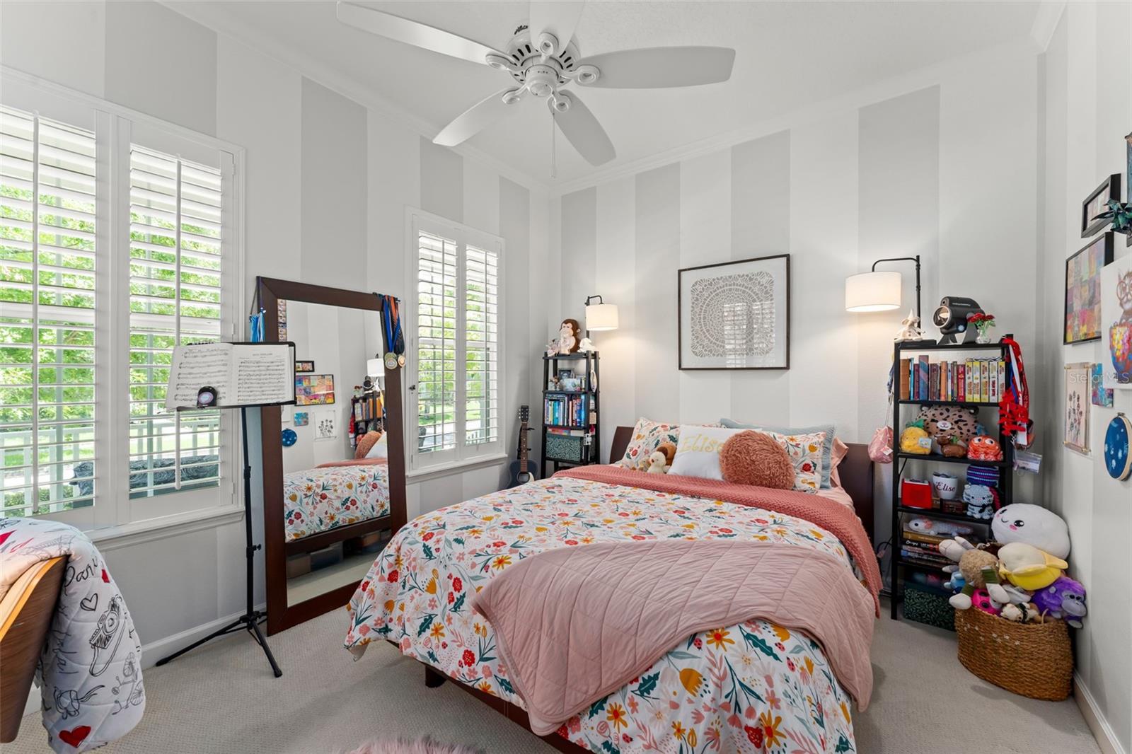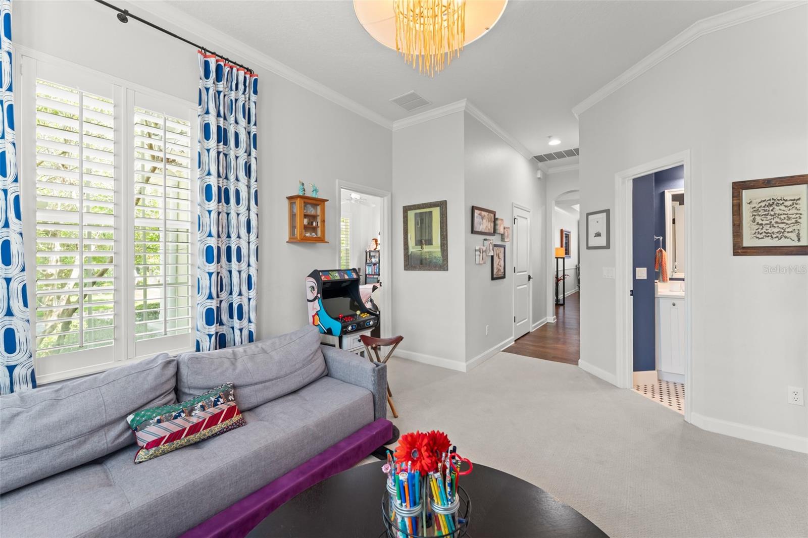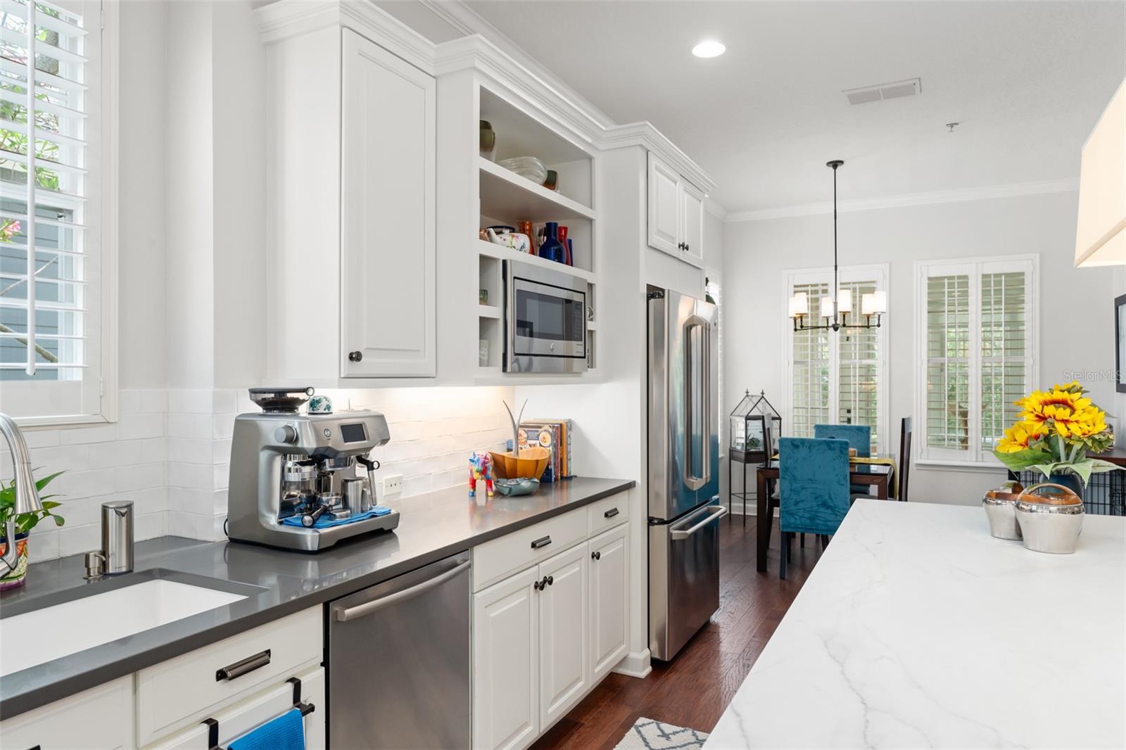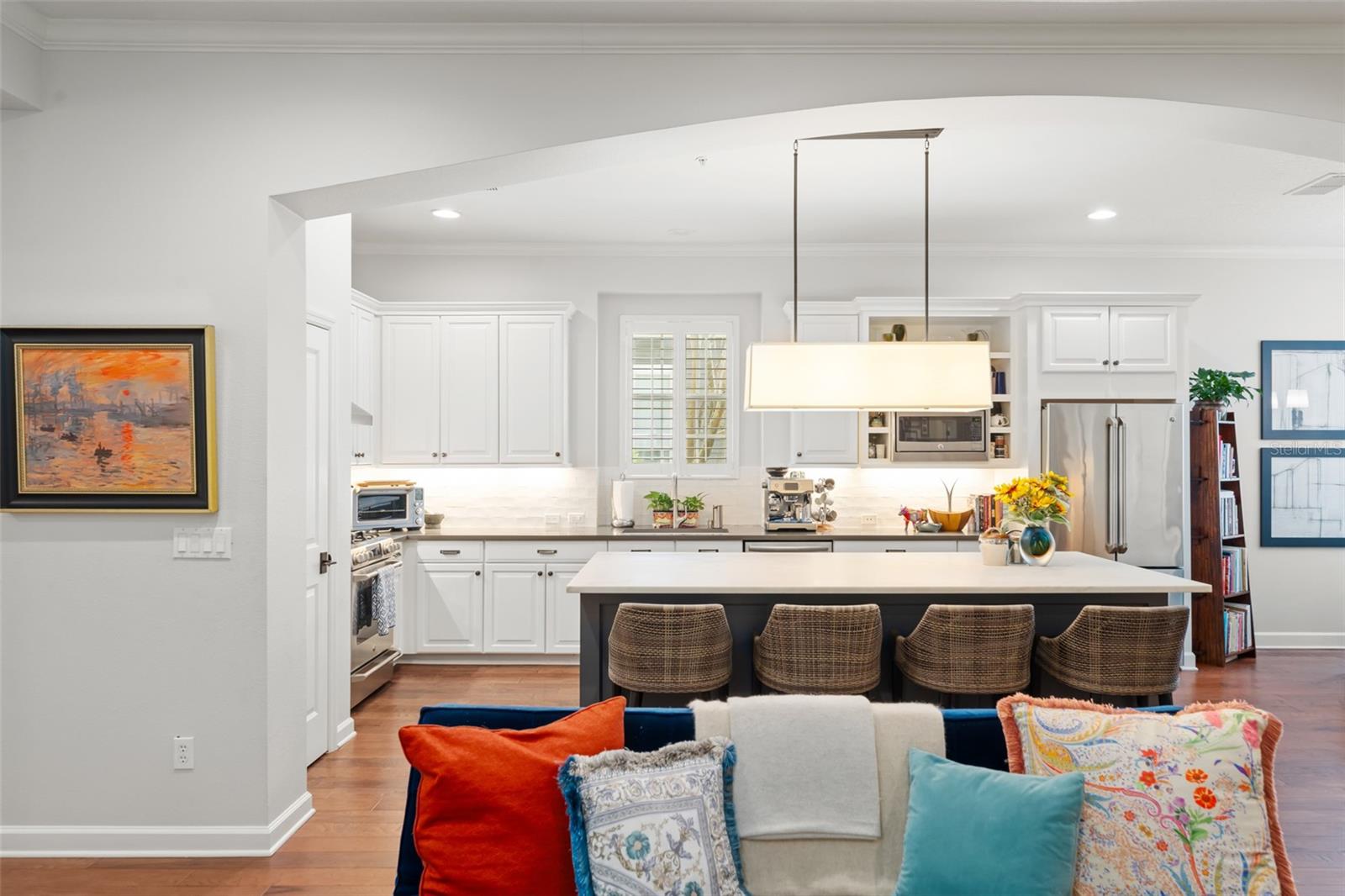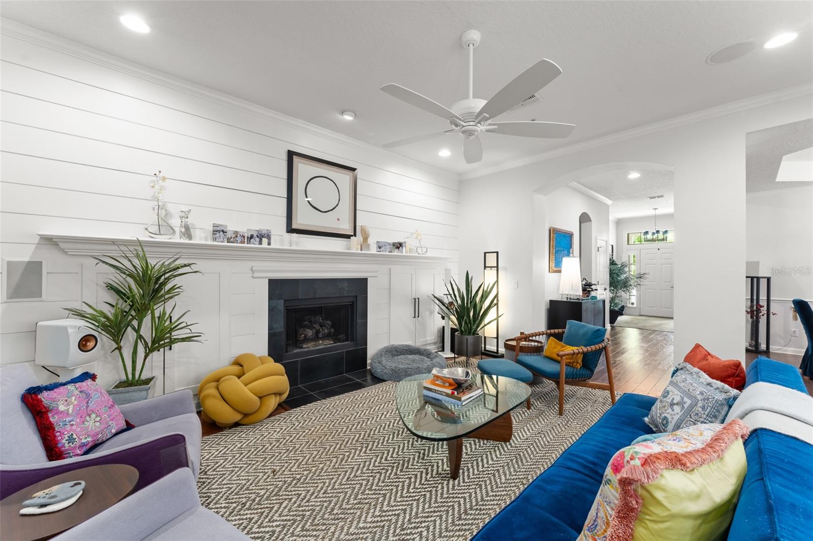 Great value and price per square foot in Baldwin Park! Motivated Seller! This charming and chic updated four bedroom, three and a half bathroom home plus office is located in the highly sought-after first section of Baldwin Park. Significant improvements by custom builder Goehring and Morgan include a gorgeous year-round sunroom flooded with natural light and peaceful views, complete with wet bar. This dramatic expansion has increased the living area to over 3800 sq ft. The kitchen and heart of the home has been upgraded to feature gas range and is adorned with quartz countertops, hand-made tile backsplash and a contrasting island topped with Carrara marble. The open concept floor plan connects the main family room seamlessly to offer inviting gathering spaces and features a gas fireplace framed by a shiplap wall and new hearth, giving it a fresh modern, yet cozy feel. Finishes include crown molding, wood floors, plantation shutters, and new solid wood interior doors and hardware as well as lighted custom cabinetry and built-in bookshelves in the study and master bedroom. The spa-like master bathroom features an enlarged shower, new tile, new lighting, and added cabinetry. The main house is all one-story, and the guest wing of the house offers a private sitting area/den connecting the 2 secondary bedrooms. All closets have been finished with custom organzing systems. The attached garage apartment is a spacious guest retreat with remodeled bathroom, new wood floors, quartz countertops, and custom window treatments. The backyard has been transformed into a tranquil Japanese style rock garden with mature landscaping, lighting, and direct propane connection. Major system upgrades consist of HVAC, tankless water heater, secondary electrical panel, air-conditioned garage with an abundance of storage and car lift, new roof (2025), renovated bathrooms, kitchen, landscaping refresh, double pane windows, and custom window treatments. The premier location in the community offers an easy walk to village center restaurants, shops, parks, and pools, and also ideally situated with easy access to Winter Park, Downtown Orlando and Audubon Park.This is a one of a kind Baldwin Park home in immaculate, move-in ready condition. See photos for floor plan. Make your appointment to view today!