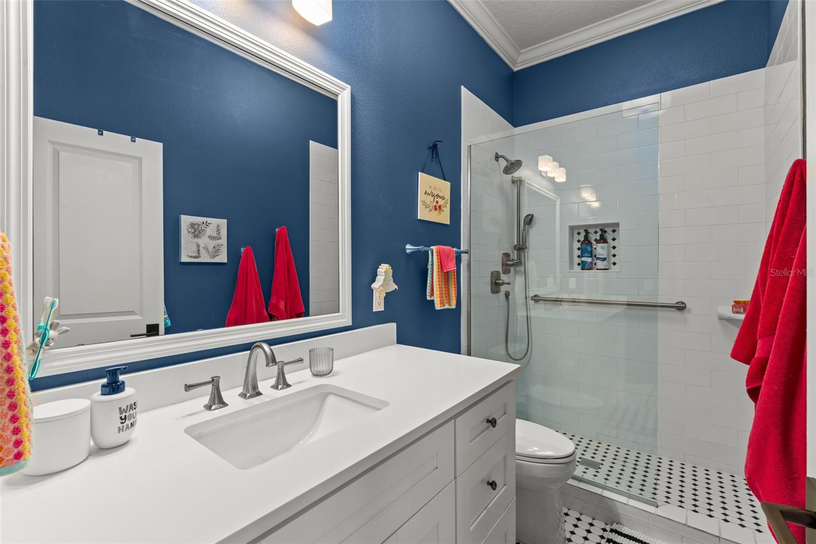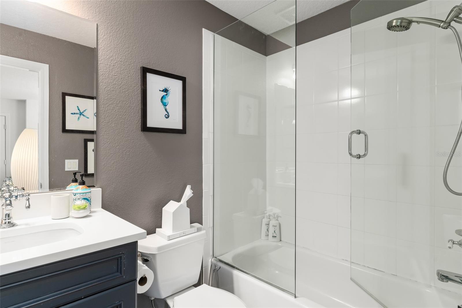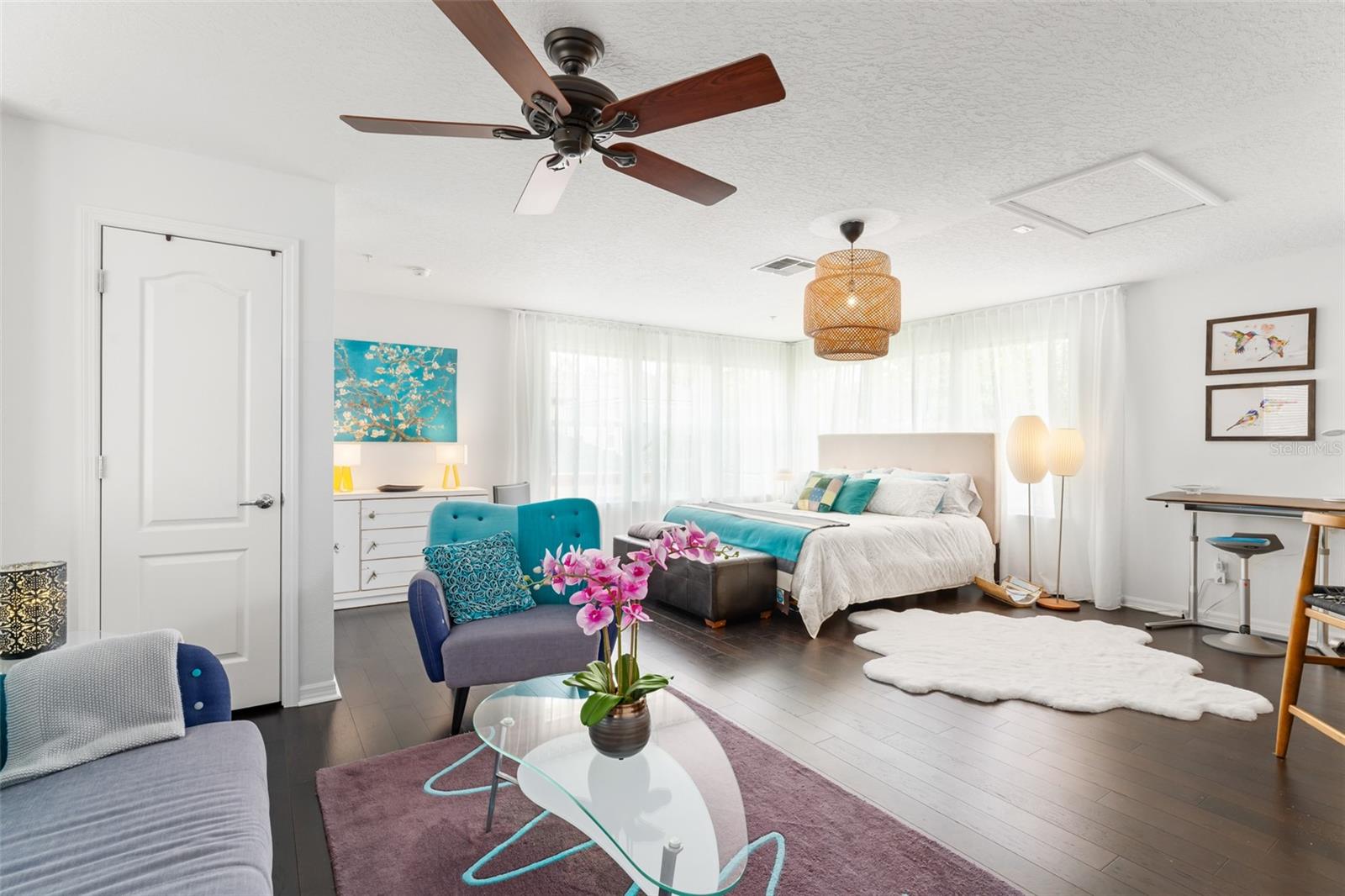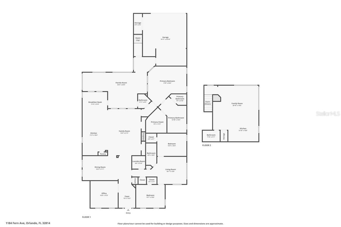 Great value and price per square foot in Baldwin Park! Motivated Seller! This charming and chic updated four bedroom, three and a half bathroom home plus office is located in the highly sought-after first section of Baldwin Park. Significant improvements by custom builder Goehring and Morgan include a gorgeous year-round sunroom flooded with natural light and peaceful views, complete with wet bar. This dramatic expansion has increased the living area to over 3800 sq ft. The kitchen and heart of the home has been upgraded to feature gas range and is adorned with quartz countertops, hand-made tile backsplash and a contrasting island topped with Carrara marble. The open concept floor plan connects the main family room seamlessly to offer inviting gathering spaces and features a gas fireplace framed by a shiplap wall and new hearth, giving it a fresh modern, yet cozy feel. Finishes include crown molding, wood floors, plantation shutters, and new solid wood interior doors and hardware as well as lighted custom cabinetry and built-in bookshelves in the study and master bedroom. The spa-like master bathroom features an enlarged shower, new tile, new lighting, and added cabinetry. The main house is all one-story, and the guest wing of the house offers a private sitting area/den connecting the 2 secondary bedrooms. All closets have been finished with custom organzing systems. The attached garage apartment is a spacious guest retreat with remodeled bathroom, new wood floors, quartz countertops, and custom window treatments. The backyard has been transformed into a tranquil Japanese style rock garden with mature landscaping, lighting, and direct propane connection. Major system upgrades consist of HVAC, tankless water heater, secondary electrical panel, air-conditioned garage with an abundance of storage and car lift, new roof (2025), renovated bathrooms, kitchen, landscaping refresh, double pane windows, and custom window treatments. The premier location in the community offers an easy walk to village center restaurants, shops, parks, and pools, and also ideally situated with easy access to Winter Park, Downtown Orlando and Audubon Park.This is a one of a kind Baldwin Park home in immaculate, move-in ready condition. See photos for floor plan. Make your appointment to view today!