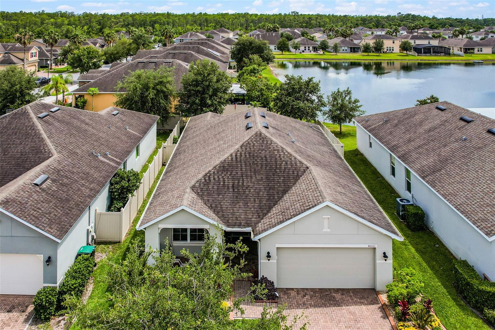 Enjoy a partial water view from this well-maintained single-story home, which offers 4 generously sized bedrooms, 2 full bathrooms, a formal dining area, and a spacious 2-car garage. At the heart of the home, the chef-style kitchen impresses with stainless steel appliances—including double ovens and a modern electronic cooktop—42" upper cabinets with crown molding, and sleek granite countertops. A smartly designed split floor plan ensures privacy for the expansive master suite, which features a large walk-in closet and convenient access to the great room. The master bathroom provides a spa-like retreat with a garden tub, a separate glass-enclosed shower, and dual vanities. Enjoy outdoor living in the fenced backyard or unwind on the screened-in porch, complete with a privacy blind—ideal for both relaxing and entertaining. Recent updates include newly installed gutters and fresh exterior paint. Ideally located within the community, this home blends comfort, functionality, and charm.