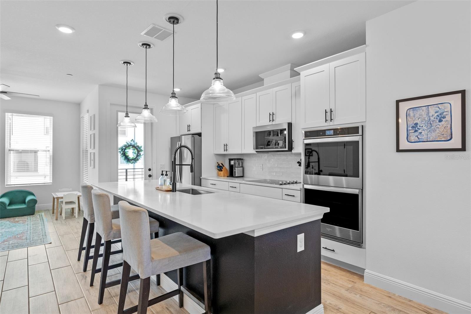 FULLY UPGRADED and highly sought after Ashton Woods 3 bed 3.5 bath MODERN Townhome. This open floor plan has tall ceilings and plenty of windows that flood every room with natural light. Gorgeous design with high-end finishes throughout, including GOURMET KITCHEN with an oversized quartz island, Designer lighting/window treatments, built-in ovens, custom tile backsplash, wood plank tile floors and much more. The spacious primary suite includes walk-In closets, a SPA bathroom featuring FRAMELESS SHOWER, double sinks, shaker style cabinets, quartz counters, upgraded faucets and hardware, and a rain shower head. This home is a MUST SEE and close to parks and the community amenities. Laureate Park is Lake Nona's premier community which includes 1GB fiber internet, resort style pools, fitness center, many beautiful parks, lakes, 40% green space and A-rated schools. Nearby are Lake Nona's Medical City, Town Center, USTA, KPMG, 471 expressway and tons of retail shopping.