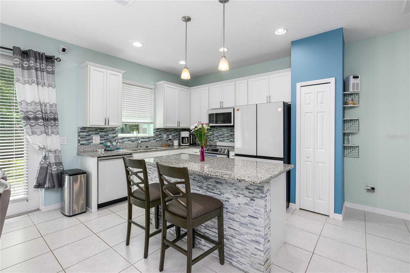 Welcome to this stunning two-story townhouse featuring 3 bedrooms, 2.5 bathrooms, and a 2 car garage, nestled in the highly desirable Goldenrod Reserve. This beautifully maintained home offers a spacious and open floor plan perfect for modern living and entertaining. The large kitchen is a chief's dream, boasting granite countertops, a central island, upgraded appliances, and a charming sliding barn door on the pantry. Tiling flooring flows throughout the main level, connecting the kitchen seamlessly to the dining and living room area. French doors open to a patio area for the weekend BBQ-ideal for outdoor gathering and relaxation. Upstairs, you will find updated flooring throughout. Two spacious bedrooms and a full bathroom are located to the right, while to the left, the master suite impresses with vaulted ceilings, abundant natural light, a generous walk-in closet, and an en-suite bathroom with dual sinks. Goldenrod Reserve gated community offers fantastic community amenities including a swimming pool and playground. Conveniently located near Orlando International Airport, Downtown Orlando, shopping and dining.