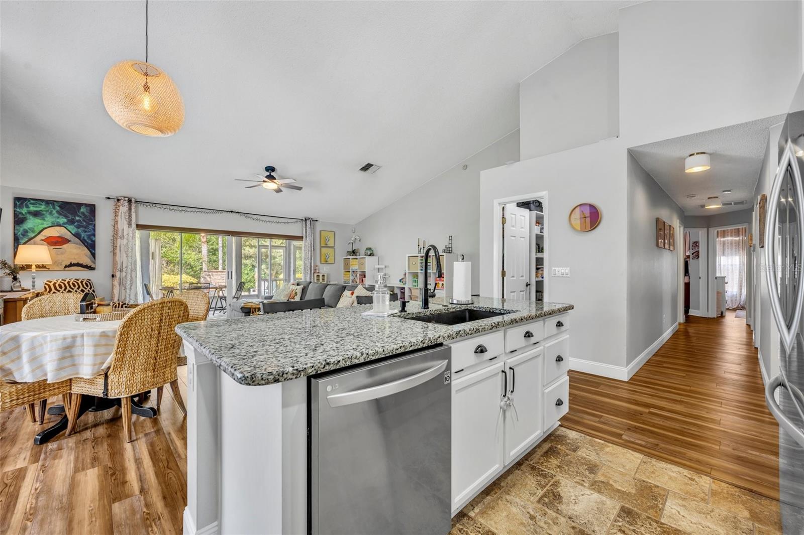 Welcome home to 12618 Lakebrook Drive—a stunning 4-bedroom, 2-bath residence with 2,068 sq ft of living space, located in the sought-after Waterford Park neighborhood, a tucked-away gem within the highly desirable Waterford Lakes community. This home perfectly blends style, comfort, and thoughtful updates throughout. Enjoy a charming sitting area in front of the home, perfect for morning coffee or evening relaxation. Inside, you'll find both formal living and dining rooms, creating flexible space for entertaining or everyday comfort. At the heart of the home is a beautifully updated kitchen featuring all-new LG appliances (2023), a center island, and a separate casual dining area just off to the side. The kitchen opens to the spacious family room, making it ideal for gatherings and daily living. Luxury vinyl plank flooring flows throughout, accented by stylish lighting and simple built-in closet systems. The primary suite features a private bonus room, perfect for a home office, nursery, or cozy sitting area. Both bathrooms are tastefully updated with dual sinks and high-end Toto toilets. The laundry room is as functional as it is beautiful—with added storage and included washer and dryer. The walk-in pantry is a standout with built-ins for effortless organization. Additional upgrades include a new water heater (2025), whole-house repipe (2023), and hurricane shutters for added peace of mind. The home also features a 2-car garage plus a separate attached storage room with exterior access only—perfect for tools, seasonal items, or hobby gear. Step into the enclosed screened sunroom or relax in the professionally landscaped backyard, complete with a tranquil waterfall feature and custom paver firepit. Best of all, the property backs to a peaceful conservation area—no rear neighbors! Enjoy the best of East Orlando living with top-rated schools, easy access to major highways, and just minutes from Waterford Lakes Town Center, offering shopping, dining, and entertainment. As a resident of Waterford Lakes, you’ll have access to resort-style amenities, including a community pool, dog park, walking paths, and basketball, racquetball, tennis, and pickleball courts, along with baseball and soccer fields and more. This move-in ready gem has it all—don’t miss your chance to call it home!