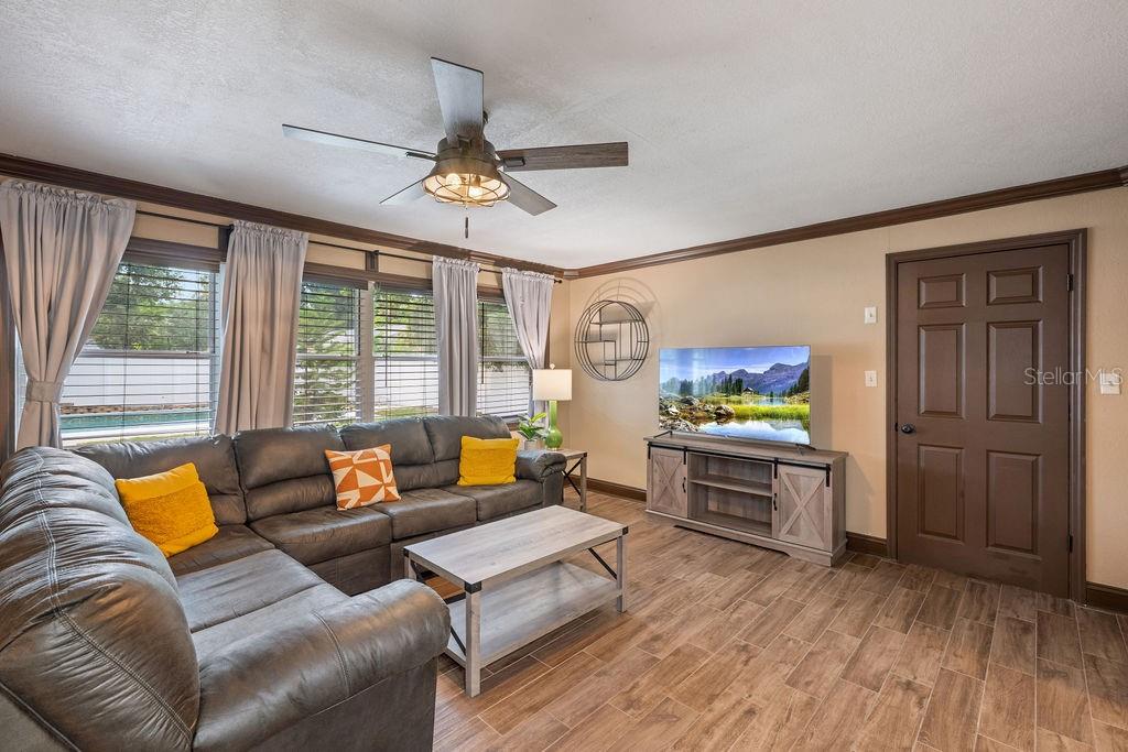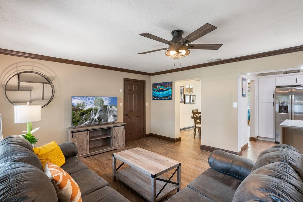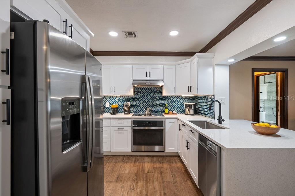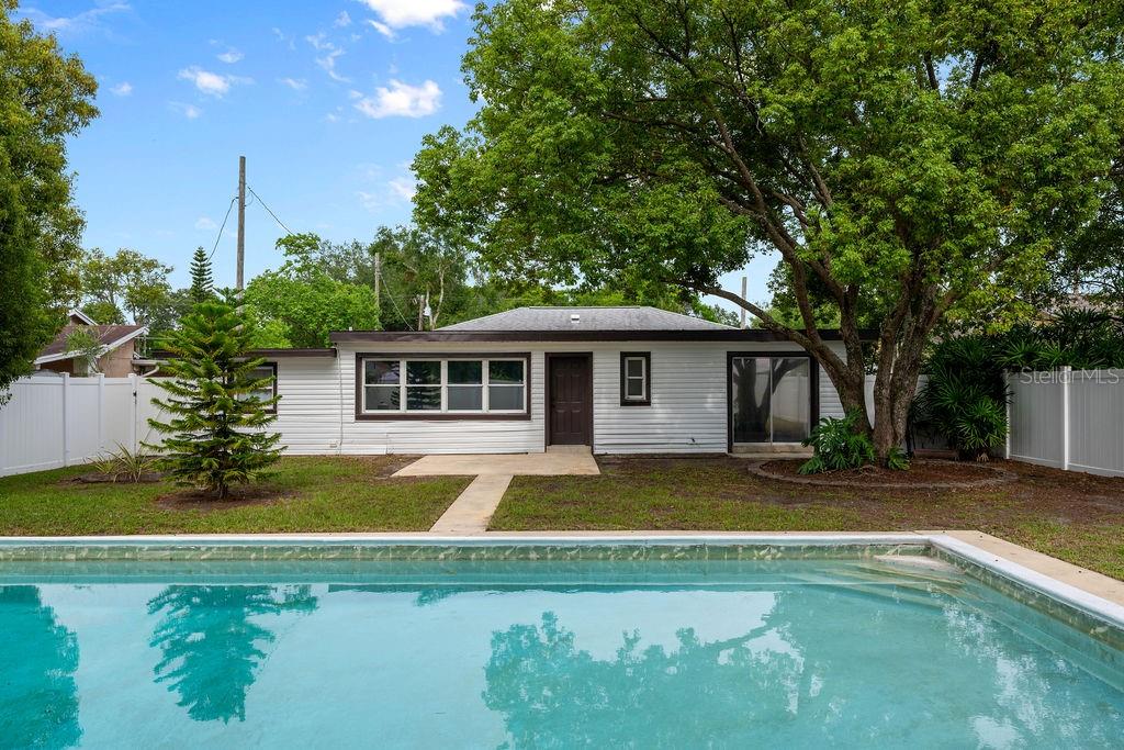 NEW PRICE – REMODELED (RARE) 4 BEDROOM, 2 BATHROOM, POOL home in the heart of the popular Milk District! NEW ROOF (partial) 2020. NEW WATER HEATER 2023. NEW EXTERIOR PAINT 2023, NEW KITCHEN 2022, NEW PRIMARY BATH 2021. NEW HALL BATH 2022. NEW MAIN ELECTRIC PANEL 2022. This charming single-story bungalow welcomes you with a ribbon drive and a covered front porch with mosaic tiles. The open floorplan is loaded with windows and All of the flooring in the living areas and bedrooms has been replaced with durable WOOD-LOOK CERAMIC TILES and all of these rooms feature decorative CROWN MOLDINGS. The recently renovated kitchen features white shaker style cabinets, QUARTZ COUNTERTOPS, breakfast bar with seating space, GE STAINLESS STEEL APPLIANCES, CUSTOM TILE BACKSPLASH and UNDERCABINET LIGHTING. The kitchen overlooks a very large family room with views of the pool beyond. The hall has built-in shelves and bedroom #3 features a wall of bookcases. The split bedroom plan separates the primary suite from the other bedrooms with a spacious en-suite bath, large closet and sliding glass doors to the rear yard and pool. The oversized rear yard is a private oasis with a privacy fence surrounding an enormous pool and plenty of lawn for swing sets and pets. A 12’ x 12’ patio is just off the family room and is ideal for an afternoon barbecue. Additionally, there is a spacious laundry room and an extremely LARGE INDOOR STORAGE/CRAFT ROOM/POTENTIAL OFFICE with exterior access. Located in the heart of the Milk District – this 4/2 pool home is truly one of a kind.