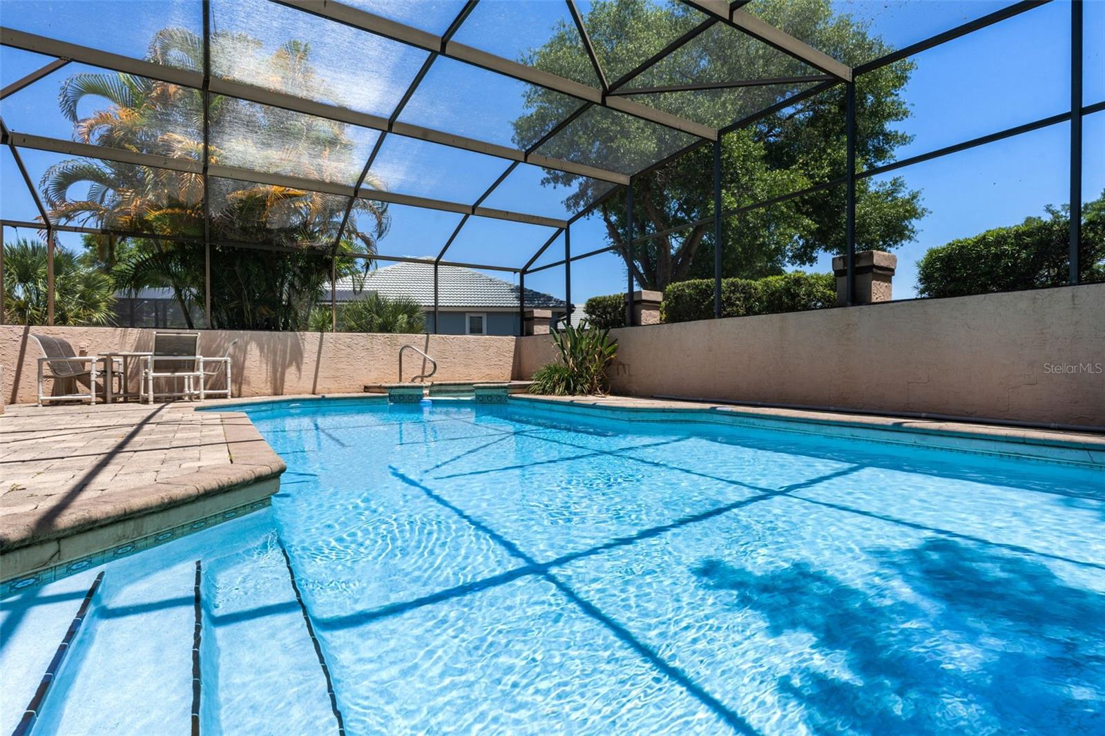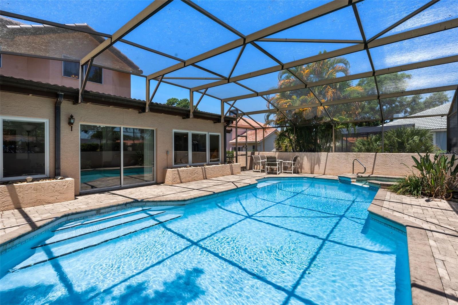 This beautiful pool home is located in the Bradford Cove community just off of University Blvd and within the desirable school district including Aloma Elementary, Glenridge Middle, and Winter Park High. Different than the tax roles show, this wonderful home offers 4-bedrooms and 3.5-baths with 2,746 heated square feet of living which is much larger than most homes offered in the area. The Owner’s Suite, located downstairs, has a walk-in closet, and spacious bath with a double sink vanity with make-up station, tub and separate shower. Adjoining the Suite is a sitting area with its own full bath and access from the pool area that could be used as a bonus In-Law Suite with just a few alterations. The other bedrooms are upstairs along with a bath and loft area. The spacious Kitchen has plenty of room for their large eat-in table and is well equipped with Whirlpool appliances, granite countertops, and solid cabinets. The Kitchen opens up to the Family Room with vaulted ceilings which is currently being used as the Dining Area with an exceptionally large table in the middle. The room also has a decorative fireplace and a wet bar for entertaining. Their latest renovation was to enclose the Florida Room which spills off from the Family Room and offers access to the Pool Area. The large windows at the back provide for plenty of natural light throughout the home. Also downstairs are the Formal Living Room and the Office. Out back is the sparkling pool with a heated spa and is surrounded by a cement wall and screened for security and privacy. This listing also boasts a double lot with 17,553 square feet of land which has street frontage on Lake Mirage Blvd and backs up to the cul-de-sac on Marbella View Court for plenty of guest parking when entertaining. Because this home has its own private pool, they currently only belong to the Master Association, but it is possible to join the community HOA which offers a pool and 2 tennis courts. Previously listed but was removed from MLS to install a brand new tile roof (2025). All other systems within the Four-Point Inspection have been updated and are acceptable to insurance companies – report is available upon request. Don’t miss this one especially if you’re searching for a home big enough to sleep 35 people, which has been done before. This home would be perfect for multi-generational living.