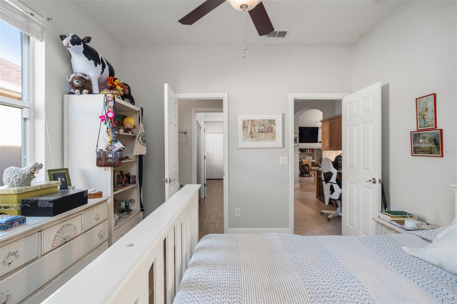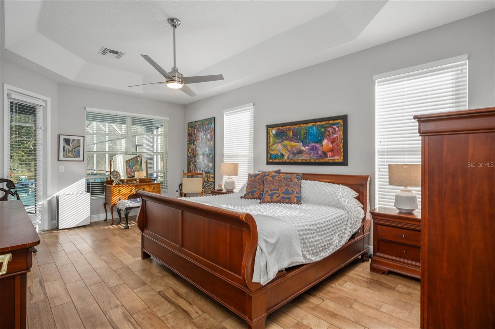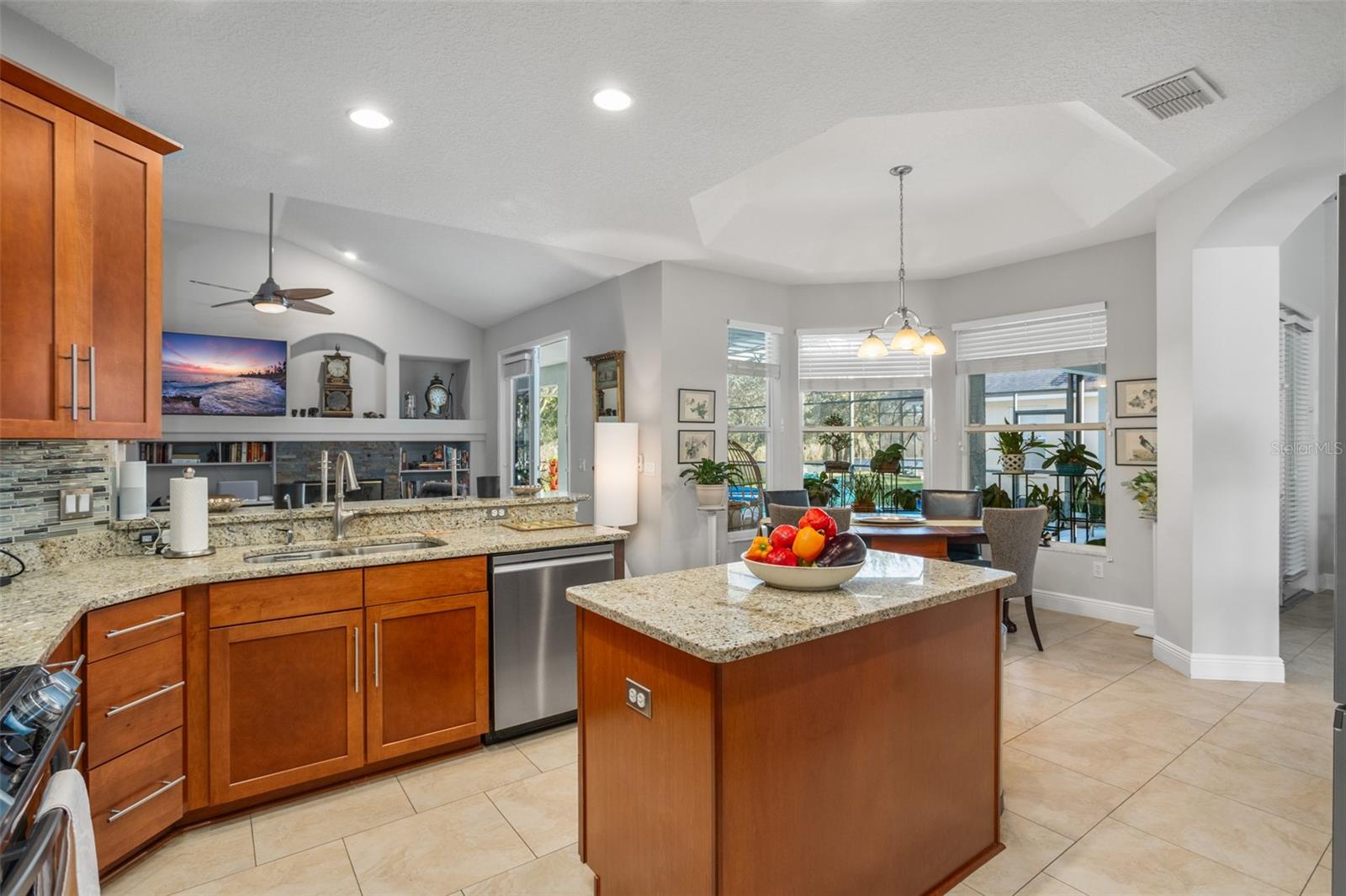 Solar-heated pool home in Hunters Creek with conservation and water views. This impeccably maintained single-family residence in Hunters Creek offers five bedrooms, three full baths and over 2,900 square feet of refined living space. Thoughtfully updated and recently painted, the home provides a welcoming atmosphere enhanced by soaring ceilings and an abundance of natural light. At the heart of the home, a gourmet kitchen features newly installed stainless steel appliances, upgraded countertops and rich wood cabinetry, suited for everyday living and hosting guests. The spacious family and dining areas complement the open layout, while a fireplace adds a touch of warmth and elegance. The primary suite is a retreat in itself, showcasing tray ceilings, a tranquil view of the pool and conservation area, dual walk-in closets, a Jacuzzi tub and a separate walk-in shower. An oversized bonus room and an adjacent bedroom share access to a renovated full bath with direct pool entry, ideal for flexible living or guest accommodations. Outside, the screened lanai encompasses a solar-heated pool and spa, offering year-round enjoyment against the serene backdrop of wooded conservation and a peaceful water view. With no neighbors to the rear, the setting ensures privacy and relaxation. This home blends space, function and luxury, making it a rare offering in one of Orlando’s sought-after communities. Schedule your private showing today.