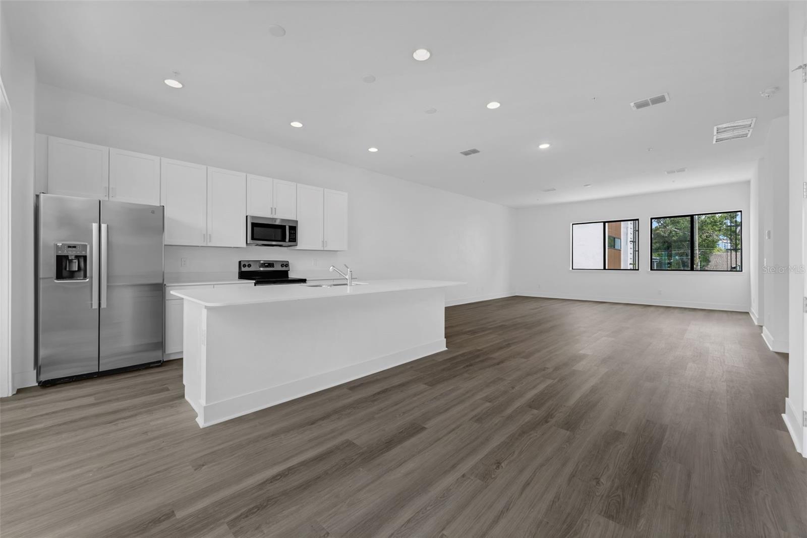 *SAVE HUNDREDS PER MONTH*Seller is offering a 30-year fixed rate as low as $4.75% through Build & LockTM. The newly built SoDo House is a contemporary 23-unit townhouse development in the heart of Orlando. Now offered for sale: THE ONE AND ONLY D FLOOR PLAN in the entire development—also the LARGEST UNIT in SoDo House. As you enter this unit, you'll find a versatile bedroom with a full bathroom, perfect for use as an office or guest suite. The first floor also includes a convenient entrance to the attached 2-car garage. The second floor is designed for modern living with an open-concept layout that combines the living room, kitchen, dining area, and a half bath. High 10-foot ceilings and oversized windows flood the space with natural light and give access to a private balcony. This unit offers views in both directions and features a wider living area than any other floor plan in the development, creating a more open and expansive feel throughout the main living space. The third floor is your private space, housing the primary suite, two additional bedrooms, a full bathroom, and a laundry nook. The HOA ensures maintenance-free living, as exterior and grounds maintenance, along with pest control, are included in the HOA fee. Located in a vibrant area, SoDo House is just steps away from the SoDo Shopping Center, featuring Super Target, Gators Dockside, The Smoothie Room, and TJ Maxx, among other well-known businesses. You’ll also enjoy proximity to Walmart, Orlando Health Hospital, and major highways such as I-4 and Highway 408, Downtown Orlando, the Kia Center, Exploria Stadium, Lake Eola, and the Dr. Phillips Center for the Performing Arts. A variety of restaurants and fine dining options are just minutes away. Secure your spot in this exclusive 23-unit development and embrace the best of urban living. Builder upgrade packages are available. Schedule your private showing today! Disclosure: Photos shown are of the model unit and are for illustrative purposes only. Actual unit features, finishes, and layout may vary.
