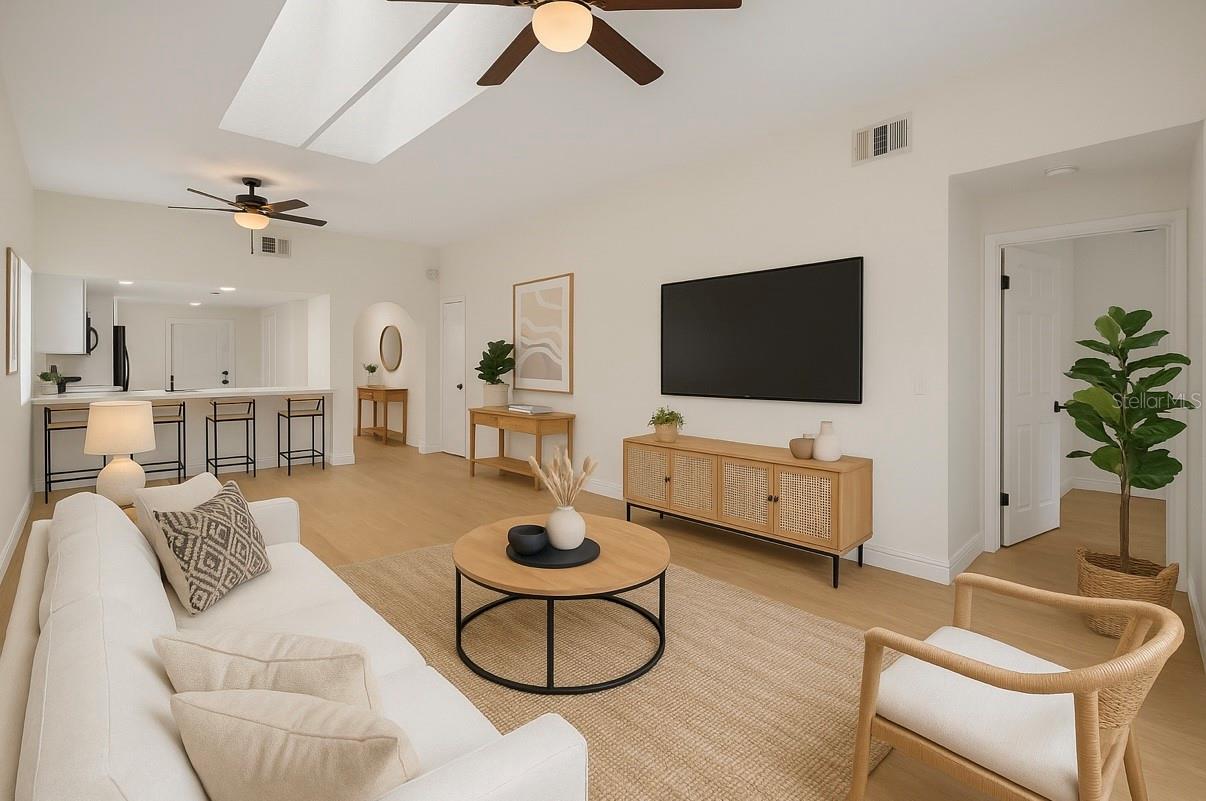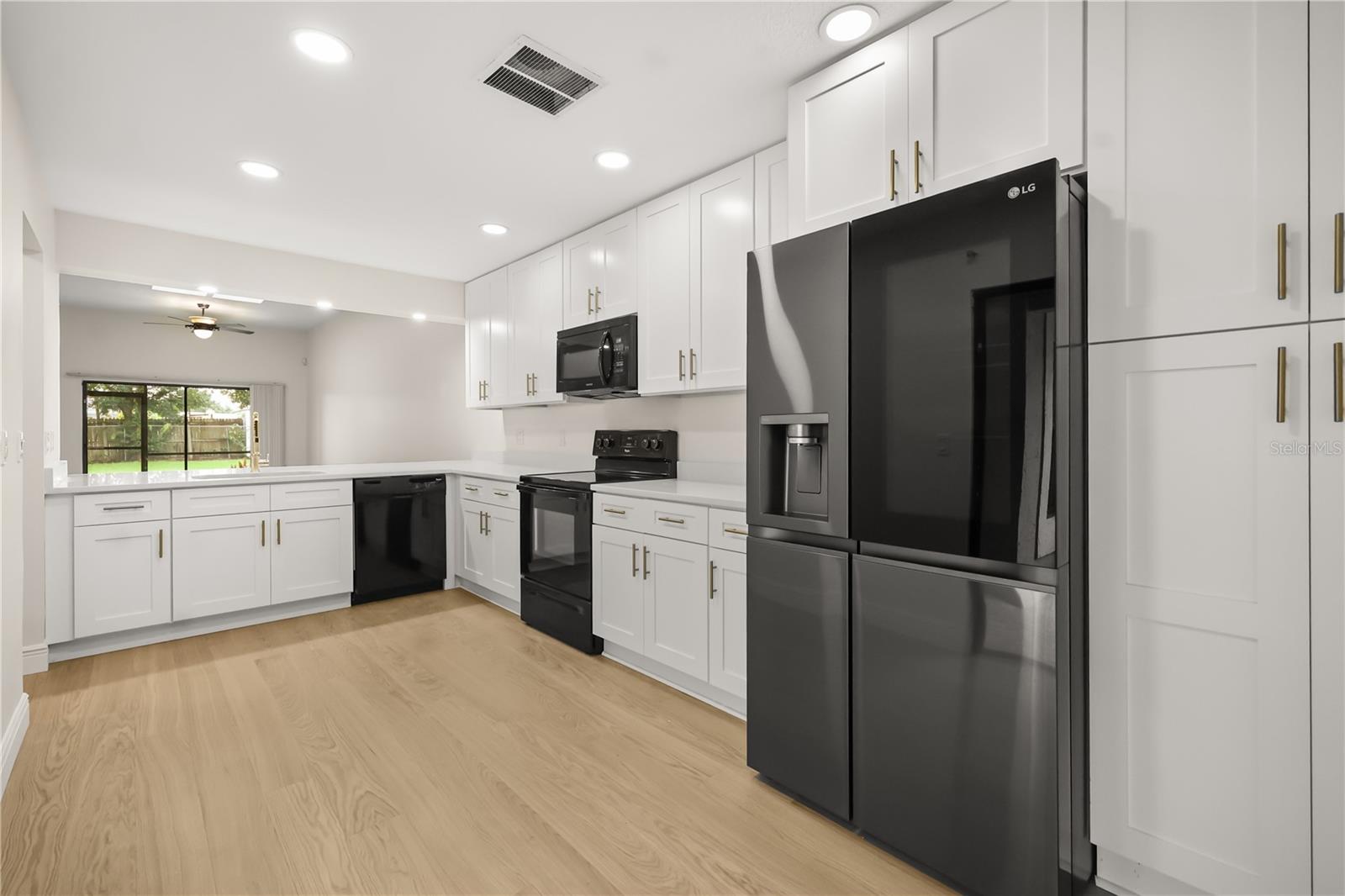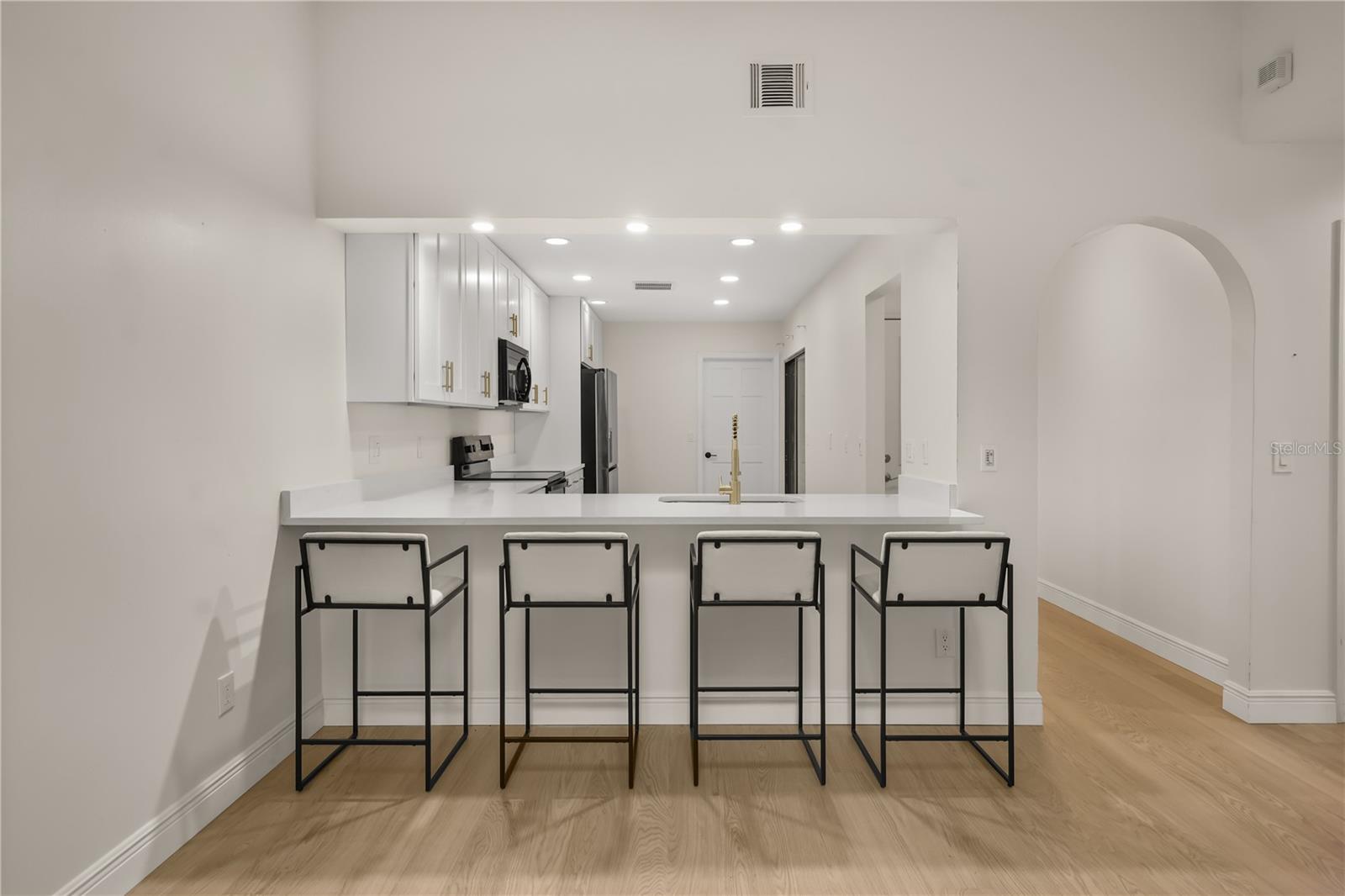 Renovated 2-Bedroom Townhome in Prime Dr. Phillips Location! Welcome to this beautifully renovated 2-bedroom, 2-bath townhome located in the heart of Dr. Phillips—just moments from the famed “Restaurant Row” on Sand Lake Road. This move-in-ready home offers a rare combination of luxury upgrades and unbeatable location. (Digital staging on one picture) Step inside to discover soaring 10-foot ceilings, fresh interior and ceiling paint, and brand-new engineered wood floors that flow throughout the open-concept living space. The stunning kitchen has been completely redesigned with real hardwood cabinets, soft-close drawers, sleek new countertops, and a top-of-the-line LG refrigerator featuring a glass-view window and touch-light technology. Stylish new handles and hardware have been installed throughout the home for a modern, cohesive finish. Enjoy peace of mind with a new roof (2022) and a whole-home water filtration system for clean, crisp water throughout. Both bathrooms have been refreshed to complement the home’s updated finishes. The private back patio has been upgraded with new tile, fresh paint, new screens, and new gutters—and best of all, no rear neighbors for added privacy.