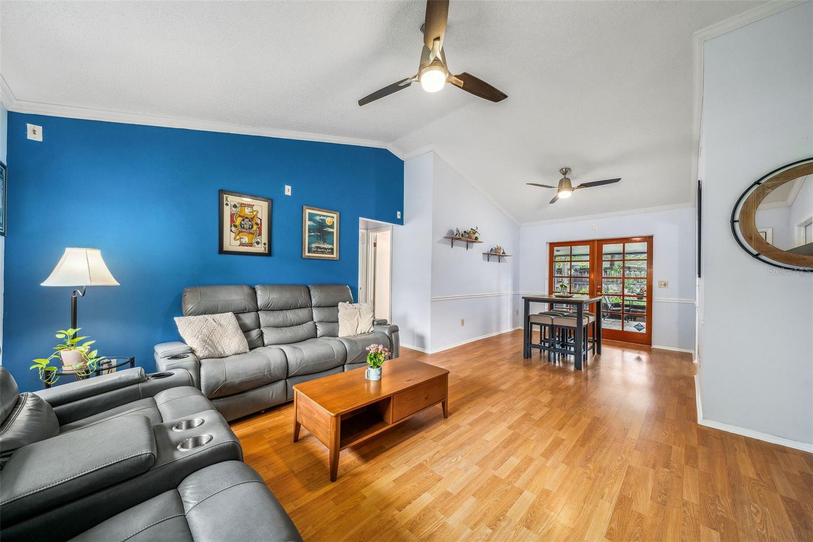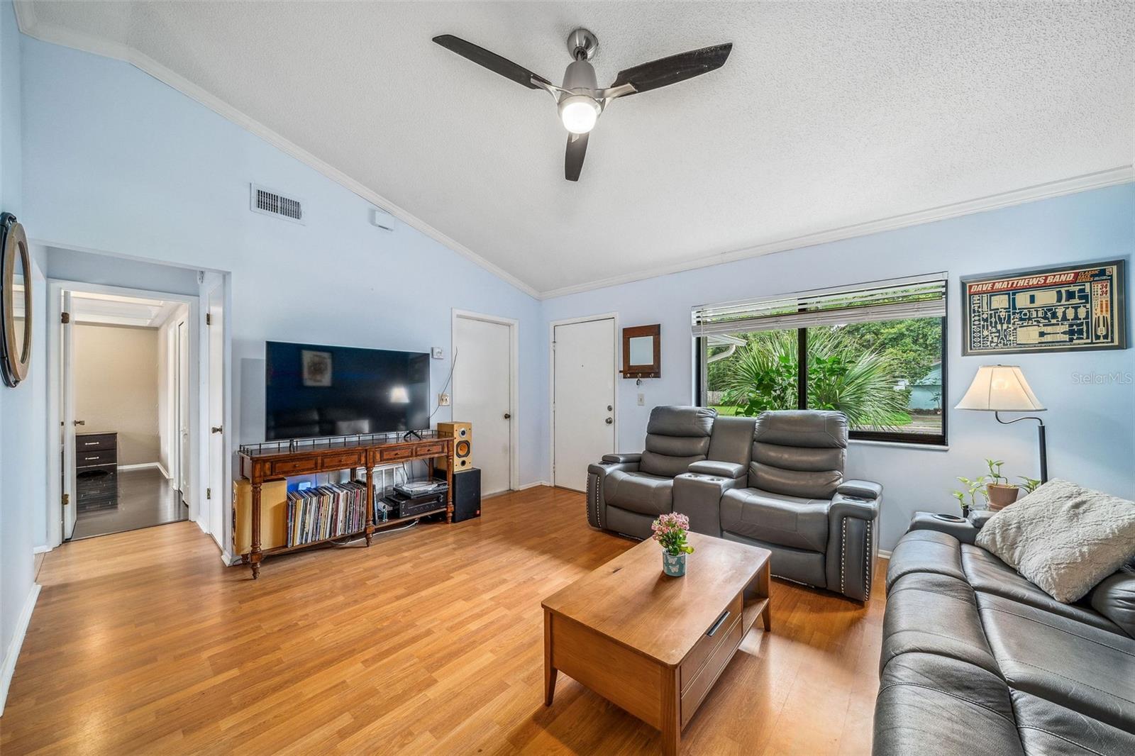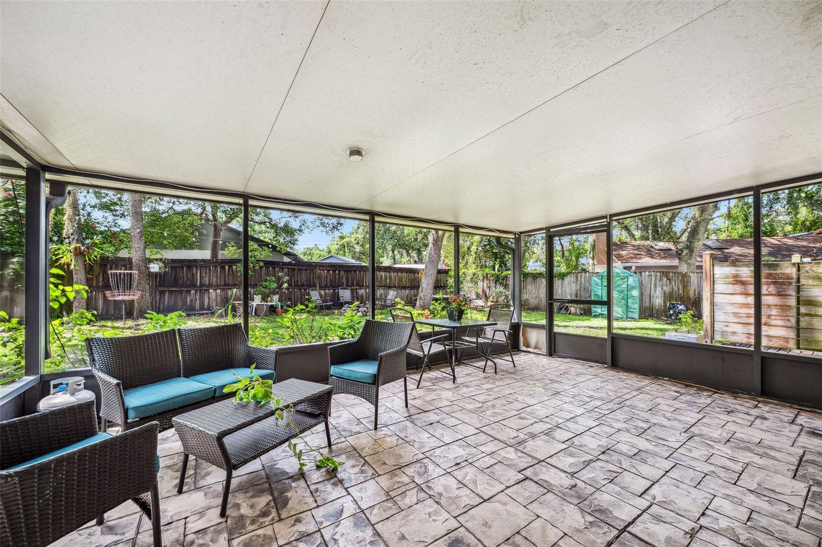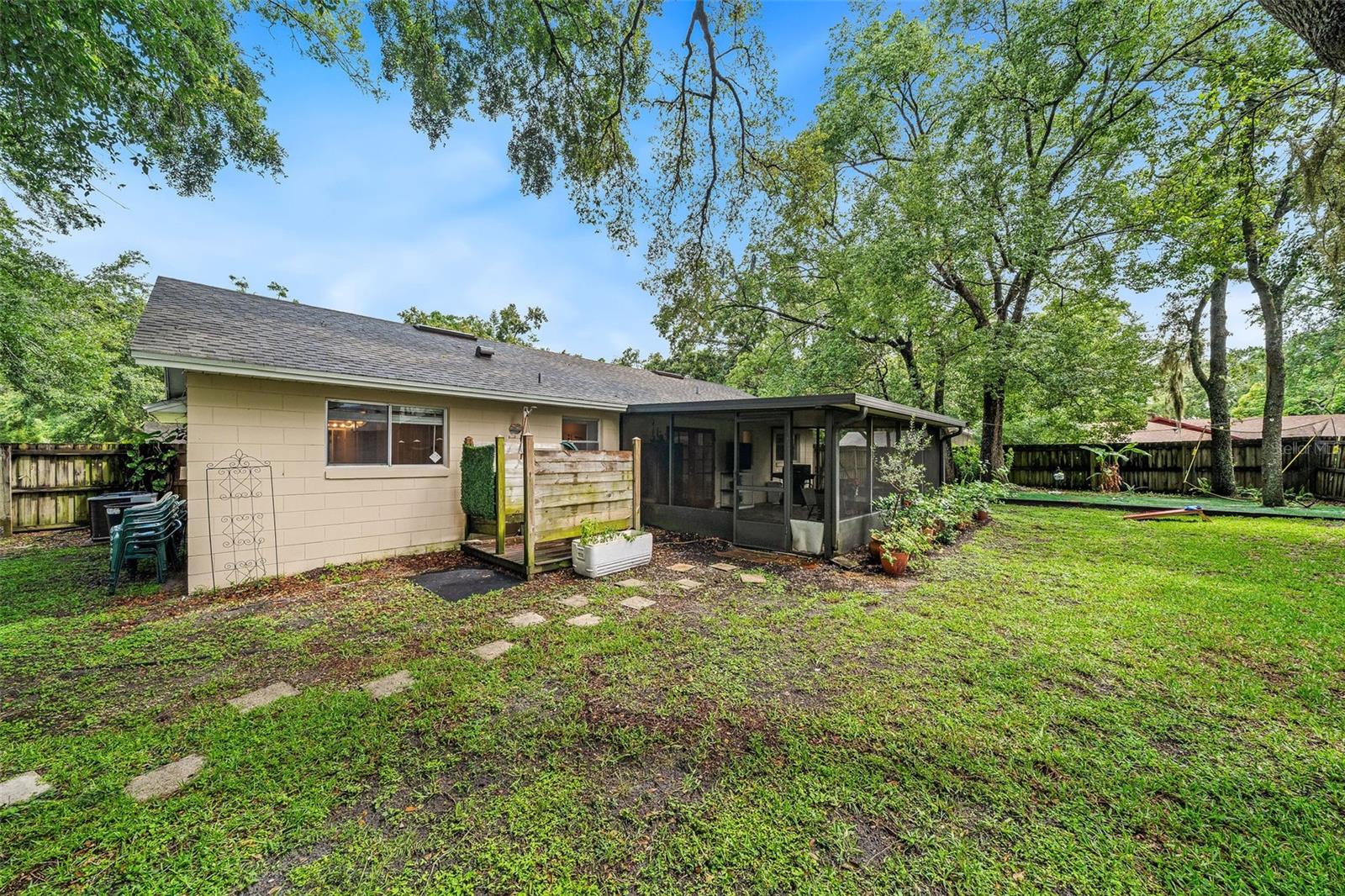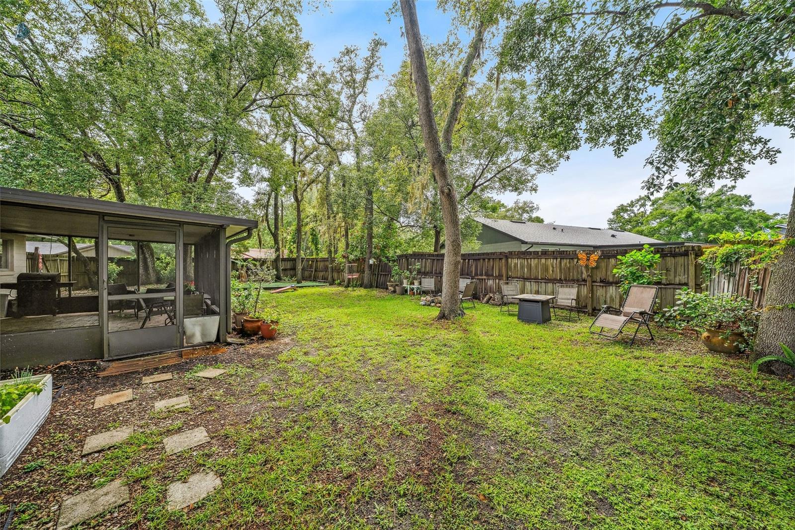 Welcome to this beautifully maintained 3-bedroom, 2-bathroom home located on a spacious .23-acre corner lot in the quiet, well-kept neighborhood of Riverside Park. Offering 1,134 sq ft of thoughtfully designed living space, this home features a split floor plan, ideal for both privacy and functionality. Step into a bright, airy interior with vaulted ceilings, crown molding, and ceiling fans throughout. The combined living and dining area creates a seamless flow, enhanced by blinds throughout, a surround sound system, and elegant French doors leading to a spacious screened-in lanai. The updated kitchen is a chef’s delight, featuring crisp white cabinetry, stainless steel appliances, recessed lighting, a cozy eating area, and a closet pantry. Retreat to the private primary suite, complete with a coffered ceiling, ceiling fan, and an en-suite bathroom boasting a brand-new white vanity(2025), a luxurious glass block walk-in shower with dual shower heads, including a rainfall shower and hand-held wand. Enjoy true Florida living in the large, fully fenced backyard with a fire pit, putting green, fruit trees, and an outdoor shower—ideal for entertaining or relaxing in your own private oasis. Additional highlights include a hall bathroom that was tastefully updated in 2024, a brand-new washer(2025) and dryer are also included and a two-car garage with a new motor. Located in quiet Riverside Park with sidewalks and a nearby playground. Just minutes from SR 414, I-4, and downtown Orlando. Shopping, dining, and everyday conveniences all close by. A rare find with exceptional outdoor features! Don't miss an opportunity to make this home your own! Roof - 2021 HVAC - 2019 Water Heater - 2020 Septic Drain Field Replaced - 2021 Septic Tank Pumped - 4/2025