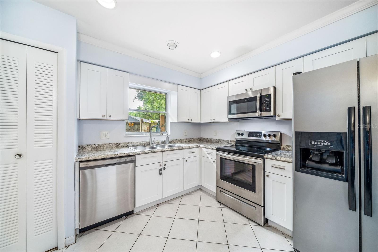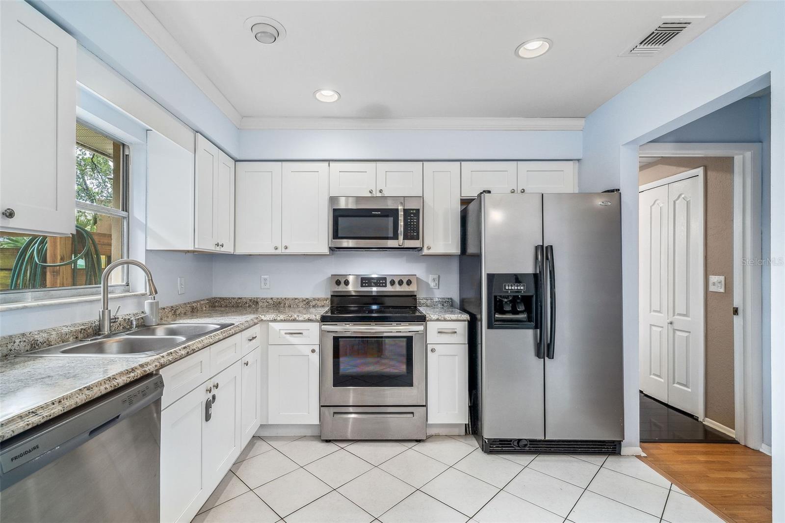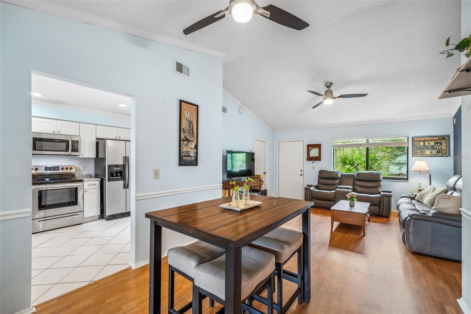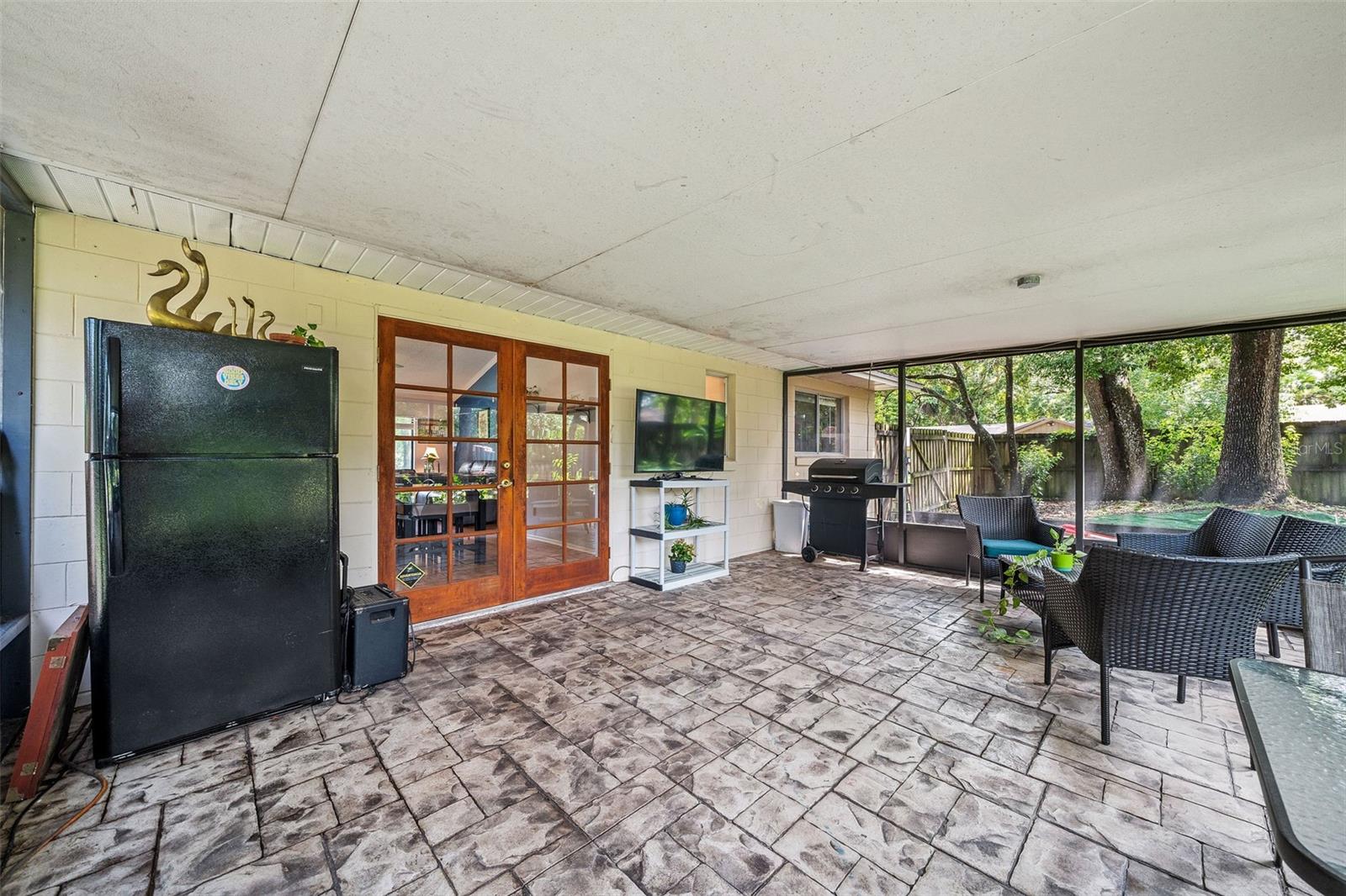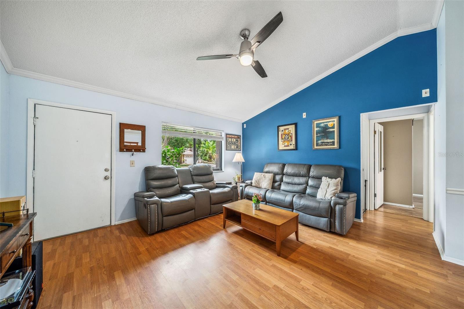 Welcome to this beautifully maintained 3-bedroom, 2-bathroom home located on a spacious .23-acre corner lot in the quiet, well-kept neighborhood of Riverside Park. Offering 1,134 sq ft of thoughtfully designed living space, this home features a split floor plan, ideal for both privacy and functionality. Step into a bright, airy interior with vaulted ceilings, crown molding, and ceiling fans throughout. The combined living and dining area creates a seamless flow, enhanced by blinds throughout, a surround sound system, and elegant French doors leading to a spacious screened-in lanai. The updated kitchen is a chef’s delight, featuring crisp white cabinetry, stainless steel appliances, recessed lighting, a cozy eating area, and a closet pantry. Retreat to the private primary suite, complete with a coffered ceiling, ceiling fan, and an en-suite bathroom boasting a brand-new white vanity(2025), a luxurious glass block walk-in shower with dual shower heads, including a rainfall shower and hand-held wand. Enjoy true Florida living in the large, fully fenced backyard with a fire pit, putting green, fruit trees, and an outdoor shower—ideal for entertaining or relaxing in your own private oasis. Additional highlights include a hall bathroom that was tastefully updated in 2024, a brand-new washer(2025) and dryer are also included and a two-car garage with a new motor. Located in quiet Riverside Park with sidewalks and a nearby playground. Just minutes from SR 414, I-4, and downtown Orlando. Shopping, dining, and everyday conveniences all close by. A rare find with exceptional outdoor features! Don't miss an opportunity to make this home your own! Roof - 2021 HVAC - 2019 Water Heater - 2020 Septic Drain Field Replaced - 2021 Septic Tank Pumped - 4/2025