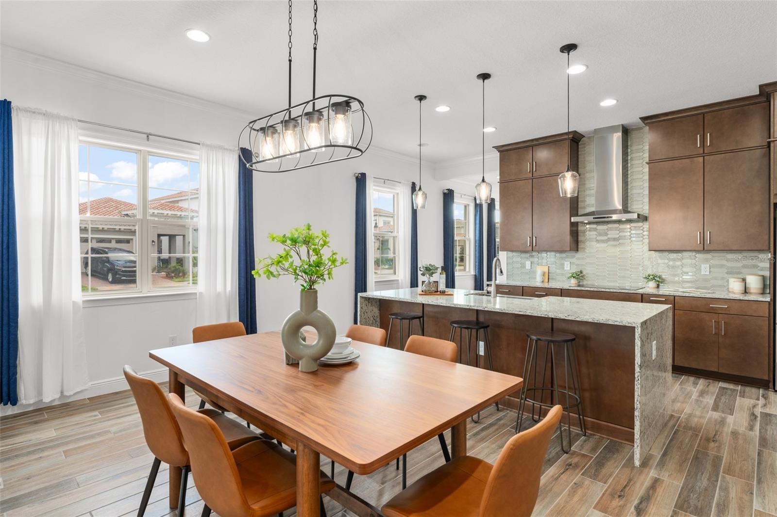 **This property qualifies for a closing cost credit up to $12,000 through the Seller’s preferred lender (restrictions apply).** Why Wait to Build? Your Dream Home Is Move-In Ready! This 2023 Peachtree model is ready and loaded with high-end upgrades from top to bottom. Located on a desirable corner lot, this stunning home offers 4 bedrooms, 3.5 bathrooms, and a spacious upstairs bonus room—perfect for a media room, playroom, or second family space. The first floor features a bright open-concept layout with beautiful ceramic tile flowing seamlessly throughout. The showstopper kitchen boasts waterfall quartz countertops, bar-top seating, floor-to-ceiling cabinetry, and stainless steel appliances—designed for both style and function. The space flows into the dining and living areas, filled with natural light from large windows and sliding glass doors that lead to your outdoor space. The main-floor primary suite offers the ultimate retreat with a spa-like en-suite bathroom, featuring a double-sink vanity, floor-to-ceiling tile backsplash, and a large glass-enclosed walk-in shower with a rainfall showerhead. The walk-in closet connects directly to the laundry room, which circles back to the kitchen for ultimate convenience. Upstairs, enjoy a bonus loft with a wet bar, ideal for entertaining. You'll also find three generously sized guest bedrooms and two full bathrooms on the second level—perfect for family or guests. Located in a sought-after resort-style community, you’ll enjoy amenities including a golf course, clubhouse with restaurant, resort-style pool, fitness center, basketball and tennis courts, 24-hour guard-gated entry, playgrounds, parks, and more. Conveniently located near Medical City, Boxi Park, major highways, and top-rated schools—this move-in ready home offers luxury, location, and lifestyle all in one. Schedule your private showing today!