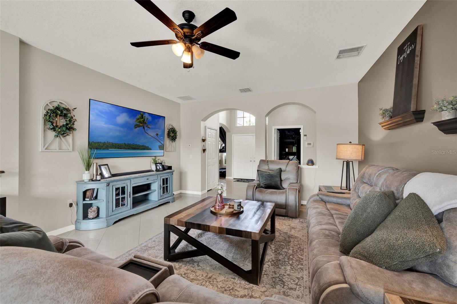 Welcome home to this spacious 5-bedroom, 3-bathroom retreat located in the gated community of Bella Vida at Timber Springs. From the moment you step into the grand foyer with soaring ceilings and abundant natural light, you’ll feel the warmth and comfort of this well-designed home. The living and dining areas offer the perfect space for gatherings, flowing effortlessly into the open-concept kitchen and family room. The kitchen is a chef’s dream, featuring granite countertops, stainless steel appliances, ample cabinet space, and a cozy dinette overlooking the backyard. Just off the family room, sliding glass doors open to your private, fenced backyard with a sparkling inground pool and paver patio—ideal for relaxing or entertaining. An additional highlight of the pool is the built-in Endless Pool system, allowing you to swim in place against a steady, adjustable current—perfect for fitness, training, or low-impact exercise. Downstairs, you’ll find a convenient guest bedroom and full bathroom with direct access to the pool area. Upstairs, the spacious primary suite offers a peaceful escape with a private en-suite bathroom. Three additional bedrooms and a large bonus/game room complete the second floor, offering plenty of room for everyone. As a resident of Bella Vida, you’ll enjoy an array of amenities, including basketball and tennis courts, playgrounds, walking trails and picnic areas. Located in a highly sought-after school district, this home offers the ideal blend of comfort, convenience, and community living. Don’t miss your chance to own this beautiful home in one of East Orlando’s premier gated neighborhoods!