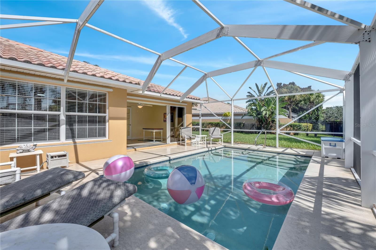 This 2-bedroom, 2-bathroom home features a heated pool and is situated in the heart of the highly sought-after VillageWalk community. Built by DiVosta Homes, this popular Capri III floor plan includes thoughtfully designed living spaces, high-quality construction, and a seamless blend of comfort and functionality.Step inside to an open-concept layout with high ceilings and windows that flood the space with natural light. The spacious great room connects seamlessly to the central kitchen, which has been beautifully upgraded with new stainless steel appliances, including a refrigerator, stove, microwave, and dishwasher. This setup is perfect for cooking, while the breakfast bar provides a casual dining option.The primary suite includes a walk-in closet with built-in shelving and an en-suite bathroom that features dual sinks and a walk-in shower. The secondary bedroom is also generously sized and conveniently located next to the guest bathroom, making it ideal for visitors or family members.A versatile bonus room just off the main living area can easily be transformed into a home office or cozy den, providing the flexibility to suit your lifestyle. The spacious laundry room, which includes a washer and dryer, a utility sink, extra closet storage, and direct access to the attached two-car garage and provides a convenient daily flow from the car to the home.Experience Florida living at its finest with your very own private pool, complete with a screen enclosure and beautiful views of the peaceful pond just beyond your backyard. This home has been meticulously maintained and thoughtfully updated, featuring a new A/C unit for year-round comfort, a new water heater, a new pool heater for easy entertaining in any season, and new gutters for improved drainage and home protection.VillageWalk at Lake Nona is a thoughtfully designed master-planned community that offers the ultimate in resort-style living. Picturesque bridges and scenic canals wind through the neighborhood, connecting residents to various on-site amenities, including a deli, gas station, and a vibrant town center. Outdoor enthusiasts will appreciate the lighted walking and biking trails, sports courts, and heated swimming pools, while the 24-hour fitness center supports an active lifestyle.Just minutes away is Lake Nona Town Center—a dynamic 100-acre open-air destination featuring public art displays, upscale shopping, hotels such as the iconic Lake Nona Wave Hotel, and Boxi Park. This lively venue is family- and dog-friendly, offering a mix of restaurants and bars, beach volleyball courts, and a live entertainment stage.Families can take advantage of access to top-rated A-rated schools, and the community’s prime location near Medical City and Orlando International Airport makes travel convenient. World-renowned attractions like Disney, SeaWorld, and Universal Studios are just a short drive away. HOA fees include lawn care, high-speed internet, and cable, ensuring truly hassle-free living.
