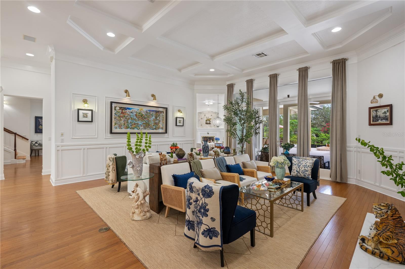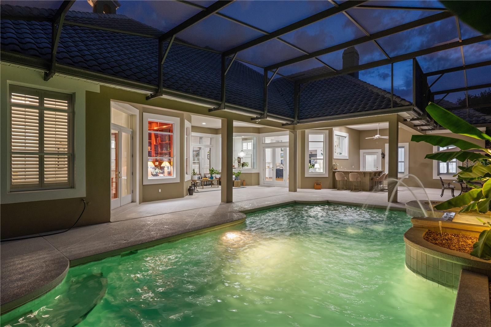 Step into refined elegance in this masterfully renovated estate set within the exclusive guard-gated community of Turtle Creek. This exceptional residence spans nearly 5,000 square feet of curated living space and is perfectly positioned on an oversized, half-acre lot that offers a true sense of privacy. Inside, soaring ceilings and expansive windows flood the home with natural light, accentuating the rich architectural details and sophisticated finishes throughout. The open-concept floor plan flows effortlessly, anchored by a state-of-the-art chef’s kitchen featuring striking marble countertops, high-end stainless-steel appliances, custom cabinetry, and a large center island ideal for entertaining. Multiple living and dining areas provide flexibility for both intimate gatherings and hosting. The luxurious primary suite serves as a private sanctuary, complete with a spa-inspired bath featuring a soaking tub, walk-in shower, dual vanities, and boutique-style closets. Additional guest suites are generously sized and thoughtfully designed for comfort and privacy. A dedicated home office adds both functionality and luxury to the layout. No detail has been overlooked, this home is enriched with bespoke upgrades including two fireplaces, custom millwork throughout, a spacious three-car garage, and refined lighting and hardware selections that elevate every room. Step outside to your own resort-style retreat, where a fully screened lanai houses a sparkling pool with water features, a spacious patio, and covered outdoor living space perfect for year-round enjoyment. Ideally located minutes from Restaurant Row, world-class golf, top-rated schools, and the area’s premier attractions, this rare offering delivers the pinnacle of Central Florida luxury living.