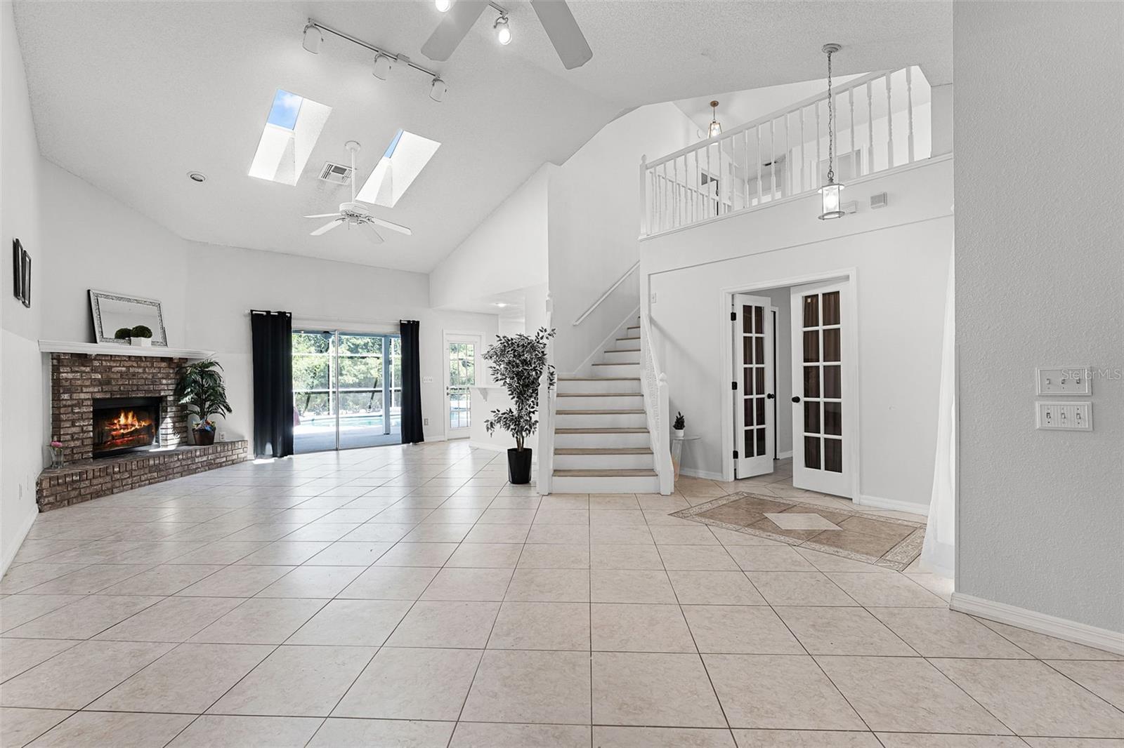 The pride of ownership in this property shows throughout the entire home. This exquisite home offers the perfect blend of comfort, style, and convenience. With 4 BEDROOMS 2.5 BATHS, POOL/SPA, and a range of impressive features such as: Skylights, Transom Windows, Bay Windows, French doors, etc.The roof and A/C system were both replaced in 2022, providing peace of mind and energy efficiency for years to come. The living room boasts skylights, creating a bright and airy atmosphere, and features a cozy fireplace. The oversized kitchen features quartz countertops that provide both functionality and elegance. There is plenty of pantry space, and the bright bay windows overlook your stunning backyard. The primary bedroom, conveniently located on the first floor, includes a private en-suite bathroom with a glass wall walk-in shower and a garden tub to ensure a peaceful sanctuary away from the rest of the home. Lots of natural light from the transom window. This property also features a versatile loft space that can be customized to suit your specific needs. Whether you desire a home office, a playroom, or a cozy reading nook, this flexible area provides endless possibilities. One of the highlights of this property is the private screened-in heated pool and spa, perfect for year-round enjoyment and relaxation. The home backs up to a serene pond, providing a tranquil backdrop and ensuring privacy as there are no rear neighbors. Let me repeat this, there's a pond in the rear... NO REAR NEIGHBORS! This is an amazing location. The subdivision is nested in mature landscaping, and you will feel the tranquility of nature. But there are a lot of shops and dining options within a short distance, and convenient access to major roads and highways. This home is in a well-established Deerfield community, a prime location within minutes to shopping centers, restaurants, theme parks and attractions, major highways including Greenway 417, Beeline 528, I-4, and Florida Turnpike, and the Orlando International Airport and Brightline station. There is also a park minutes away that has a playground, skate park, soccer field, and covered pavilion. Top-rated schools Don't miss an opportunity to own this beautiful home. Schedule a showing today!